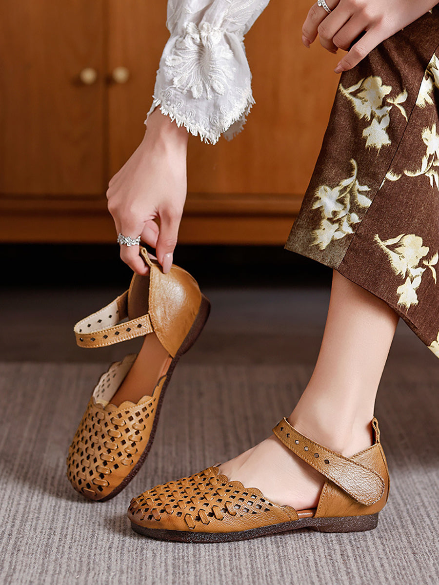 Women Summer Genuine Leather Weave Sandals