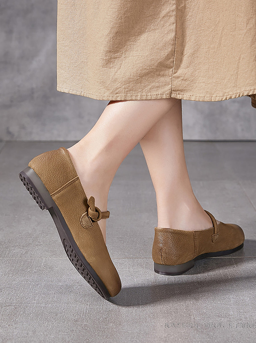 Women Summer Versatile Soft Leather Low Heel Shoes
