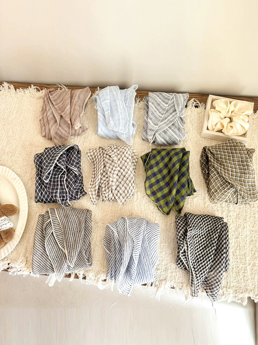 Women Summer Vintage Plaid Stripe Triangle Scarf