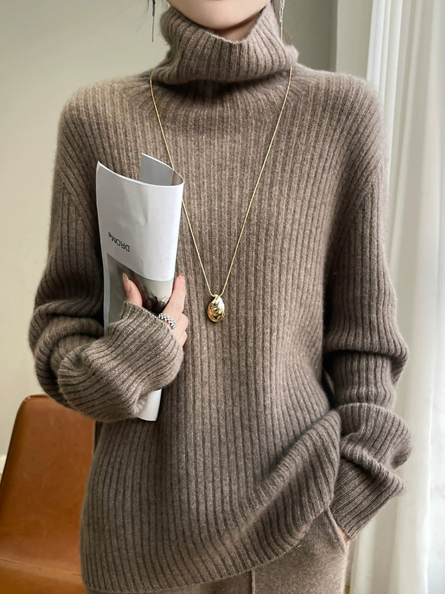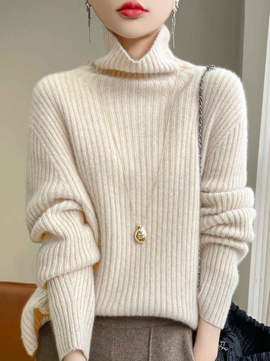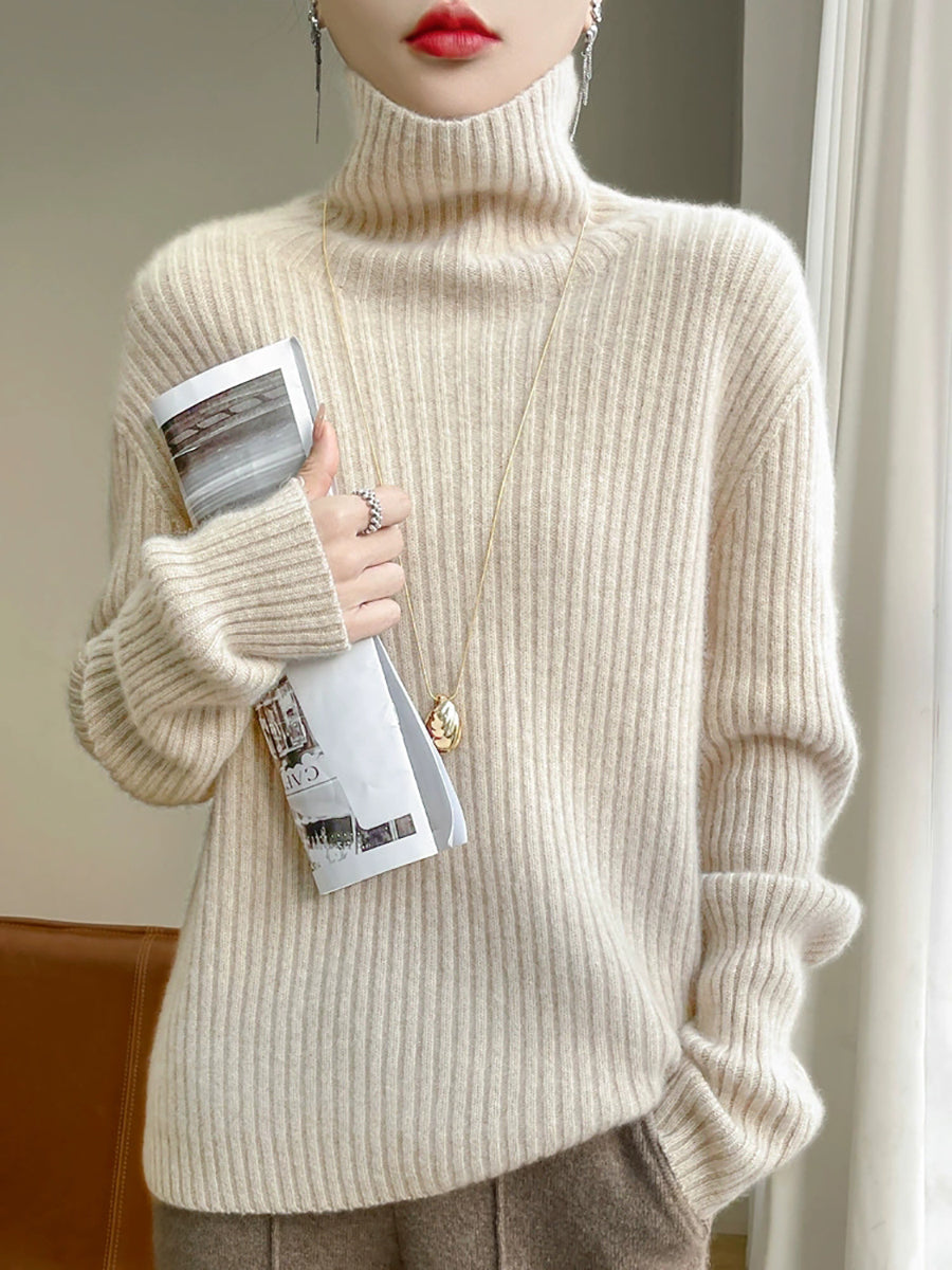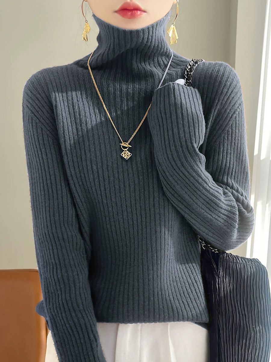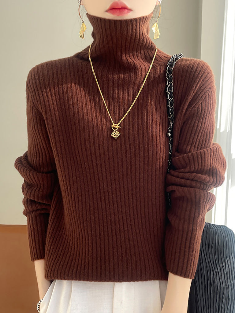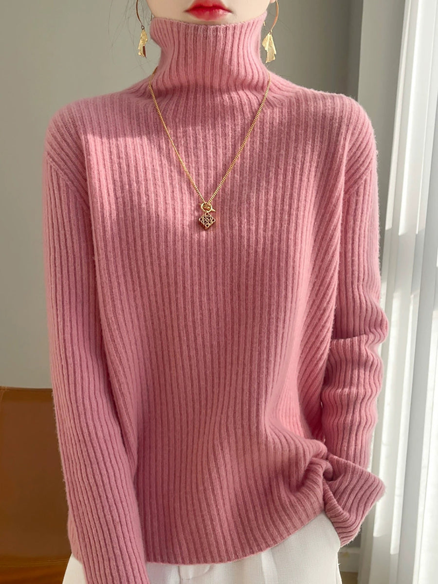 Women Winter Casual Pure Color Knitted Turtleneck Sweater