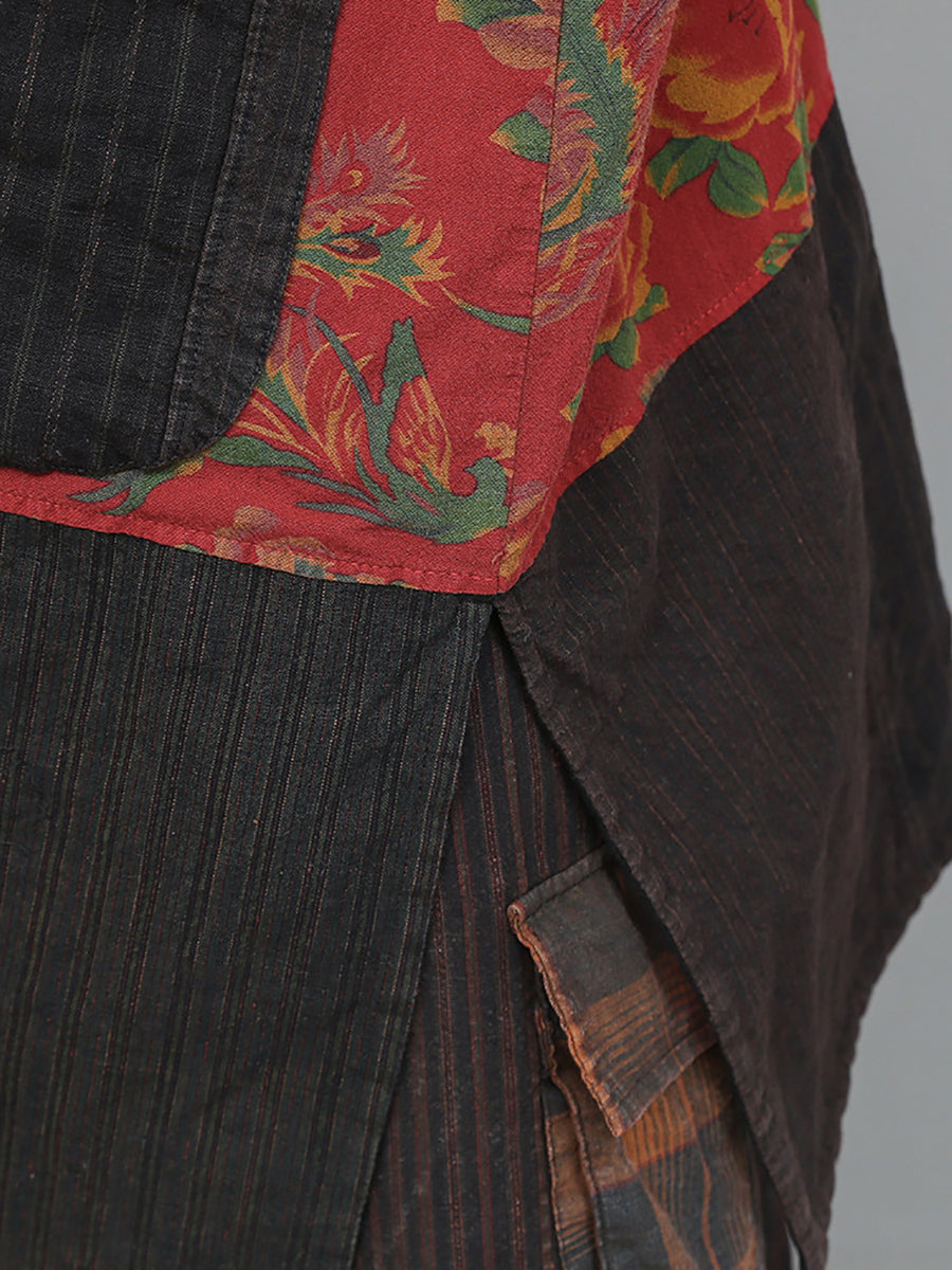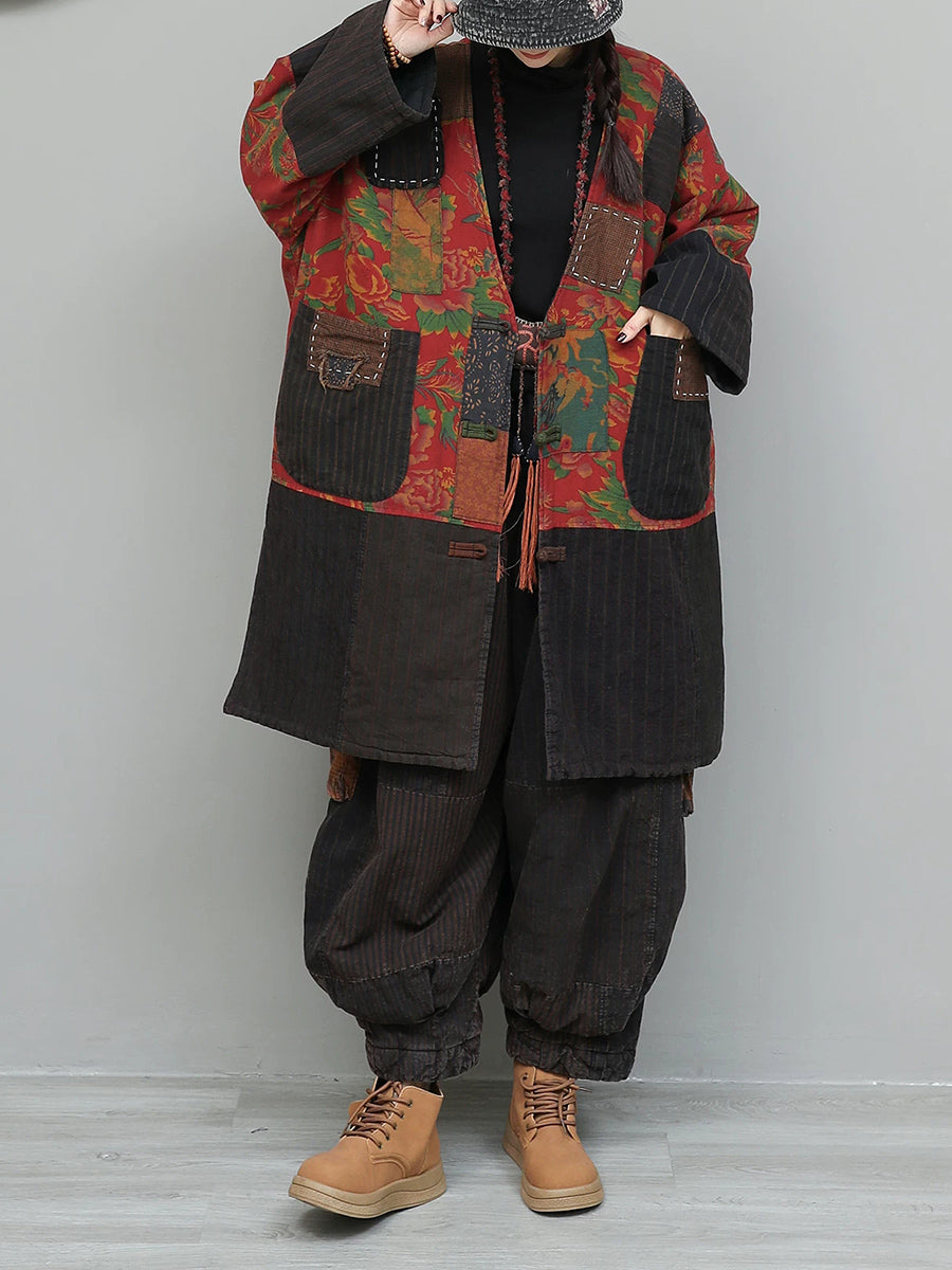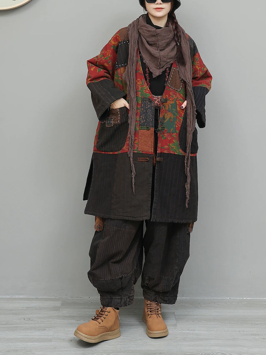 Women Winter Ethnic Patch Spliced V-Neck Padded Suits