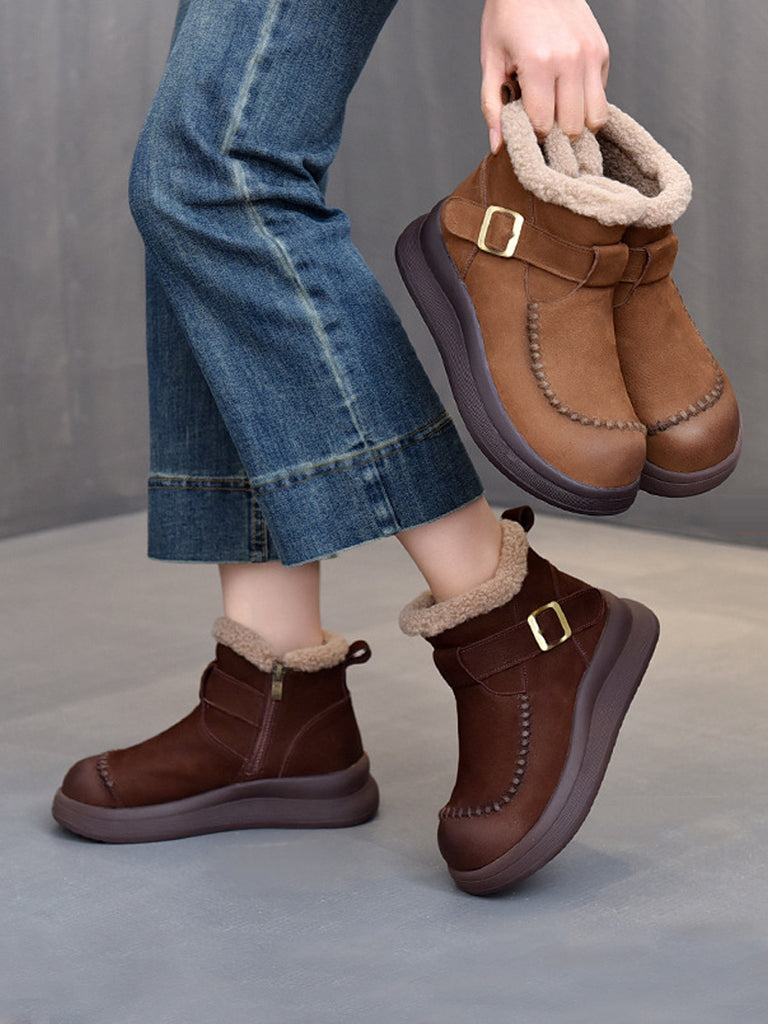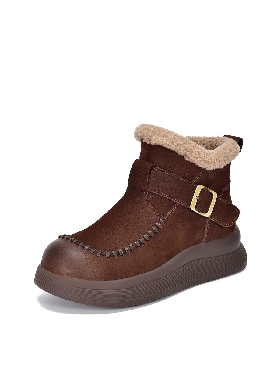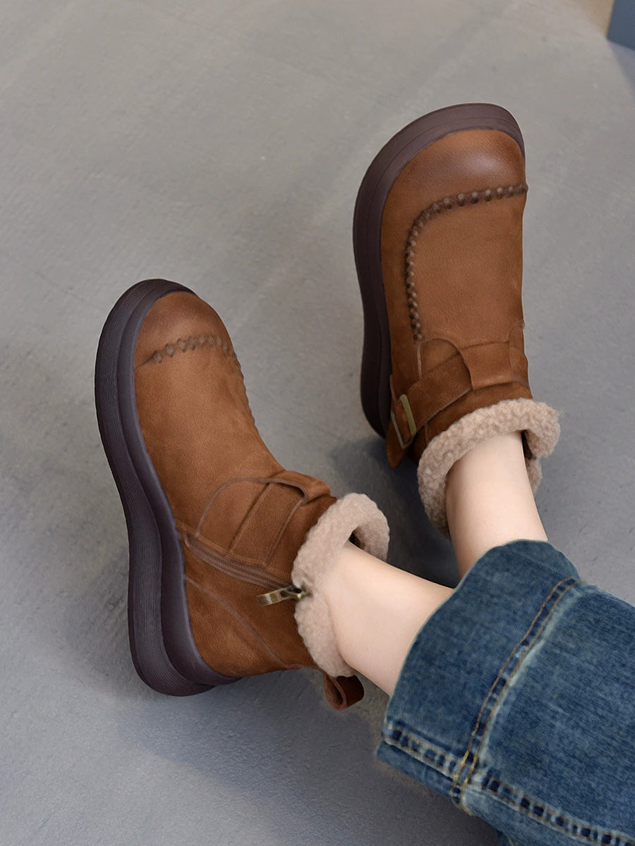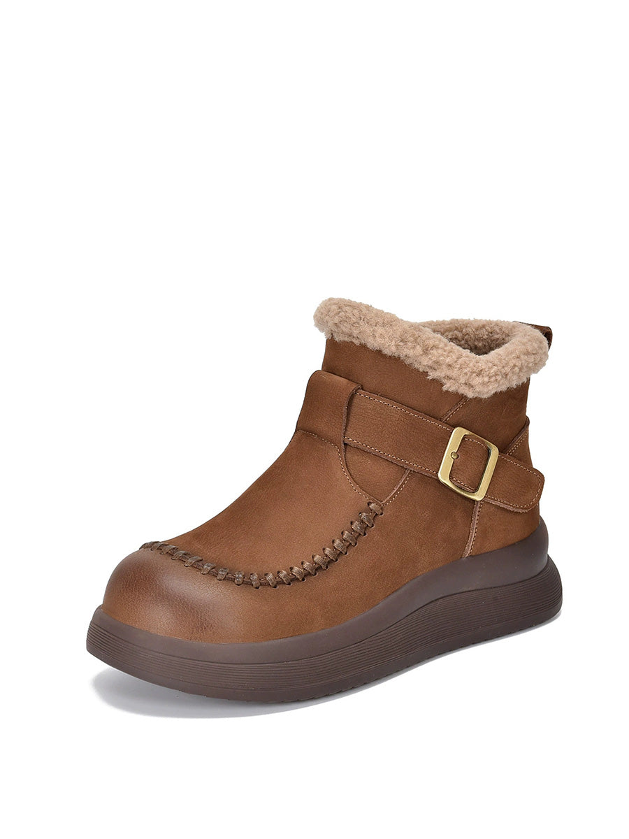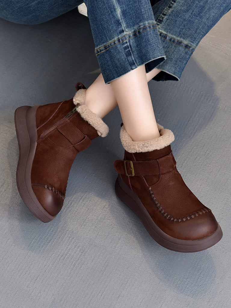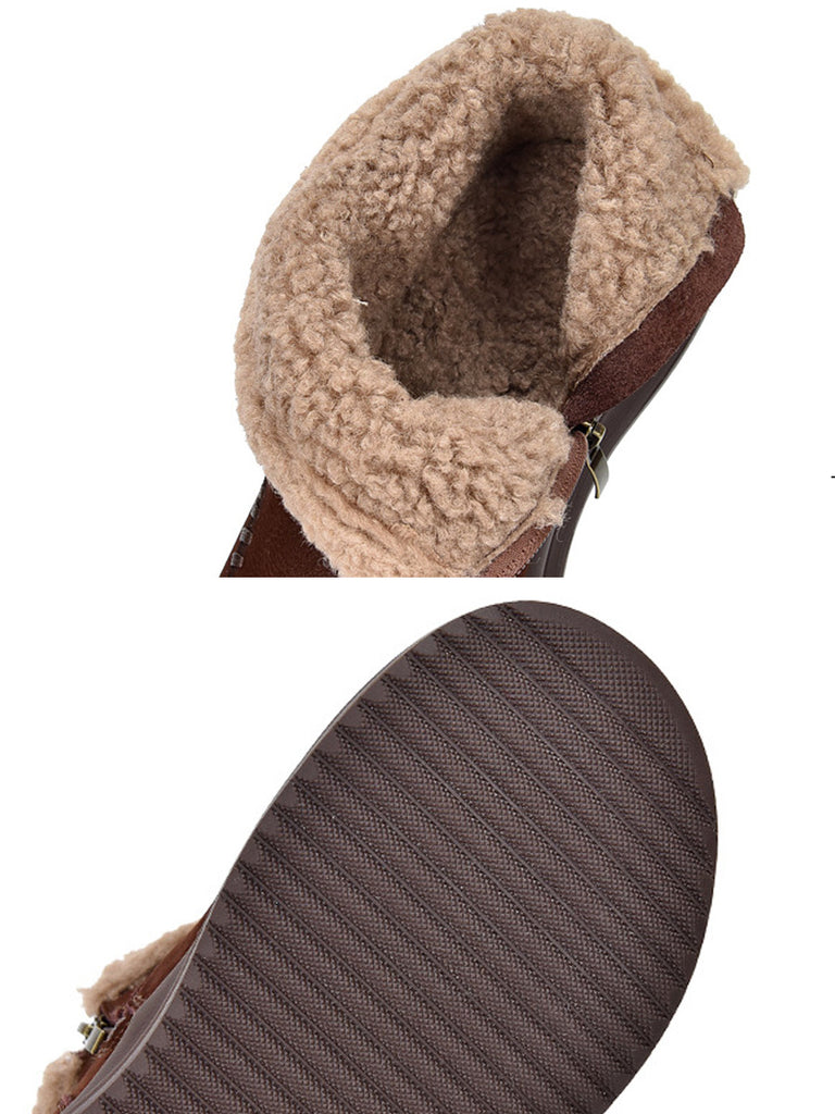 Women Winter Genuine Leather Fleece-lined Martin Boots