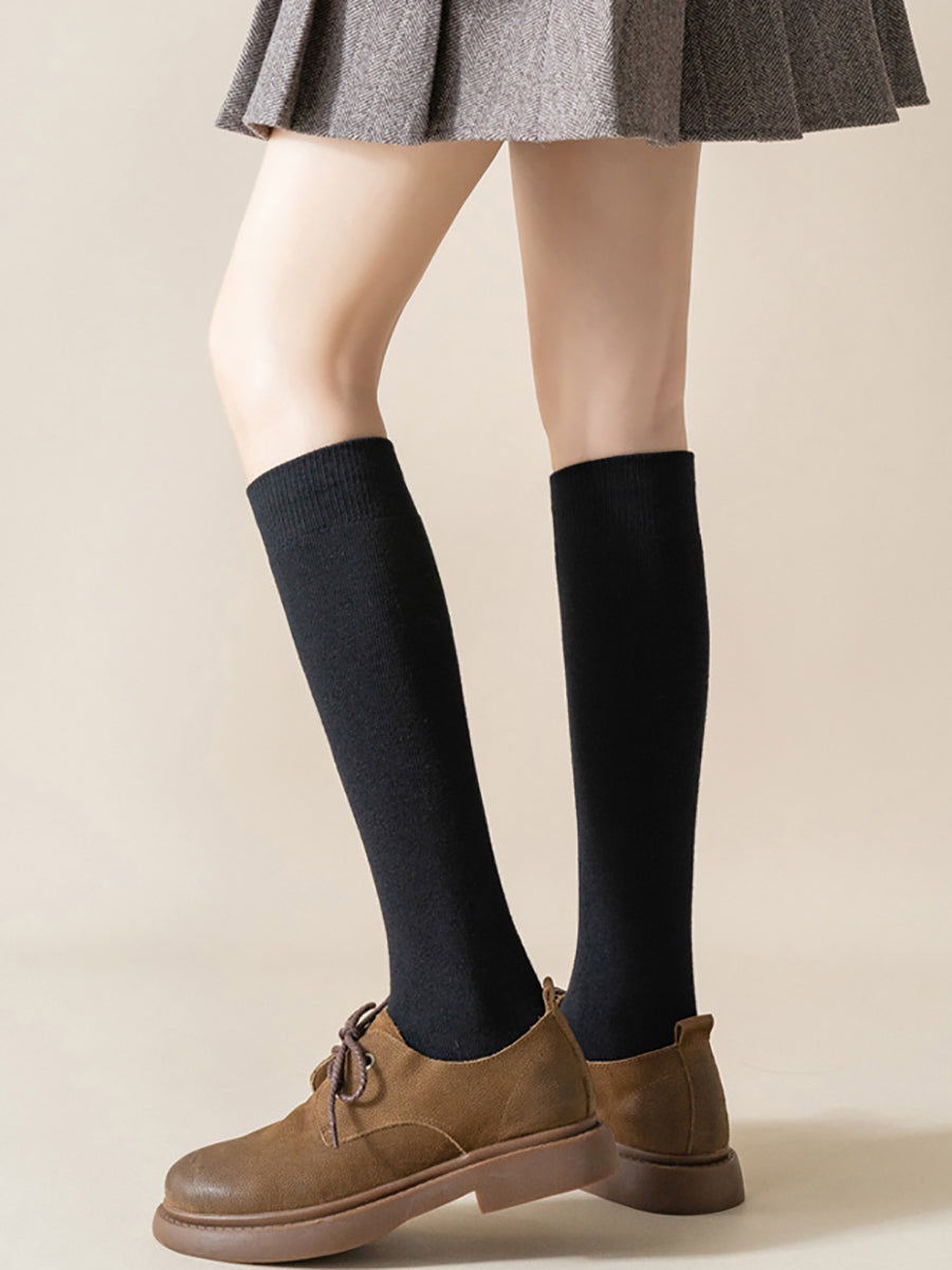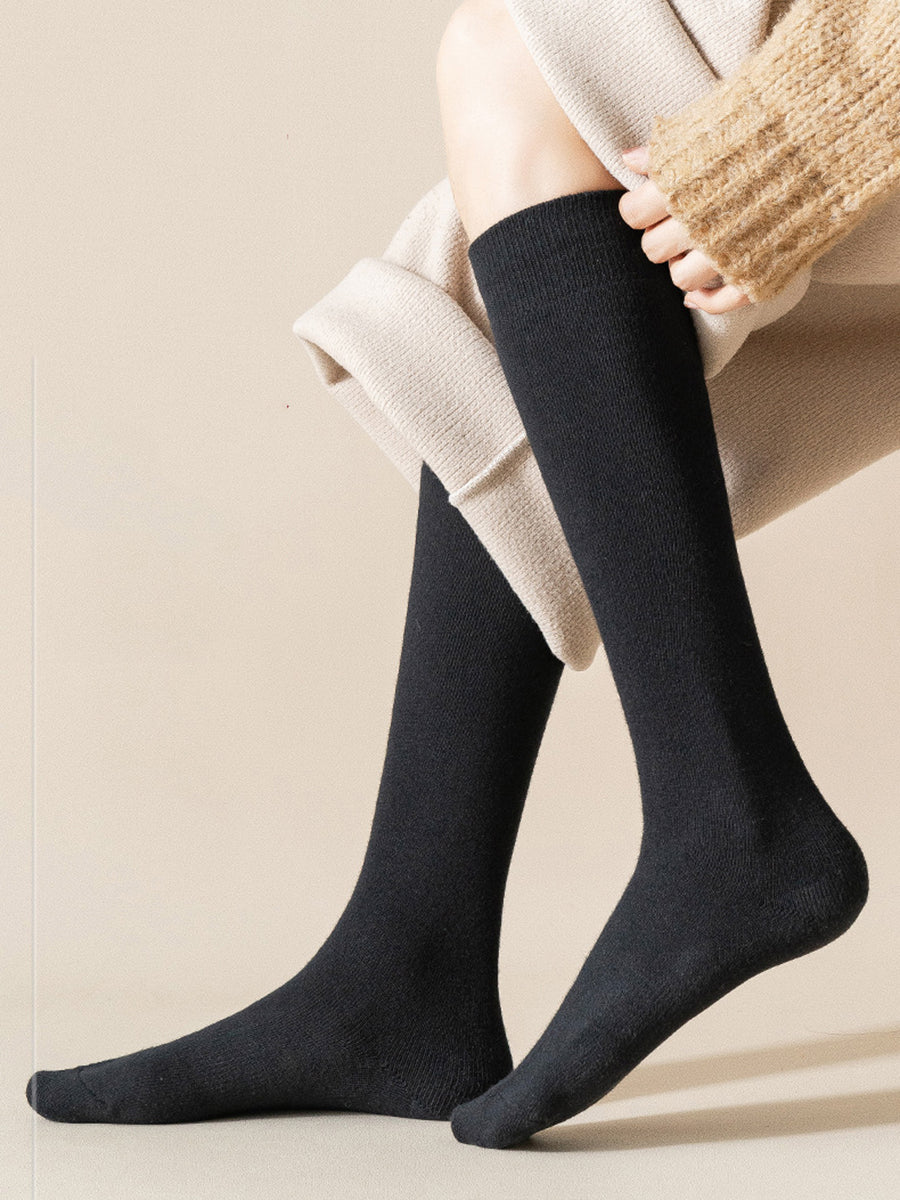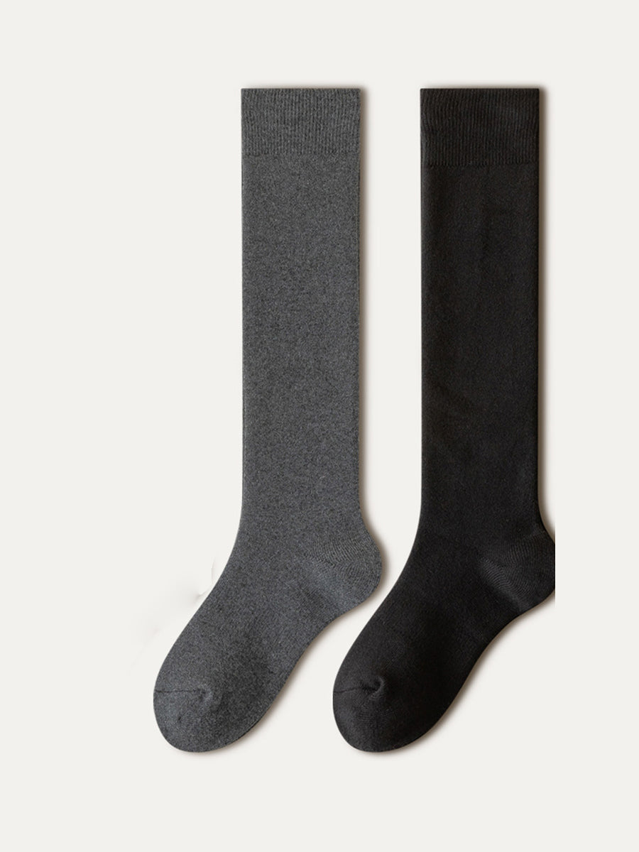 2 paires de chaussettes longues unies à motifs artistiques pour femmes