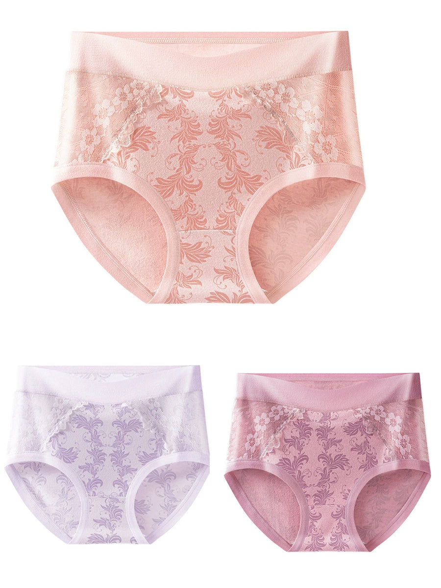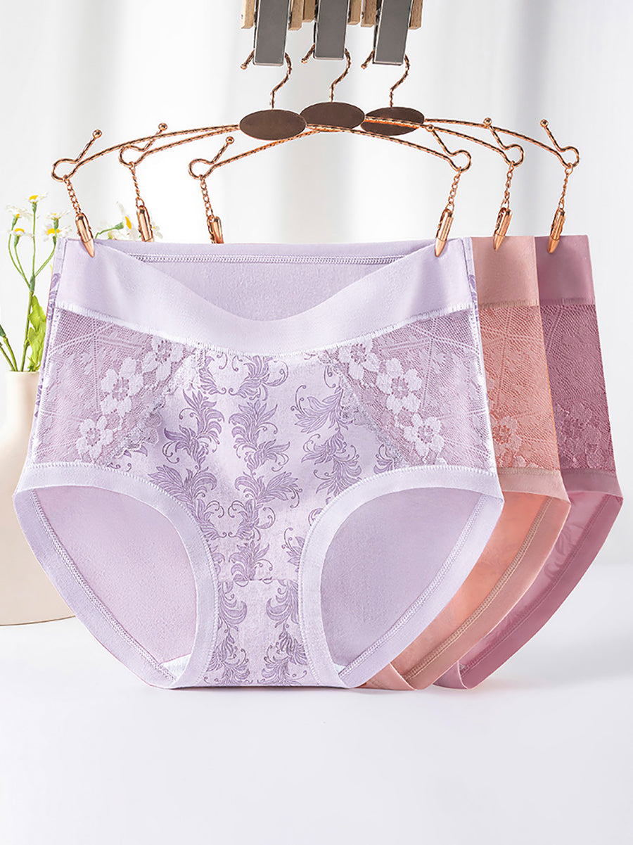 Ensemble de lingerie 3 pièces pour femme, dentelle florale artistique, taille haute
