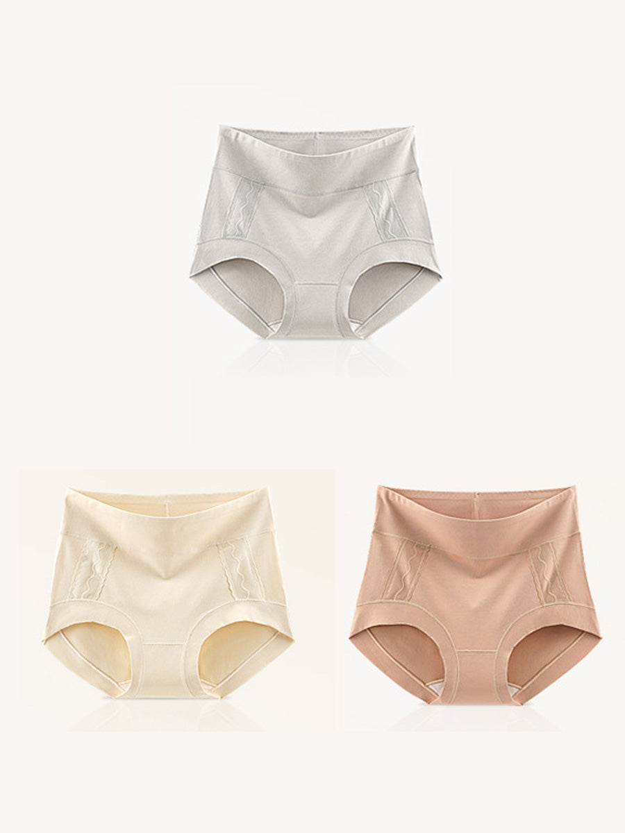 Ensemble de 3 pièces pour femme, lingerie taille haute, couleur unie et artistique