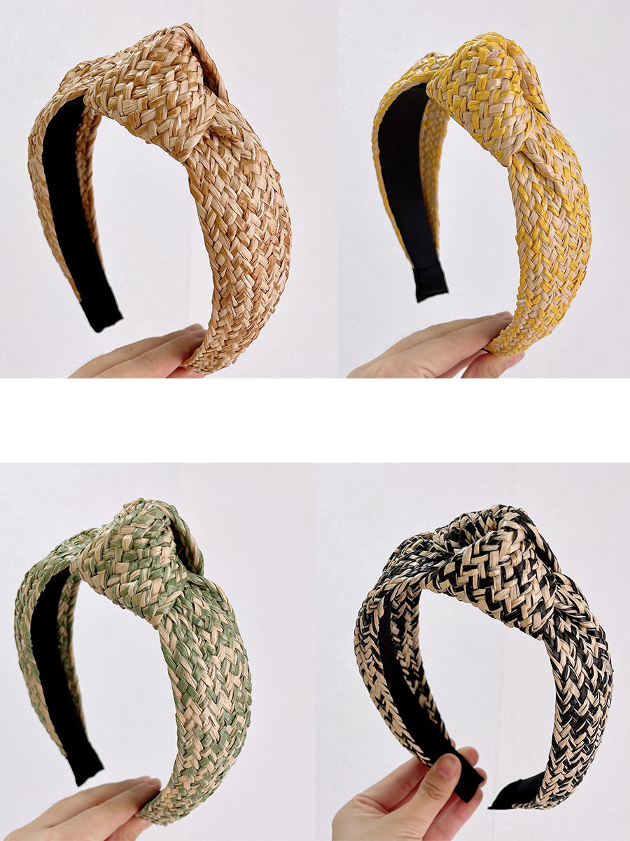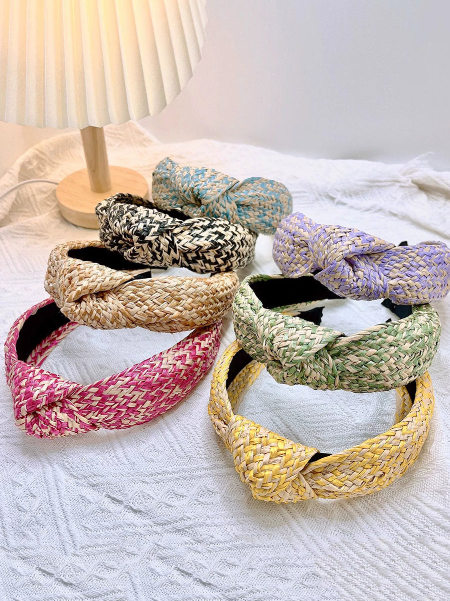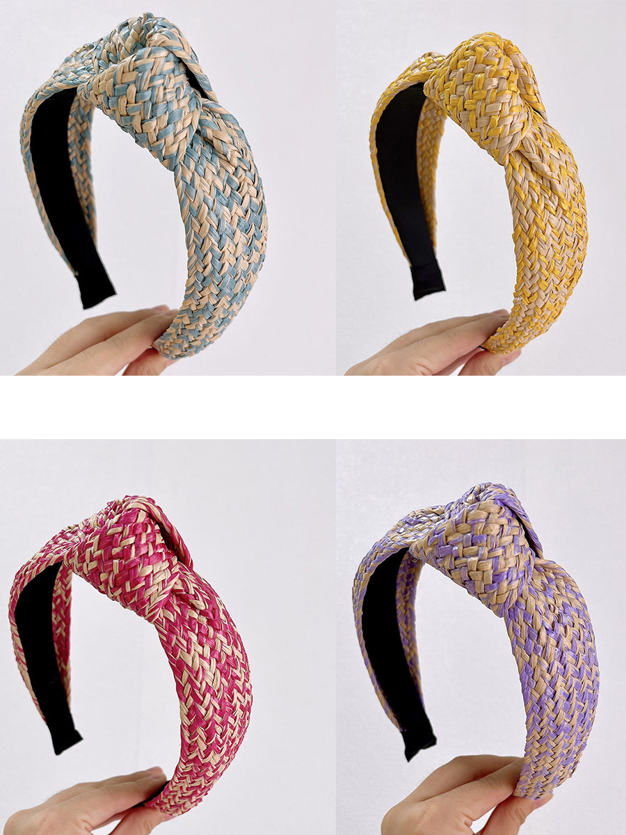 Lot de 4 bandeaux à cheveux artistiques en raphia tricotés avec nœud