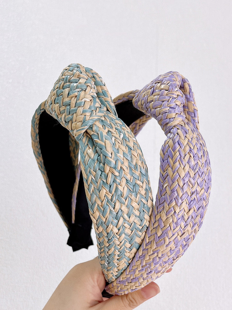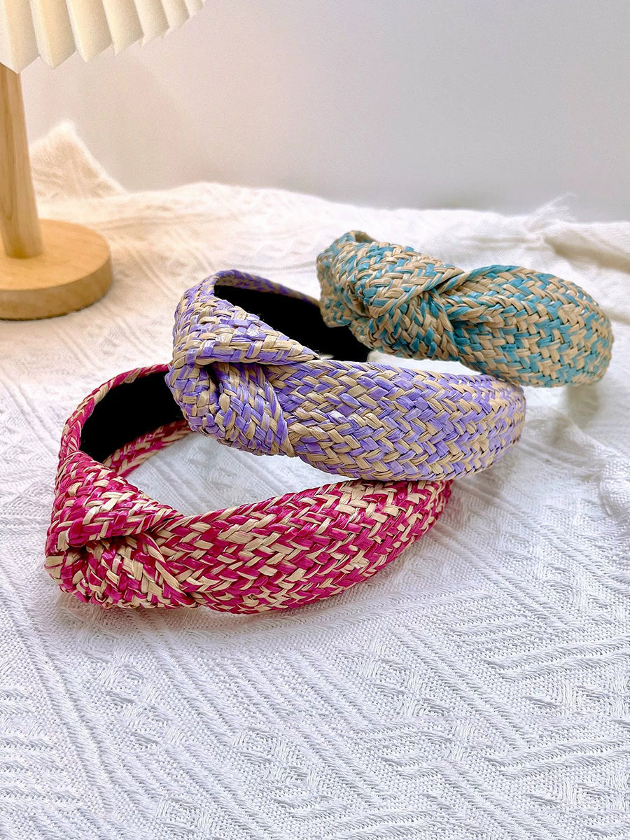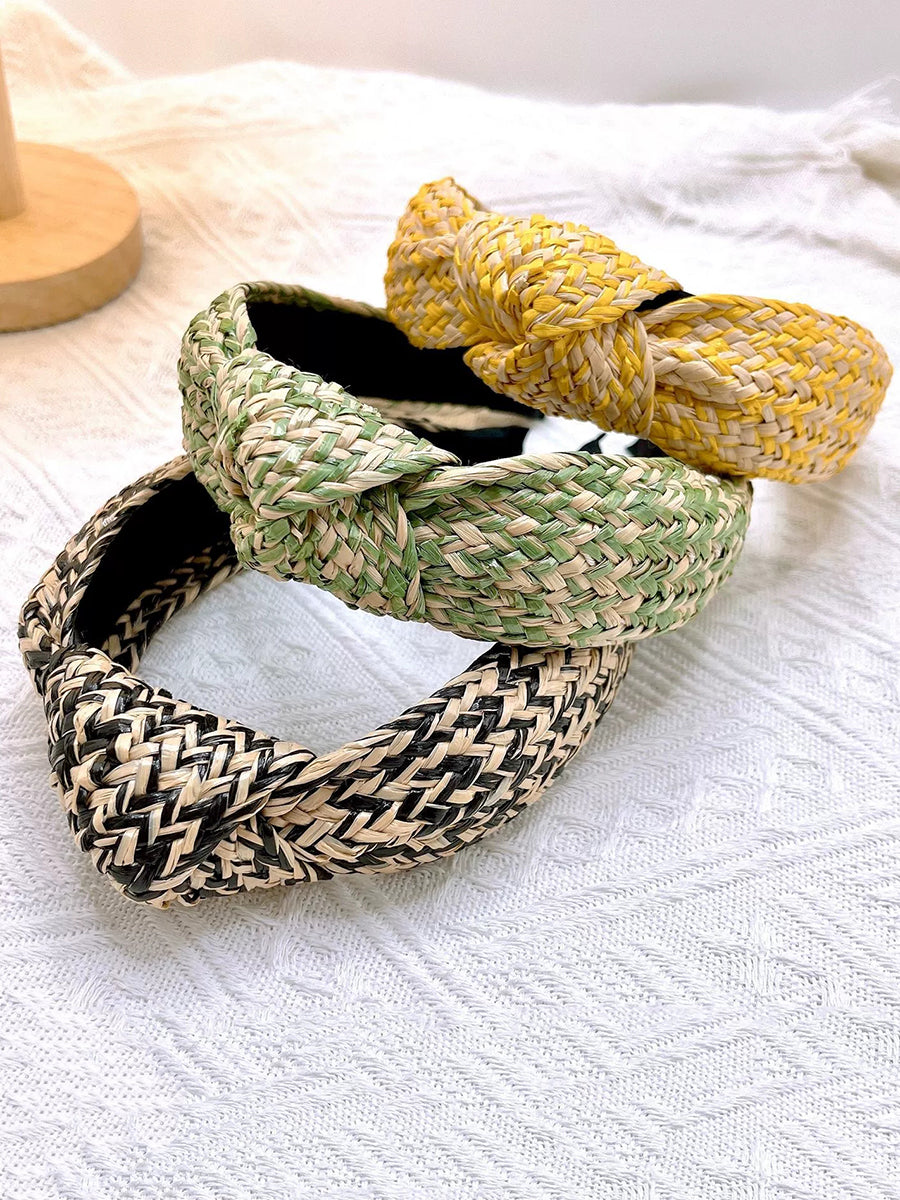 Lot de 4 bandeaux à cheveux artistiques en raphia tricotés avec nœud