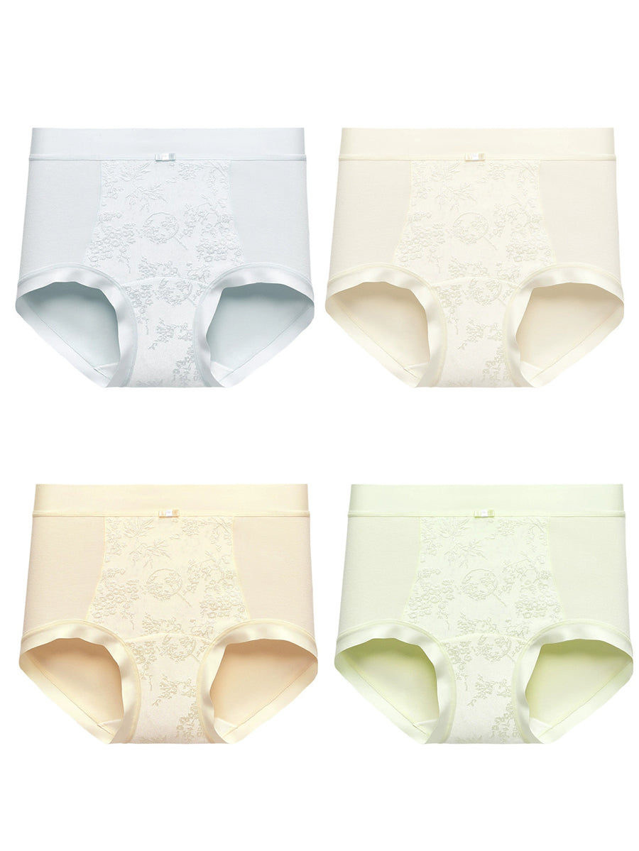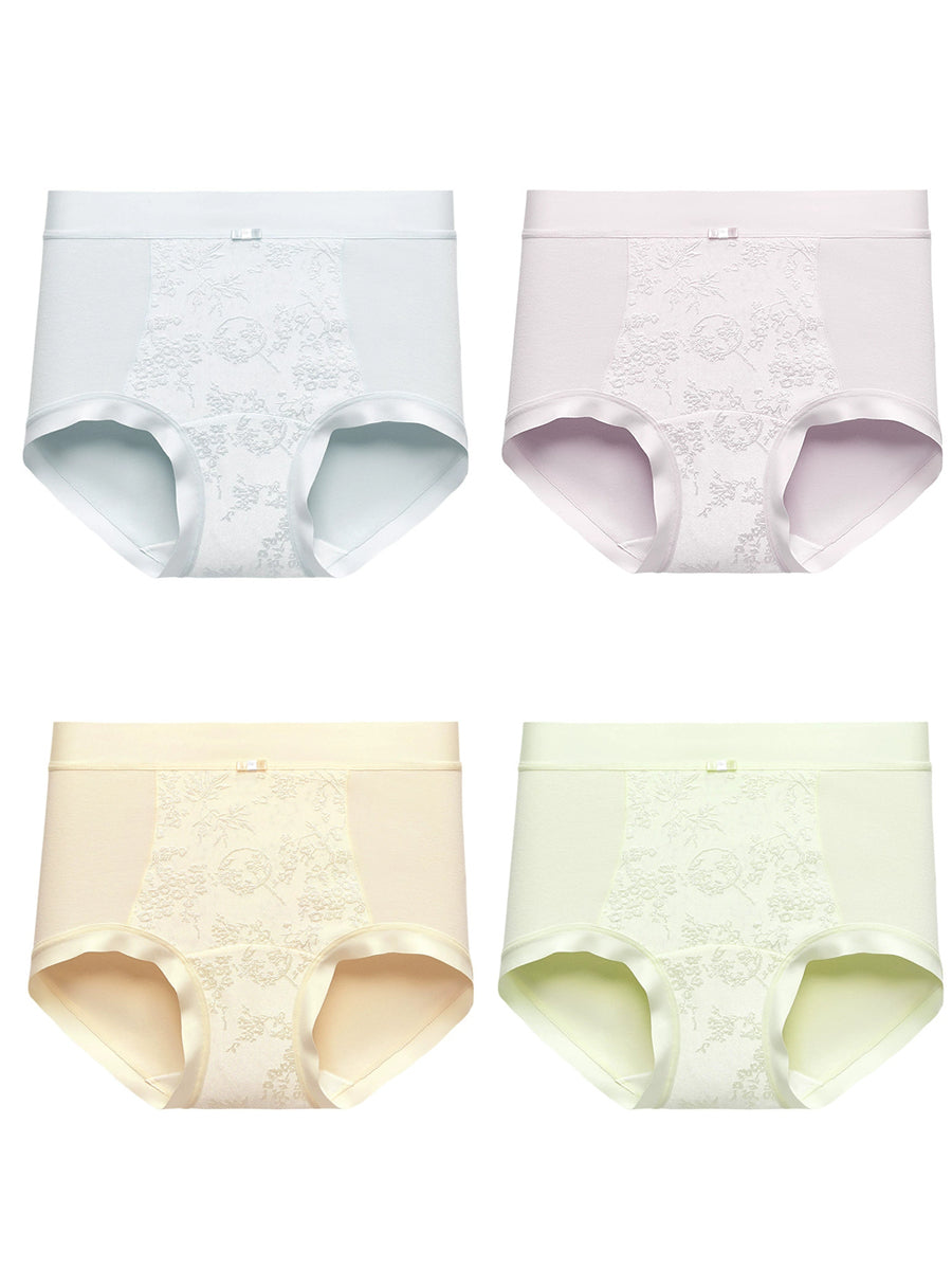 Ensemble de 4 pièces pour femme, lingerie jacquard à fleurs artistiques, taille haute