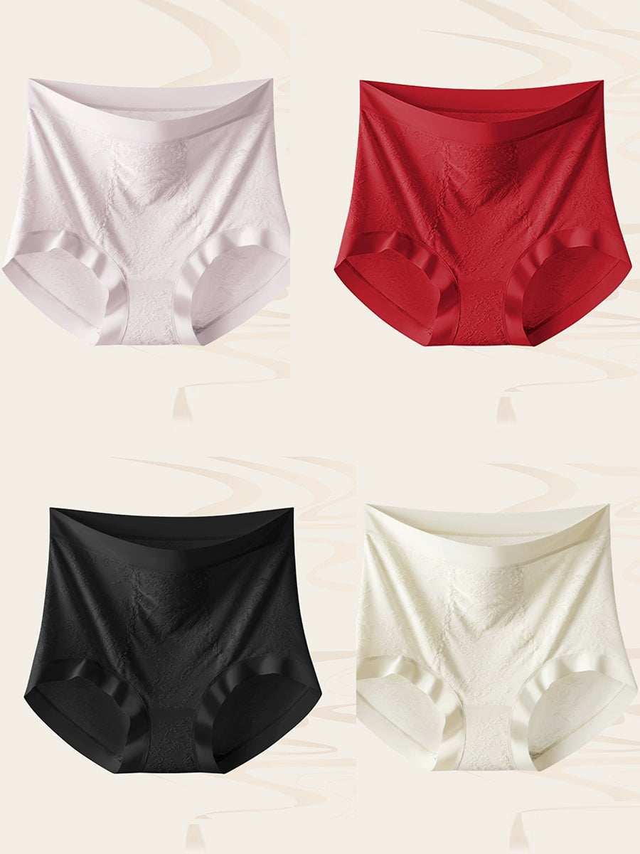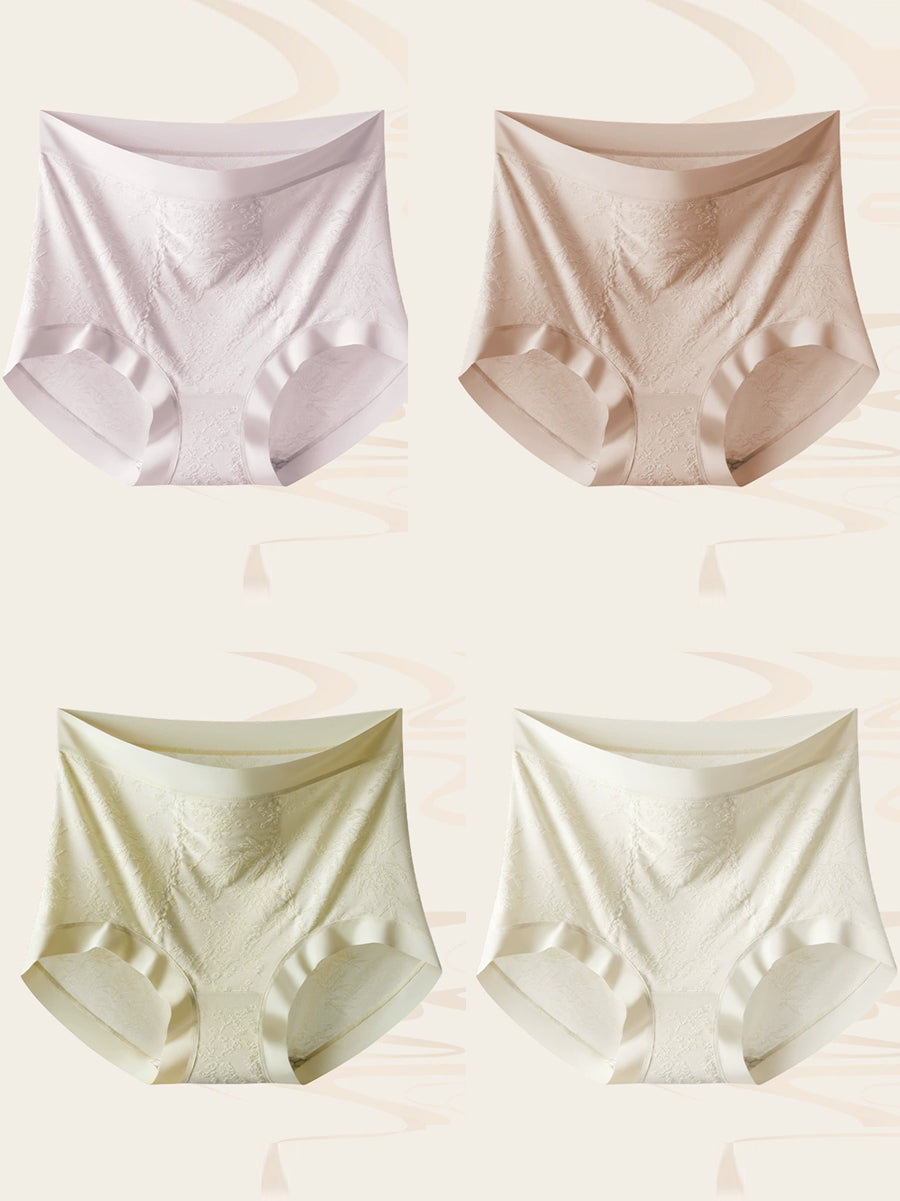 Ensemble de 4 pièces pour femme, lingerie jacquard artistique taille haute