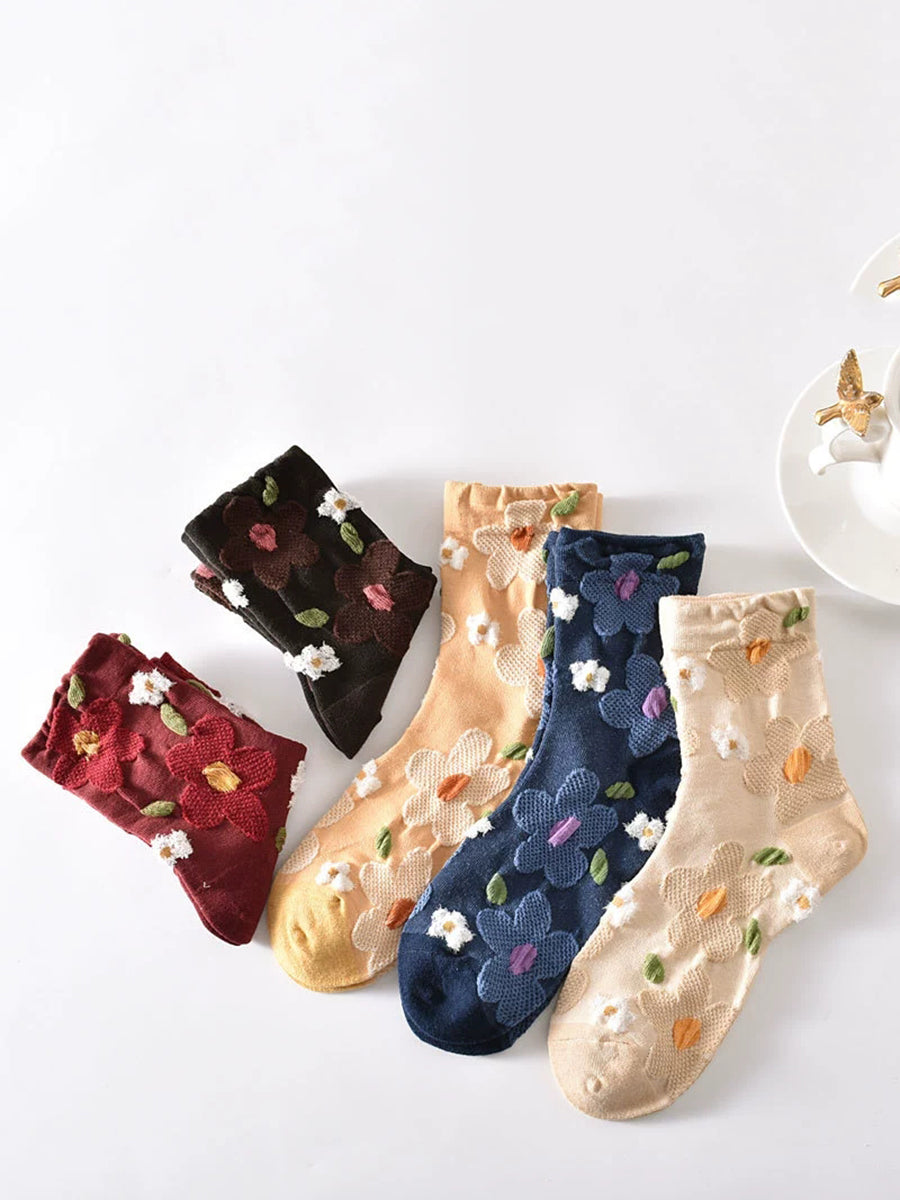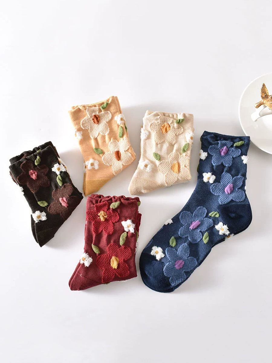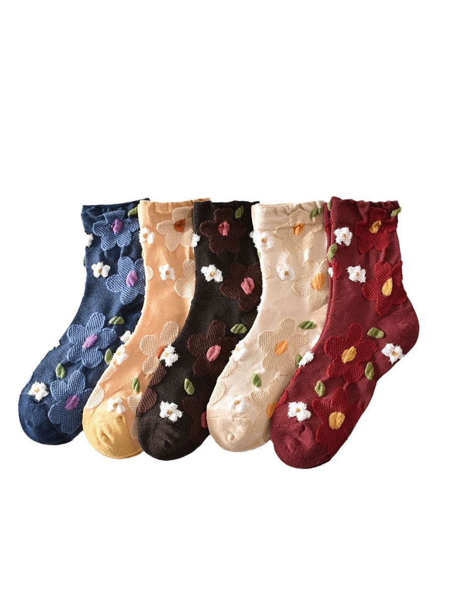 Lot de 5 paires de chaussettes en coton jacquard à fleurs pour femmes
