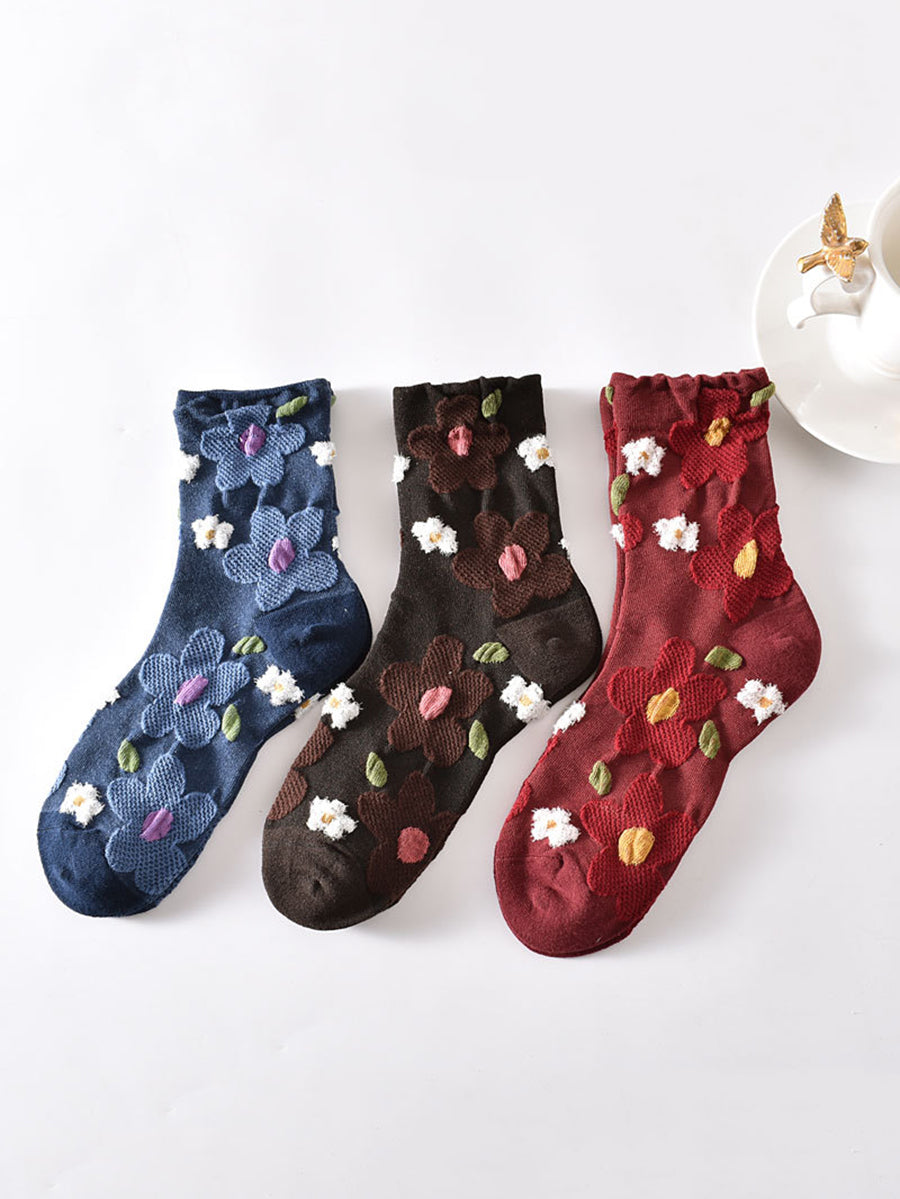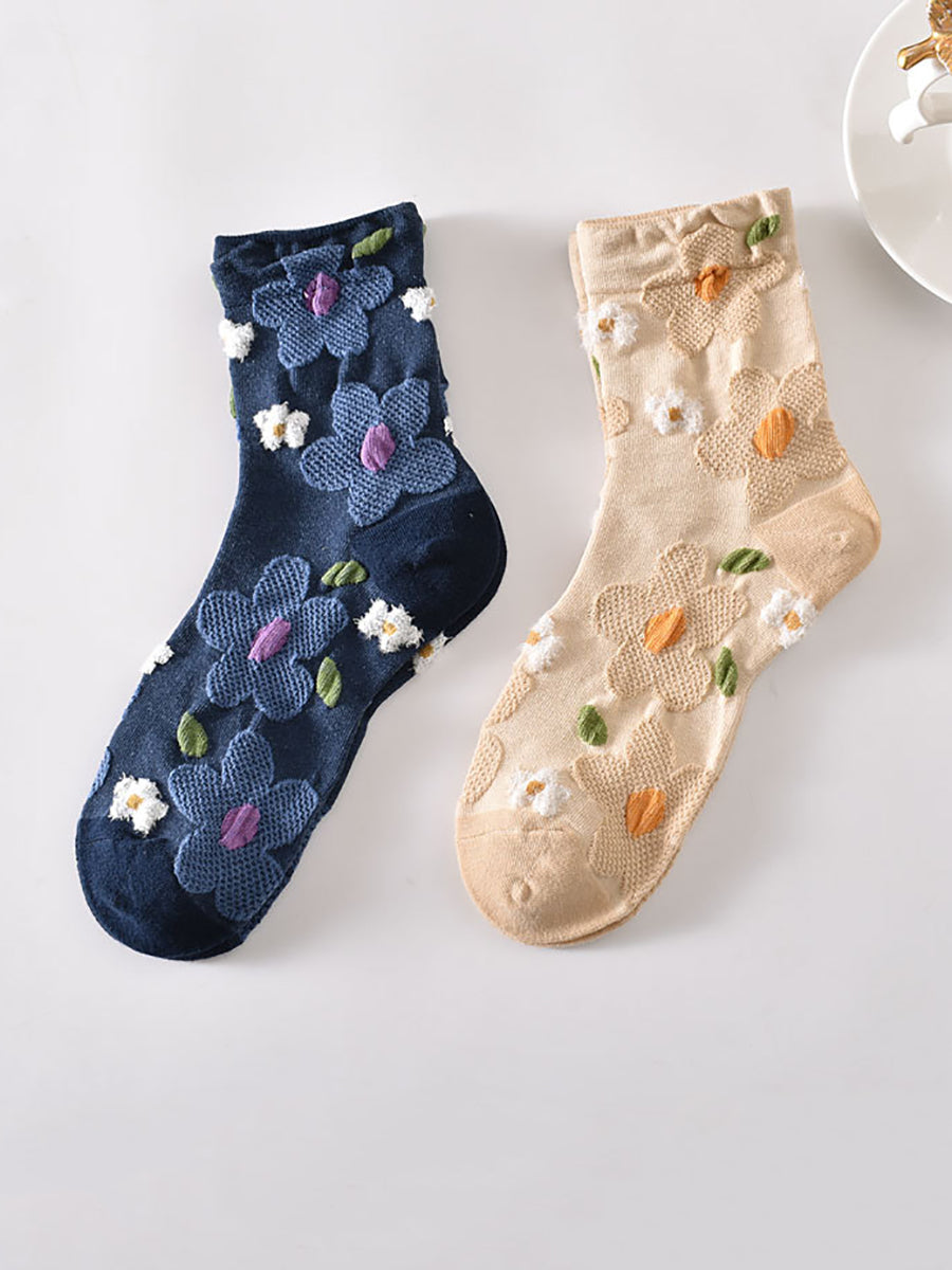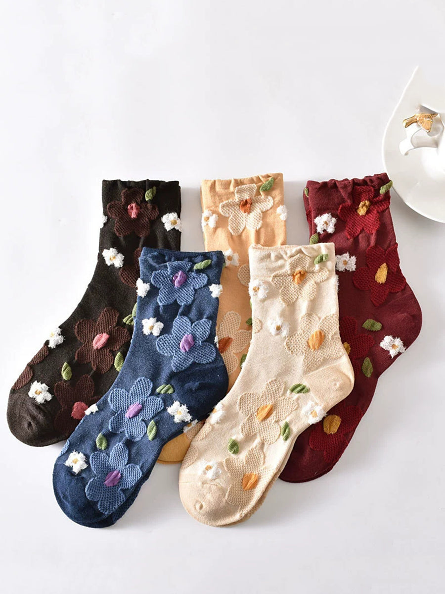 Lot de 5 paires de chaussettes en coton jacquard à fleurs pour femmes