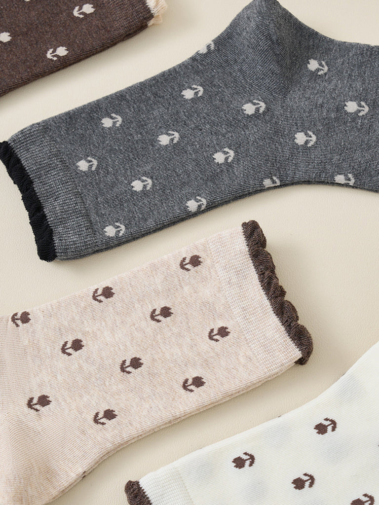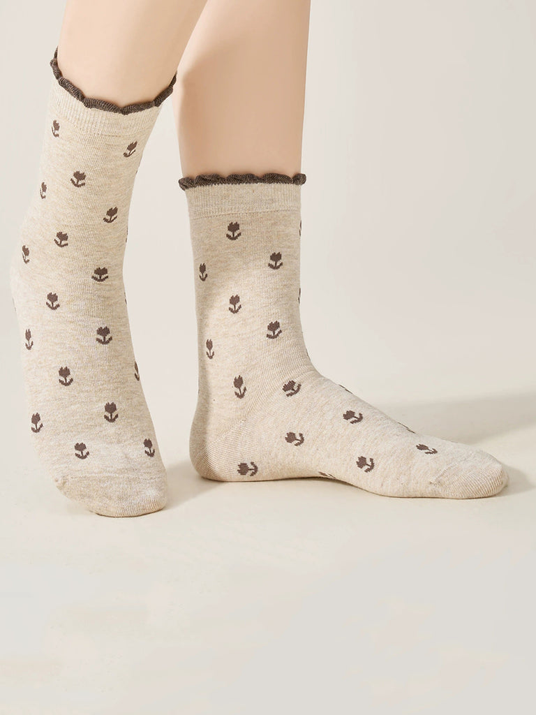 5 paires de chaussettes vintage en coton à fleurs pour femme