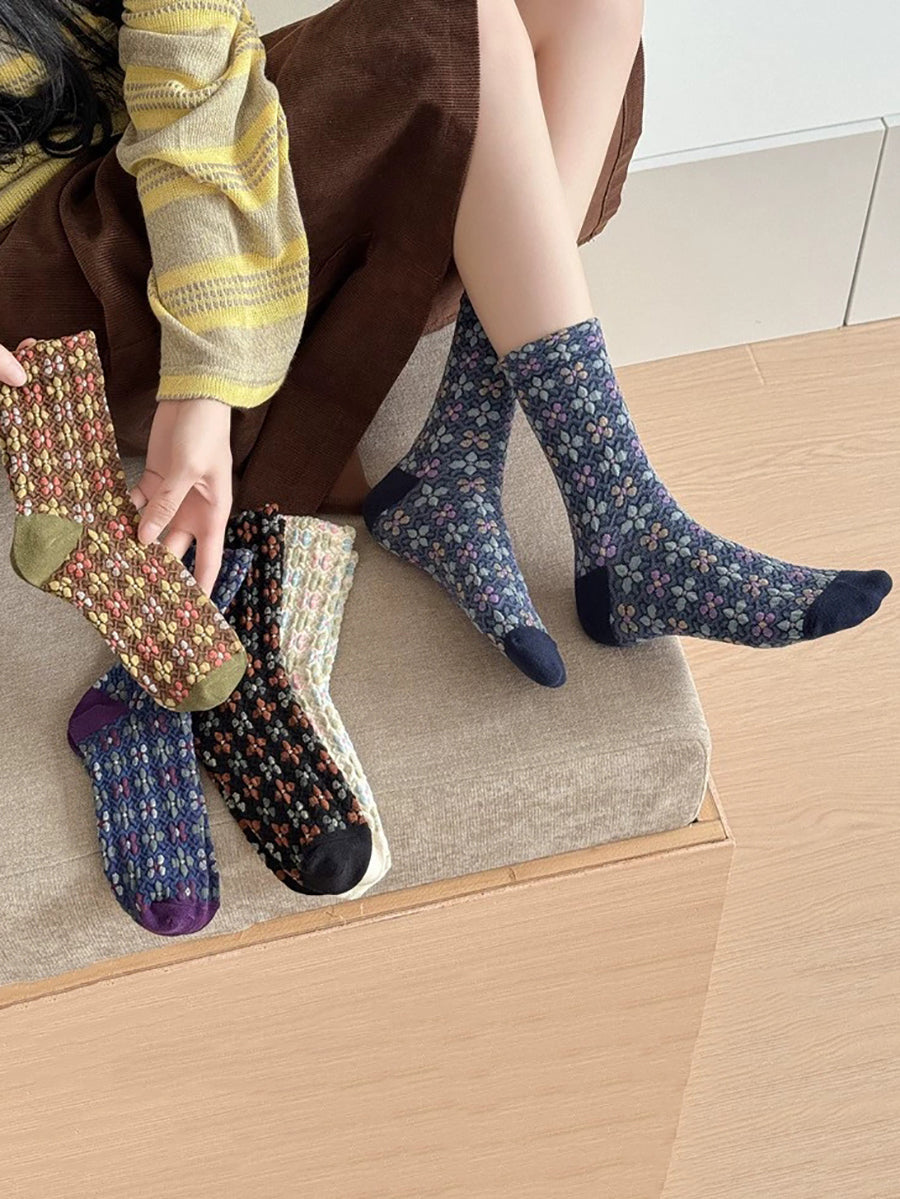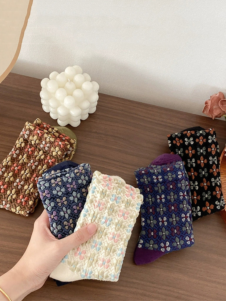 Lot de 5 paires de chaussettes en coton à motif floral vintage pour femme