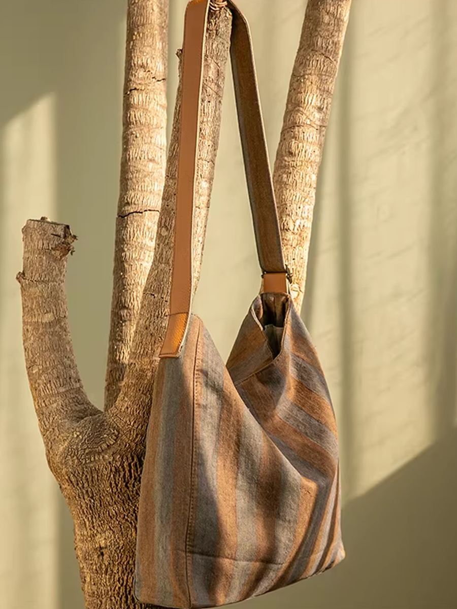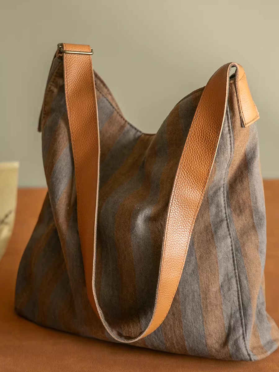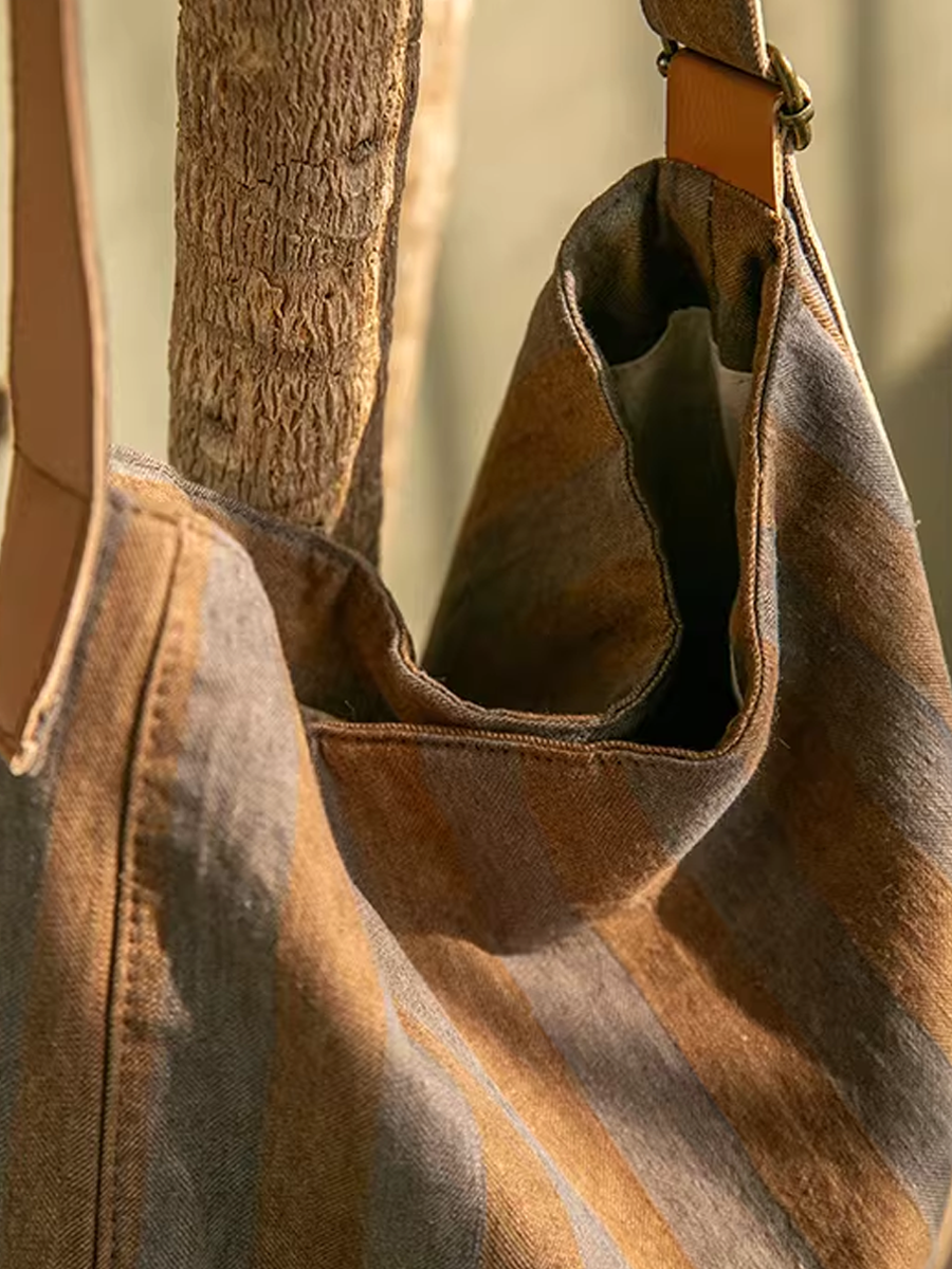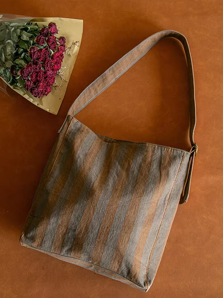 Sac en toile à rayures colorblock vintage décontracté 04014
