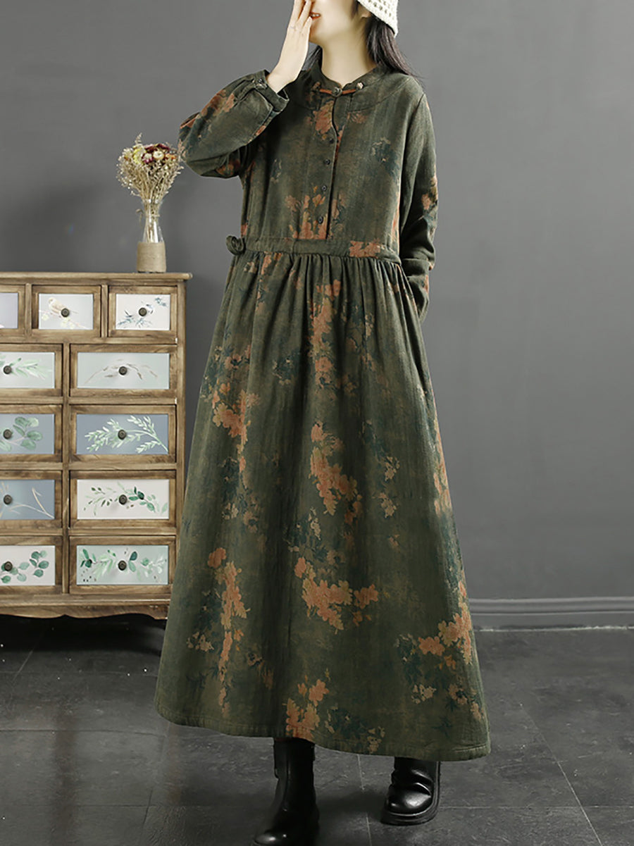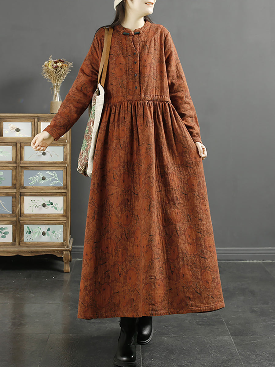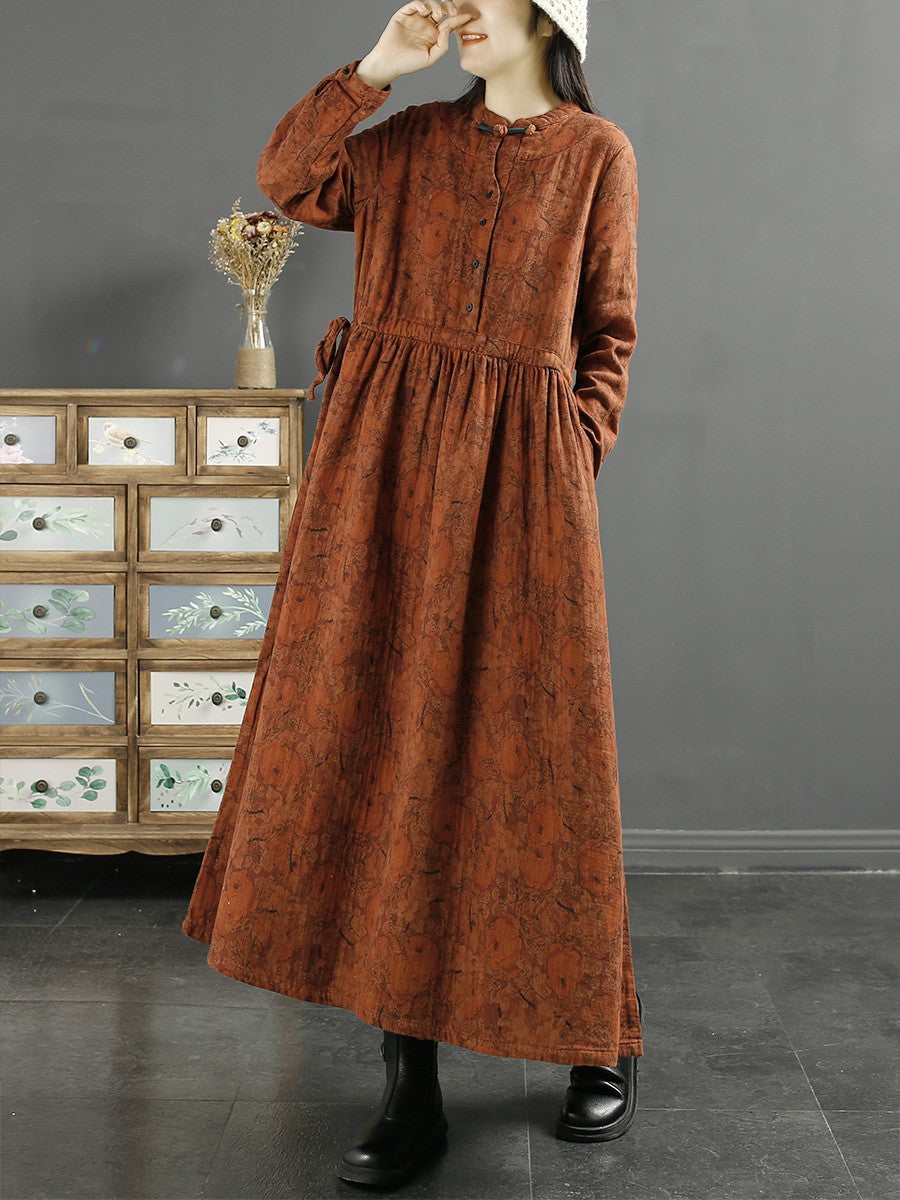 Robe en coton à imprimé feuilles vintage pour femme, grande taille, automne