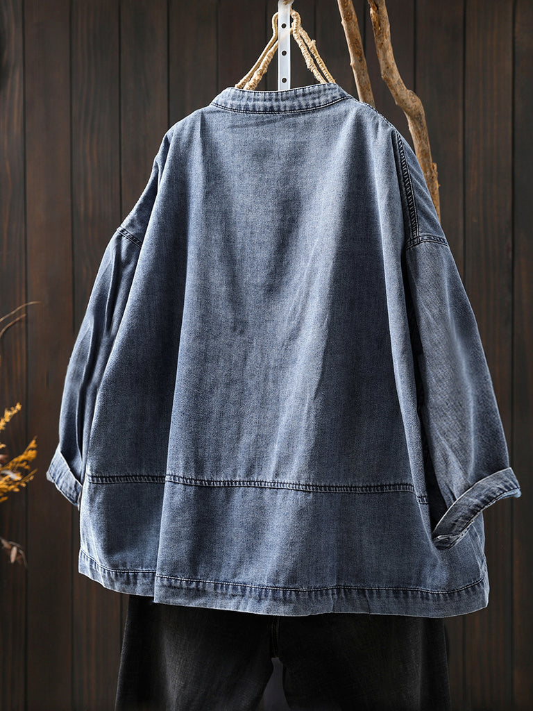 Manteau en jean rétro d'été pour femme grande taille, couleur unie, col montant