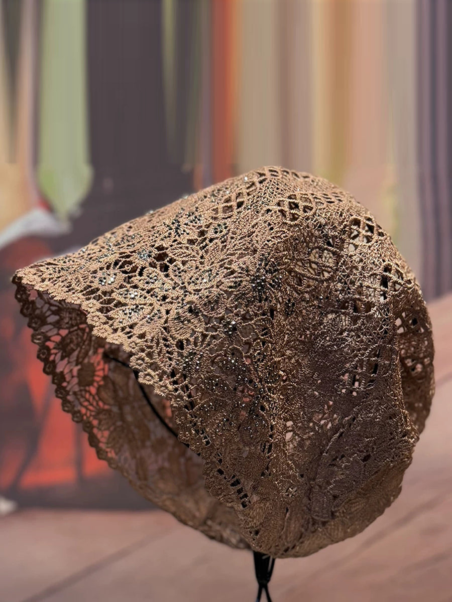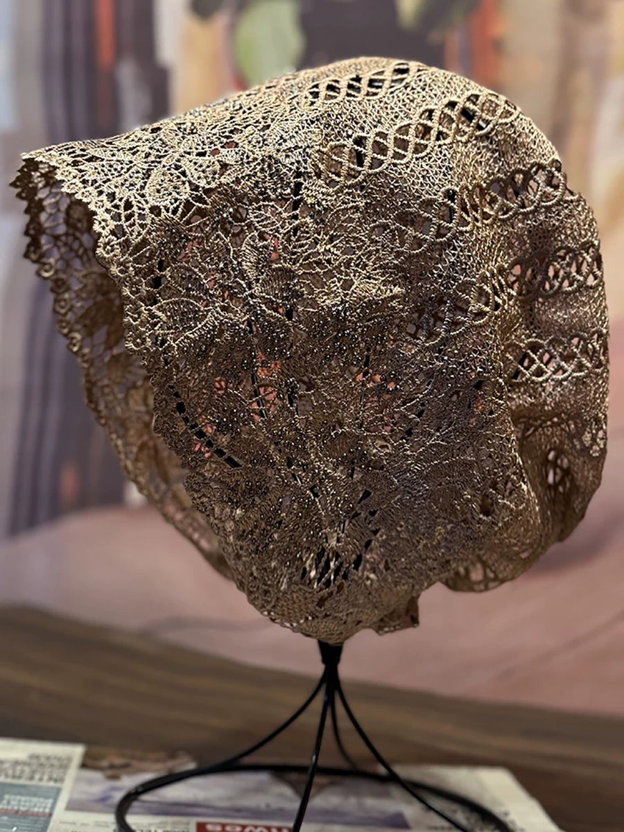 Chapeau d'été ajouré en dentelle florale artistique tricotée