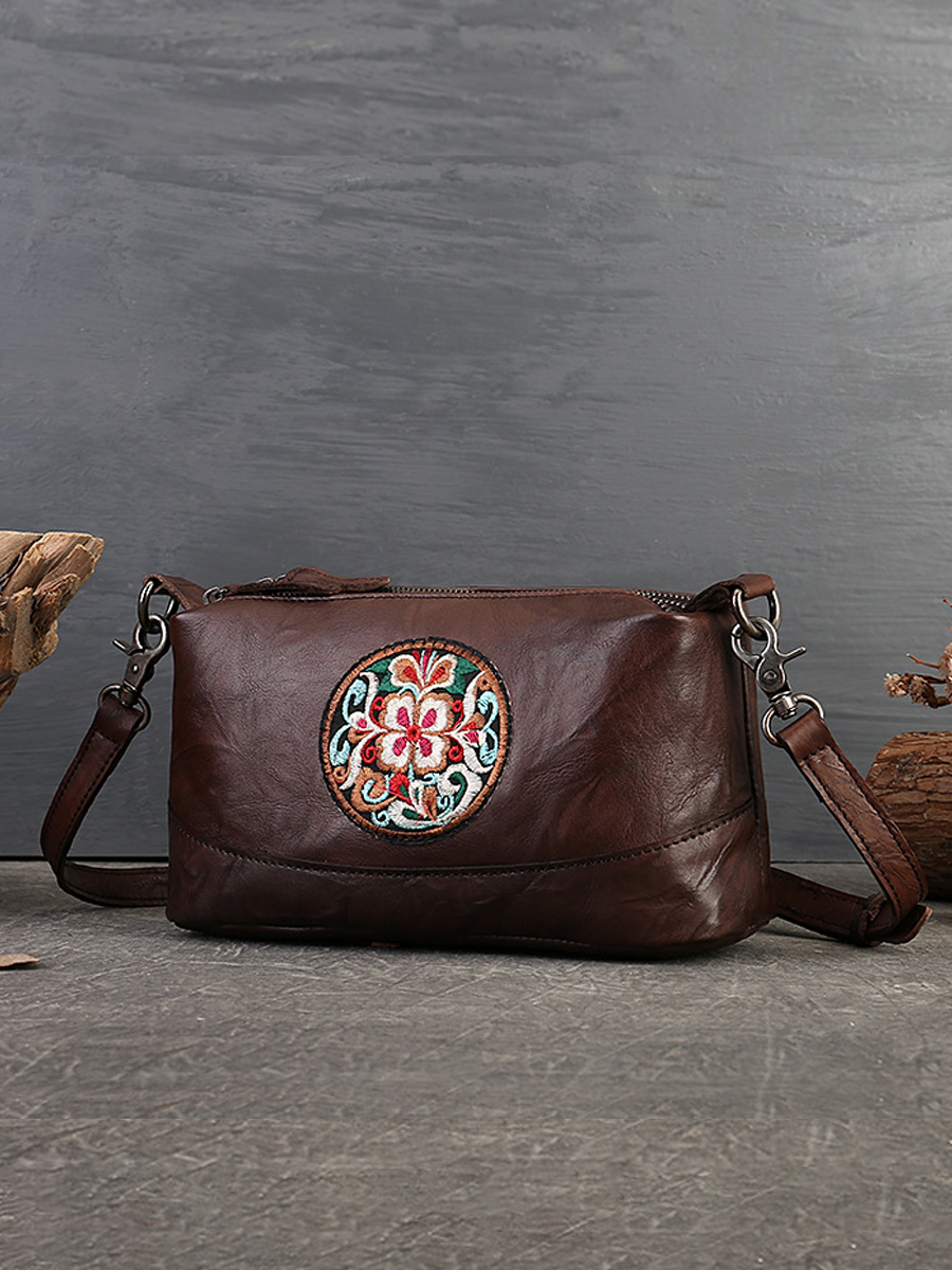 • Points forts : Coutures ; Broderie florale ; Cuir assemblé ; Style vintage ; Fabrication artisanale ;
