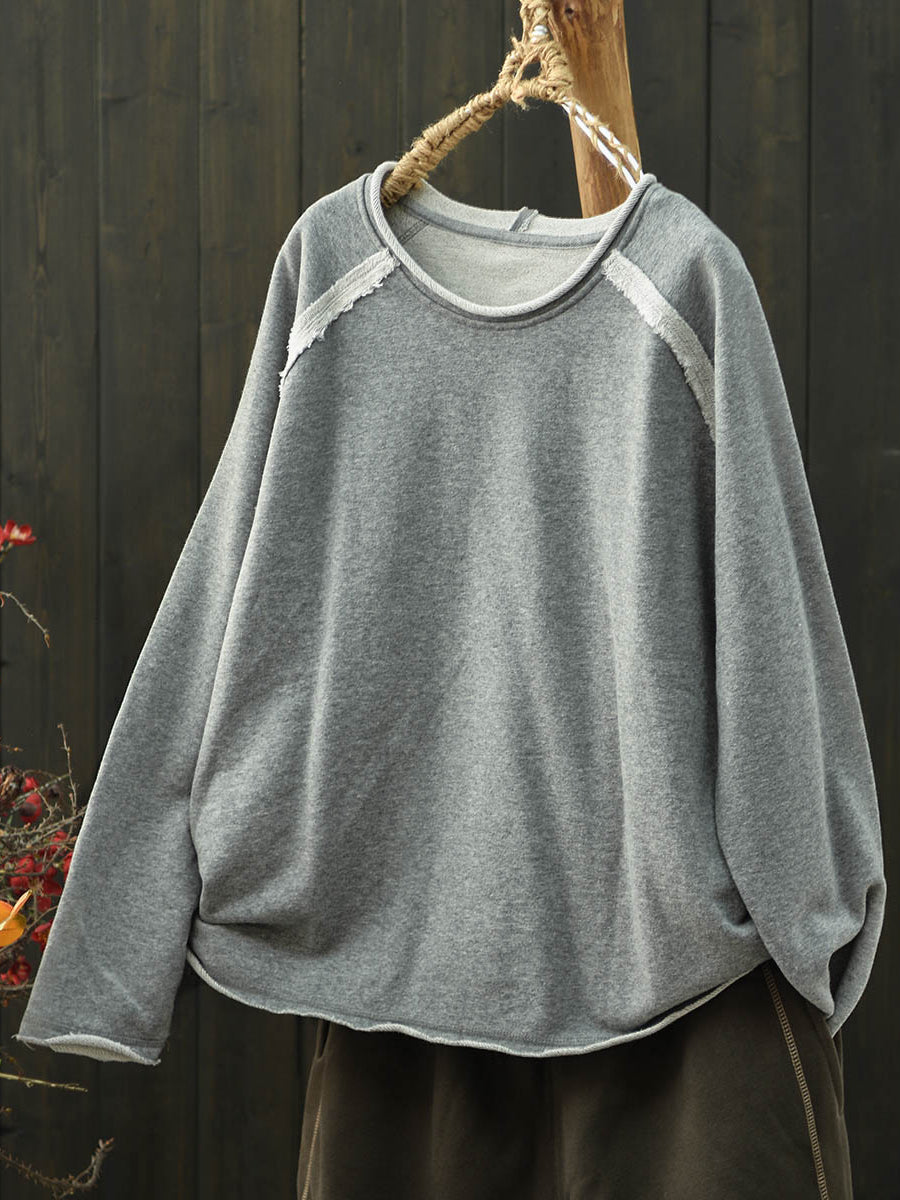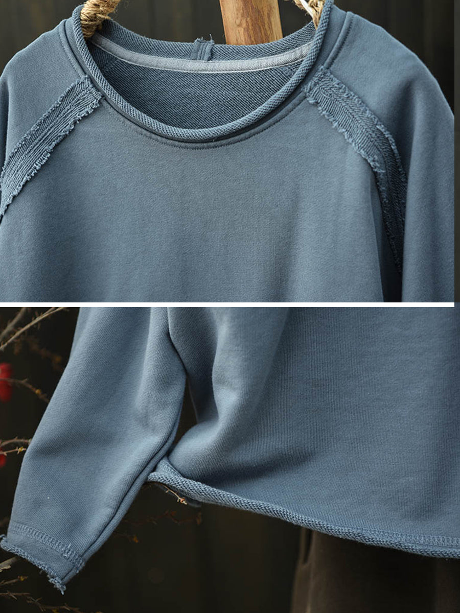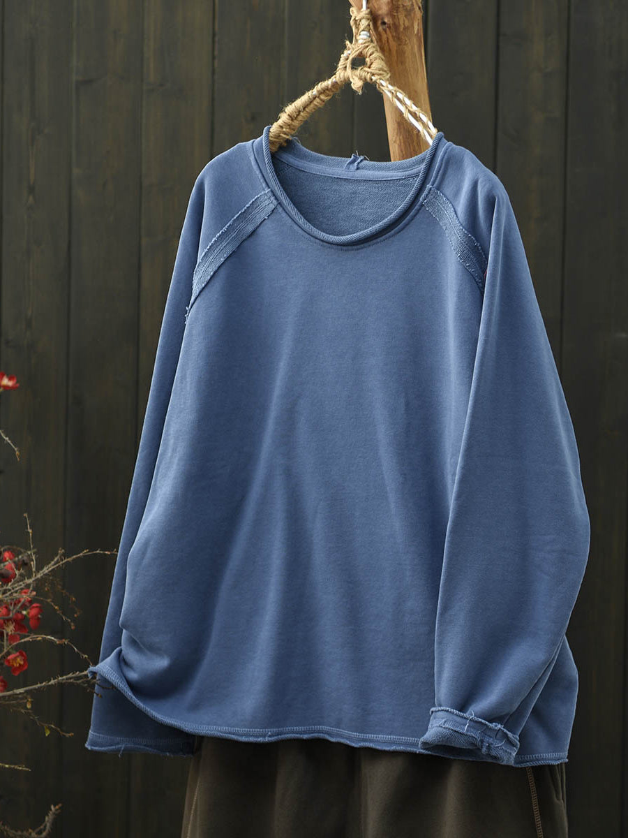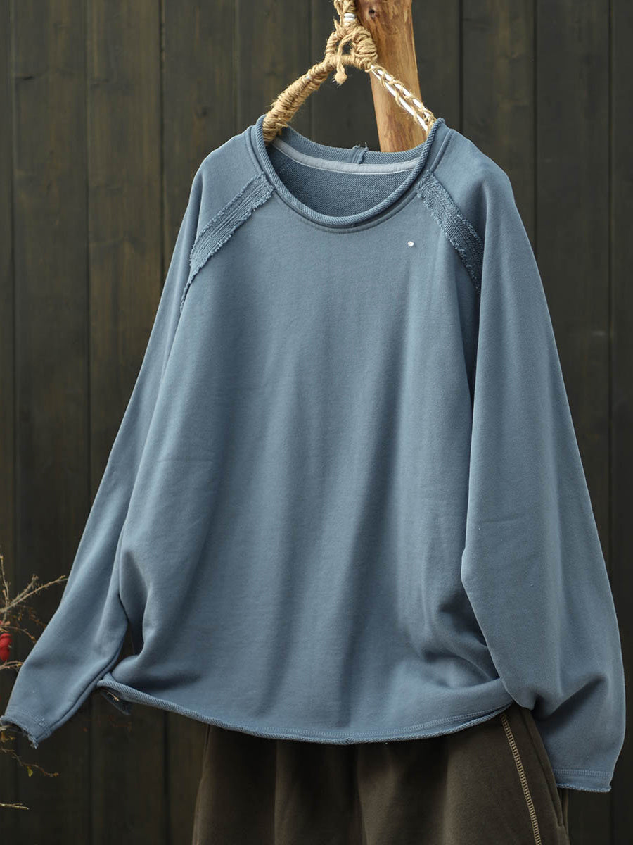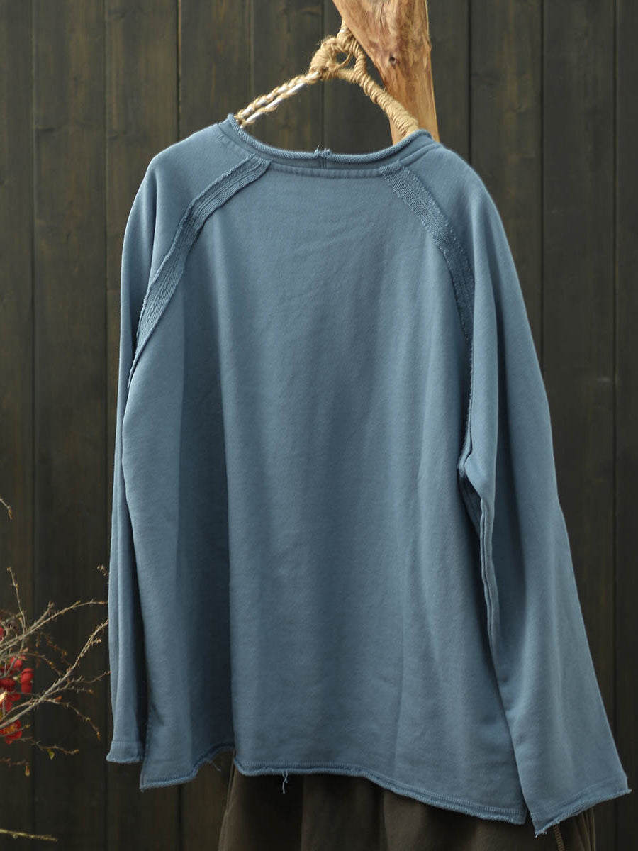 Chemisier en coton à col rond, col rond, uni, uni, style automnal artistique pour femme