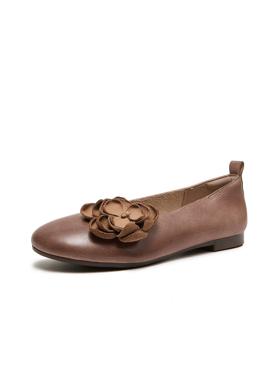 Chaussures à talons bas en cuir fendu à motif floral artistique pour femmes