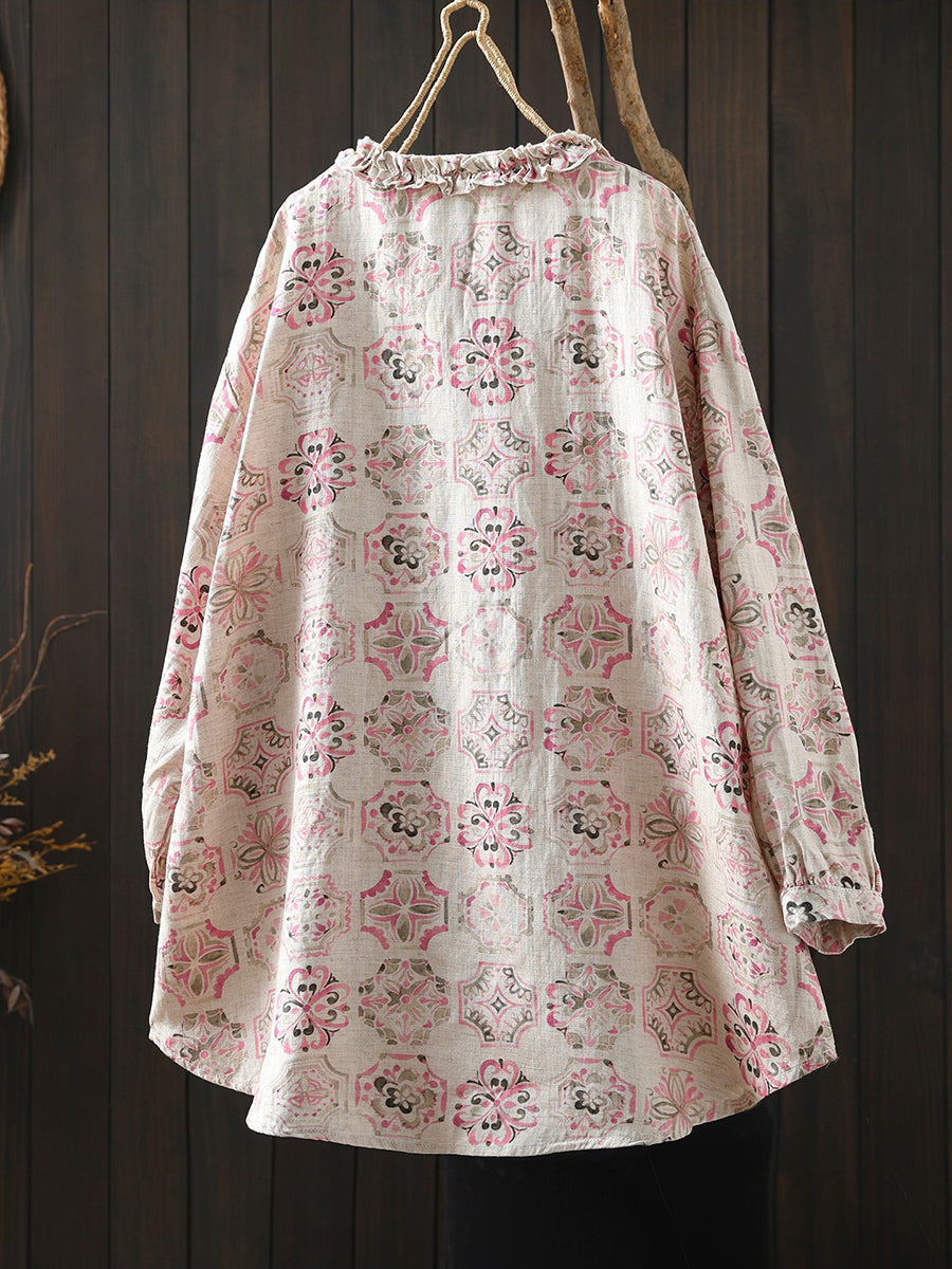 Chemisier fleuri printanier artistique pour femme, 100 % lin