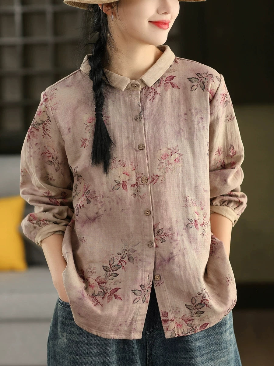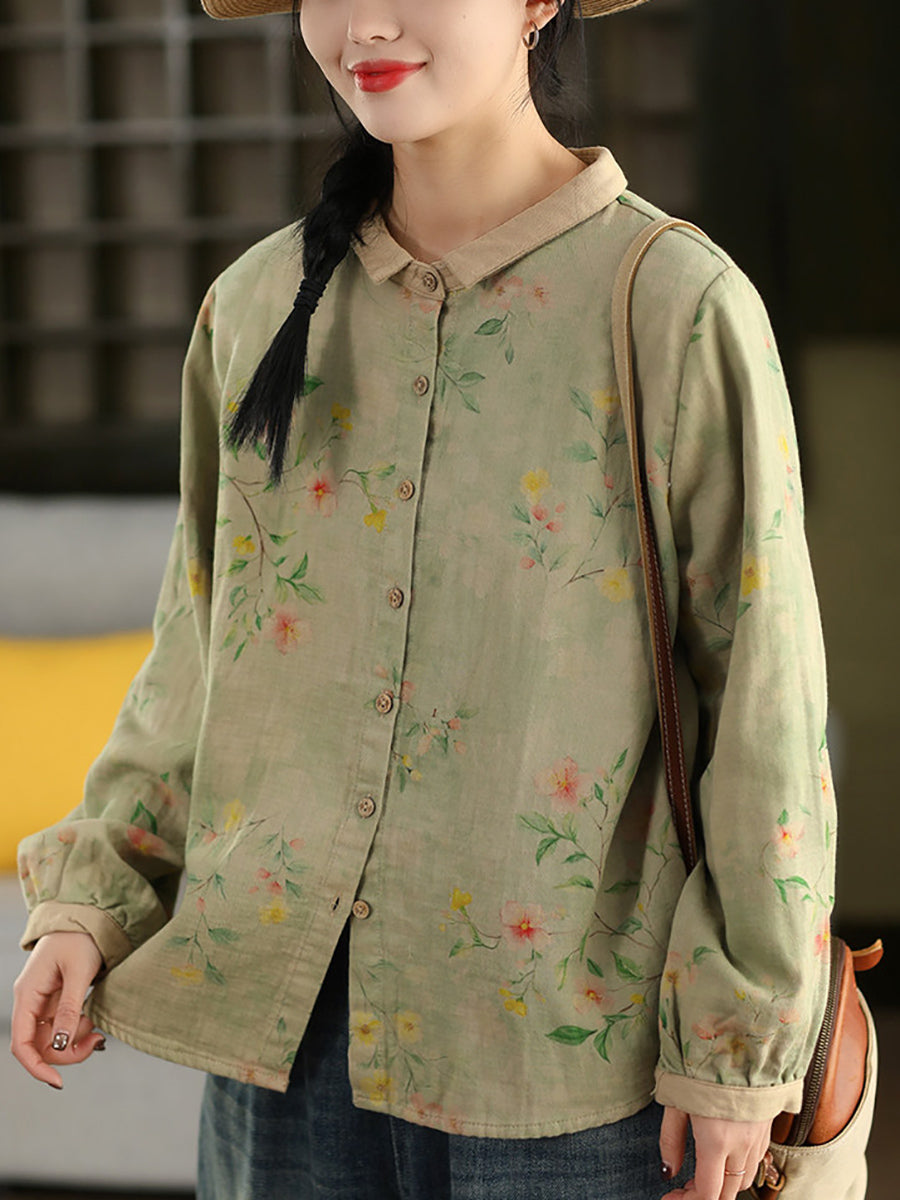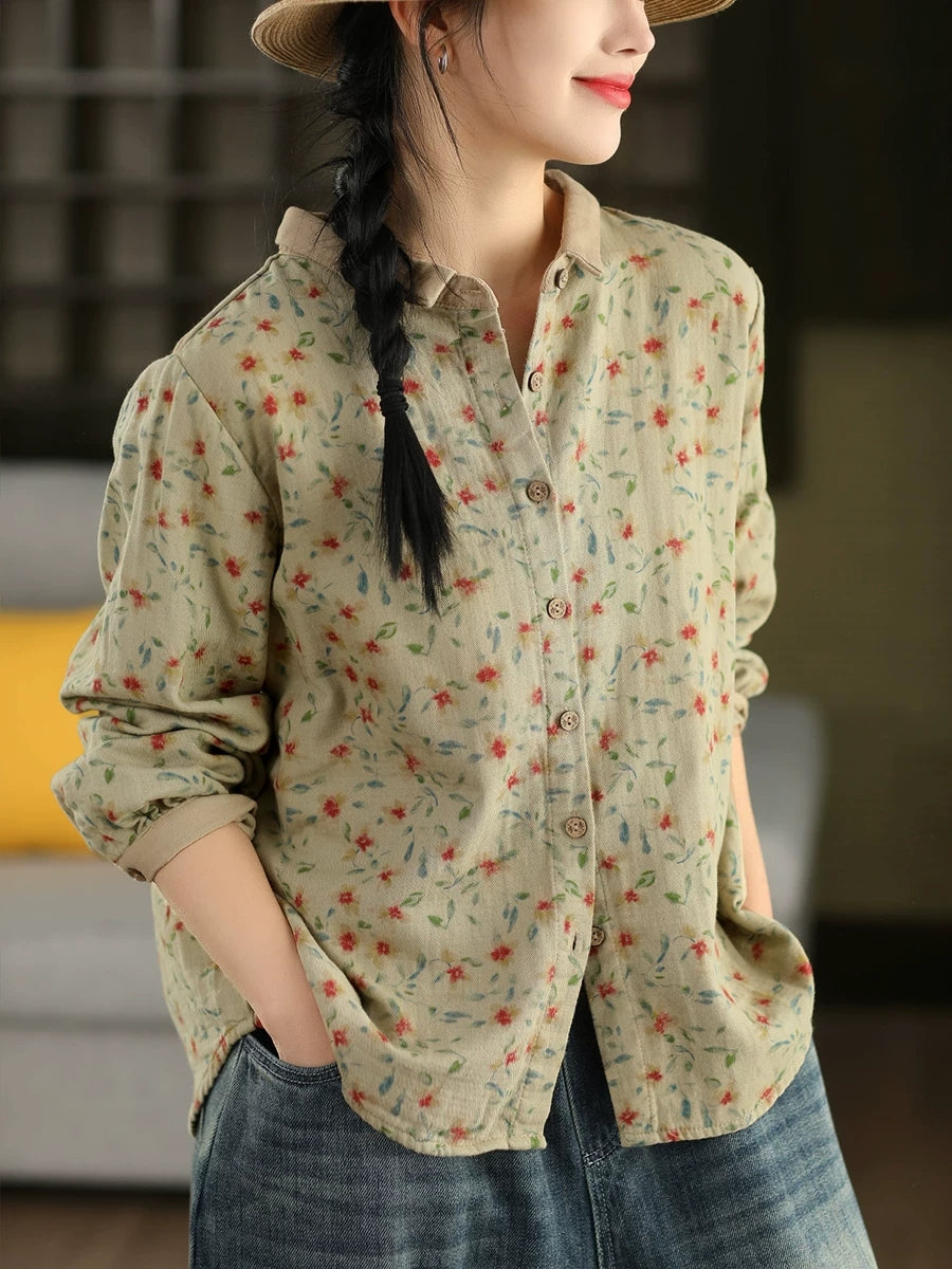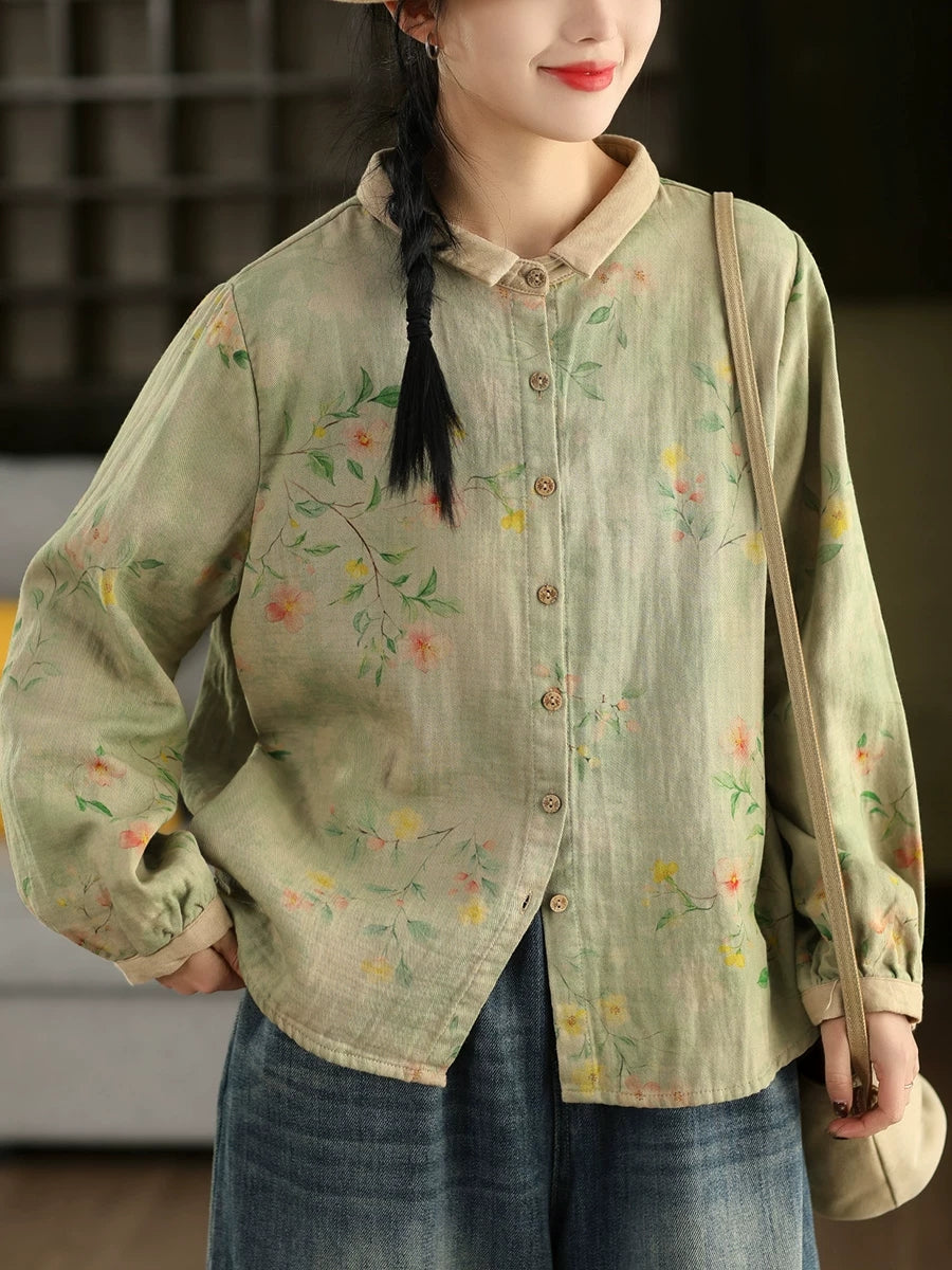 Chemise à col rabattu fleurie printanière pour femme, 100 % coton