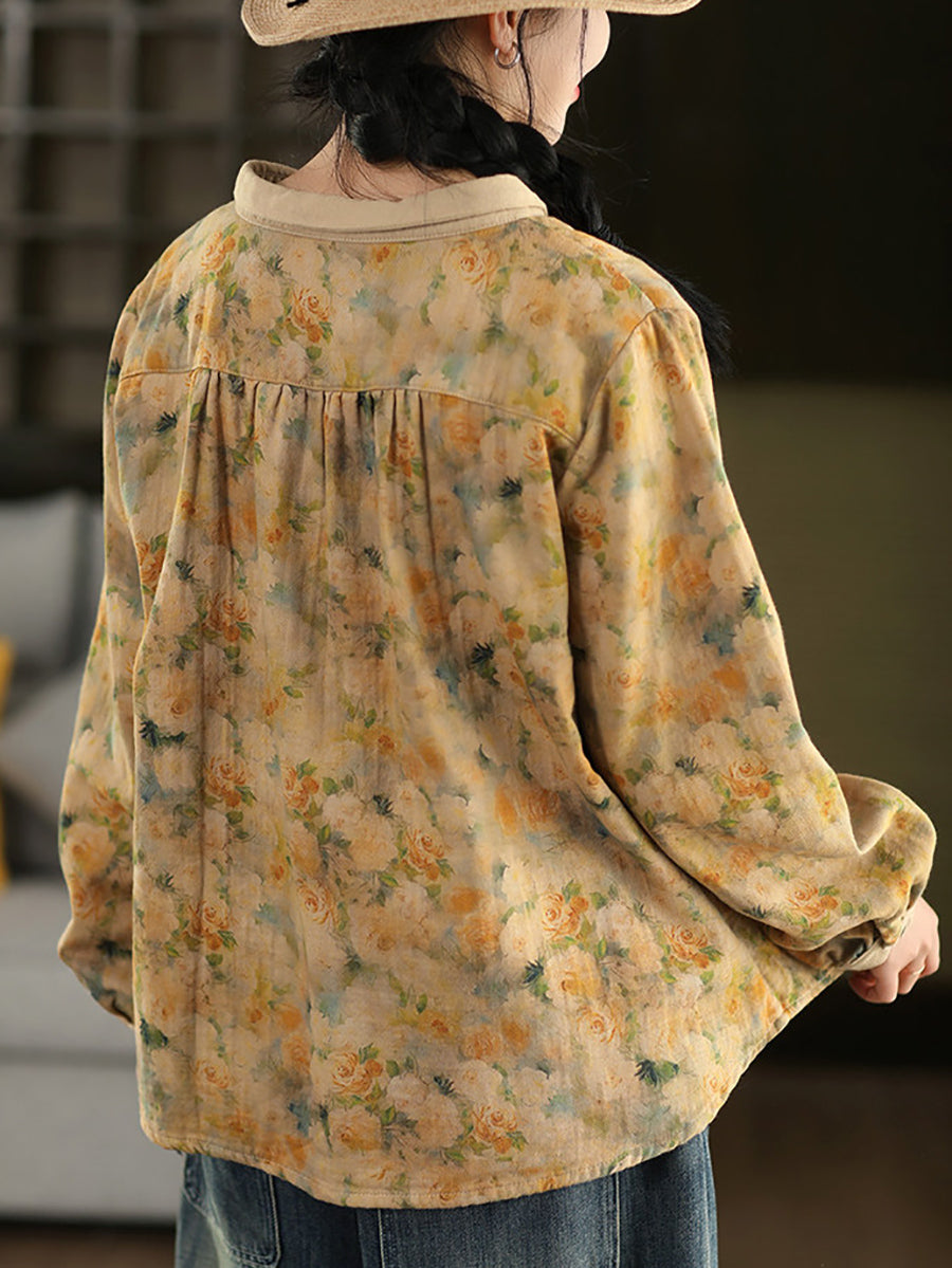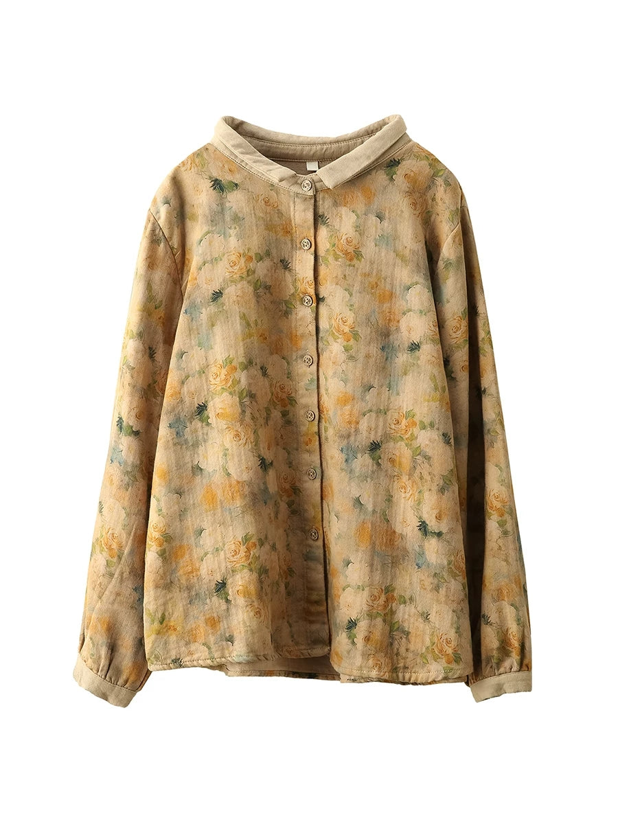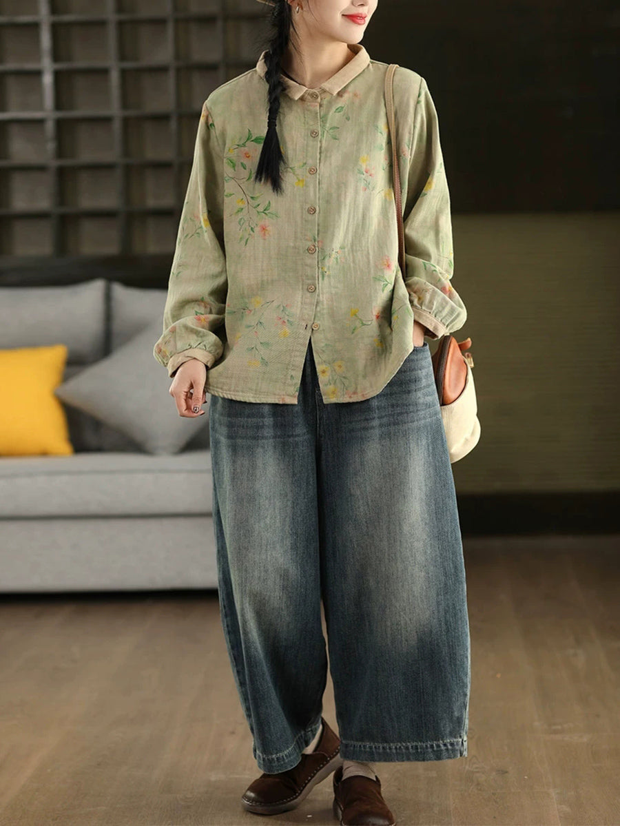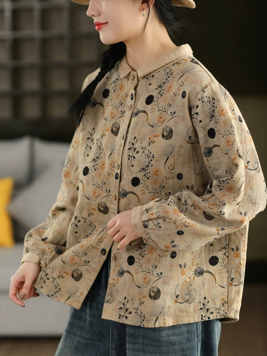 Chemise à col rabattu fleurie printanière pour femme, 100 % coton