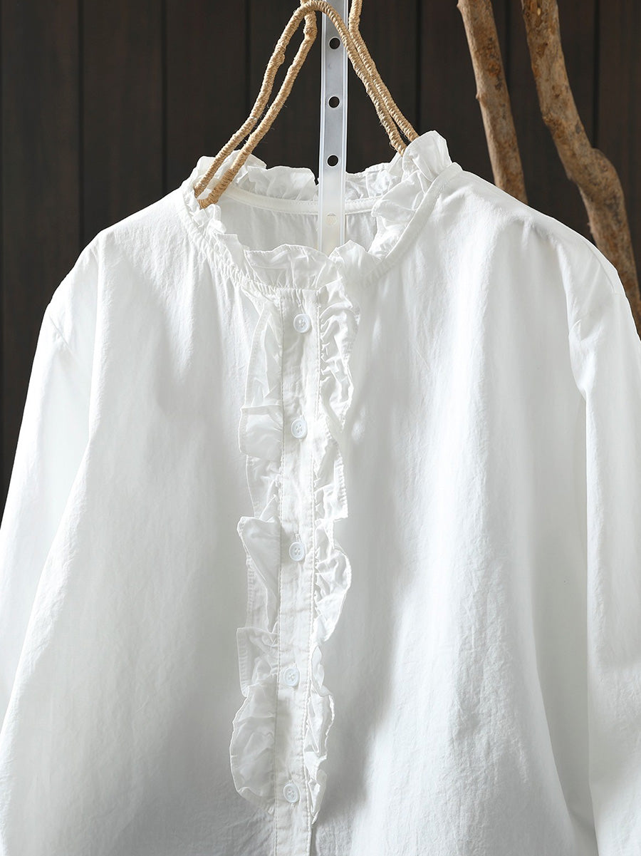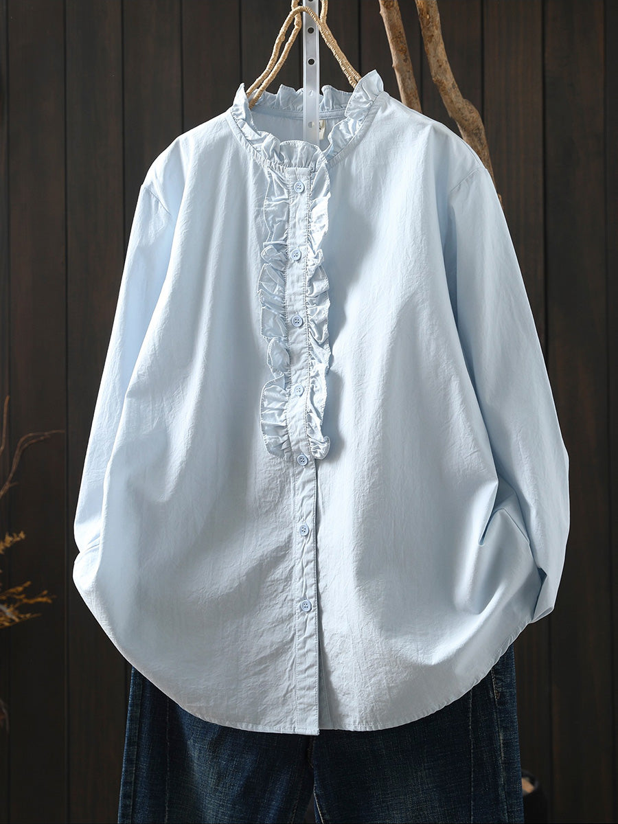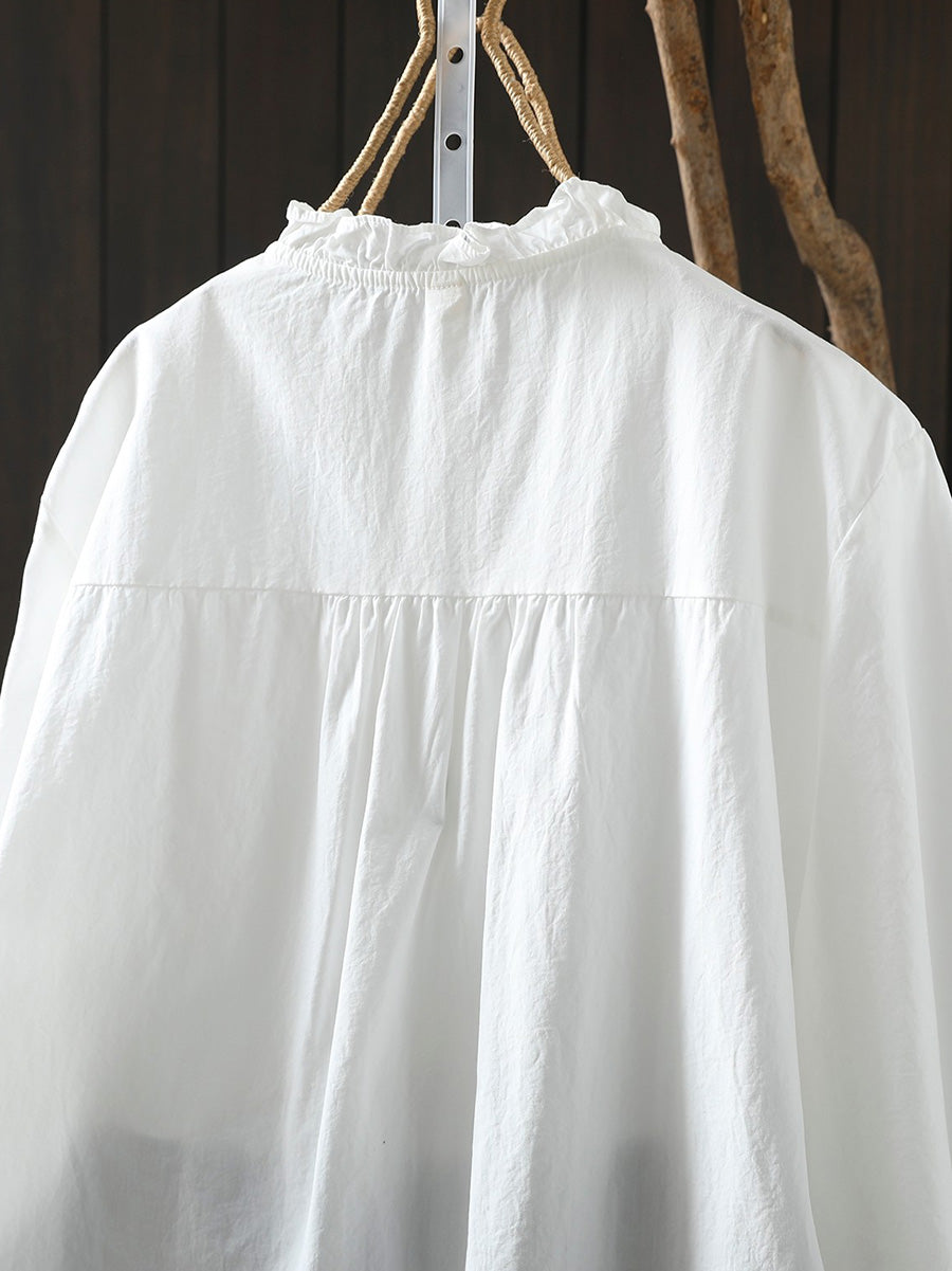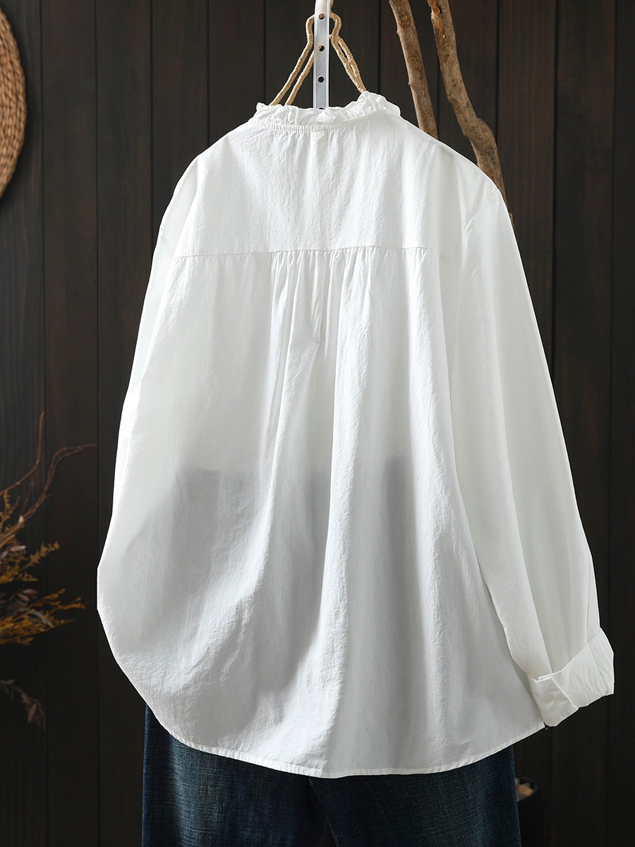 Chemise printanière artistique pour femme à col montant 100% coton
