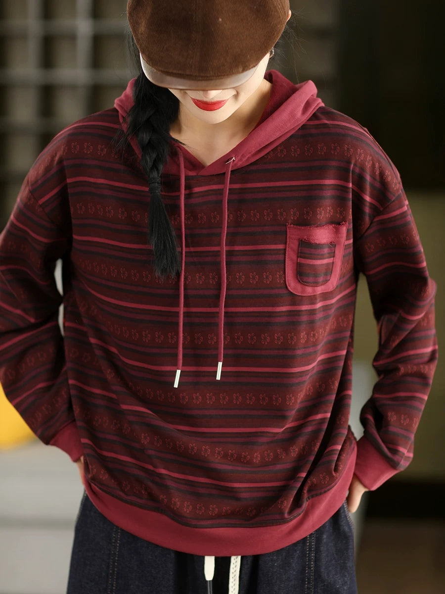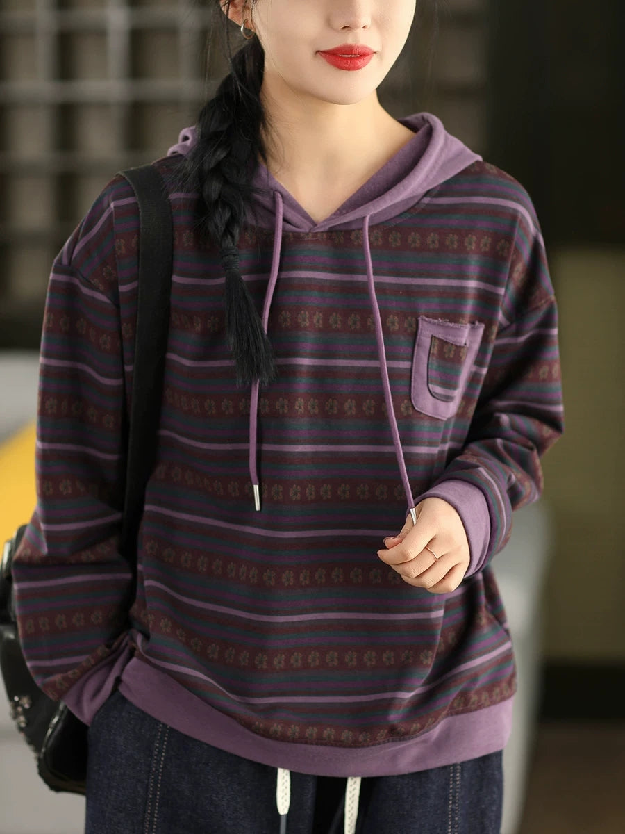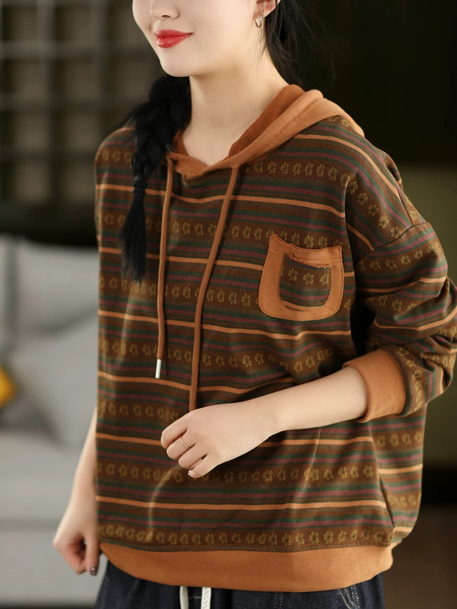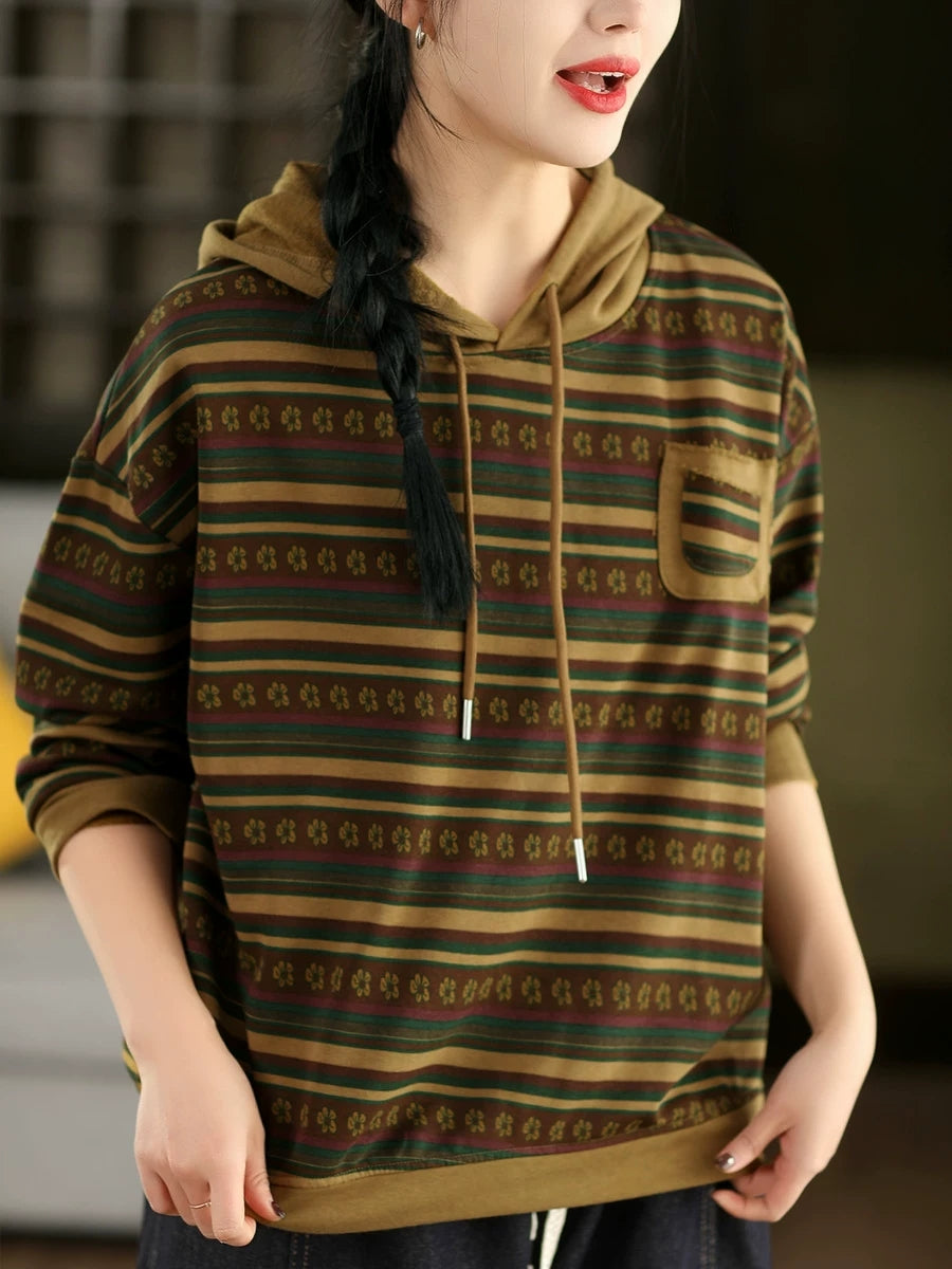 Pull à capuche à rayures printanières artistiques pour femme