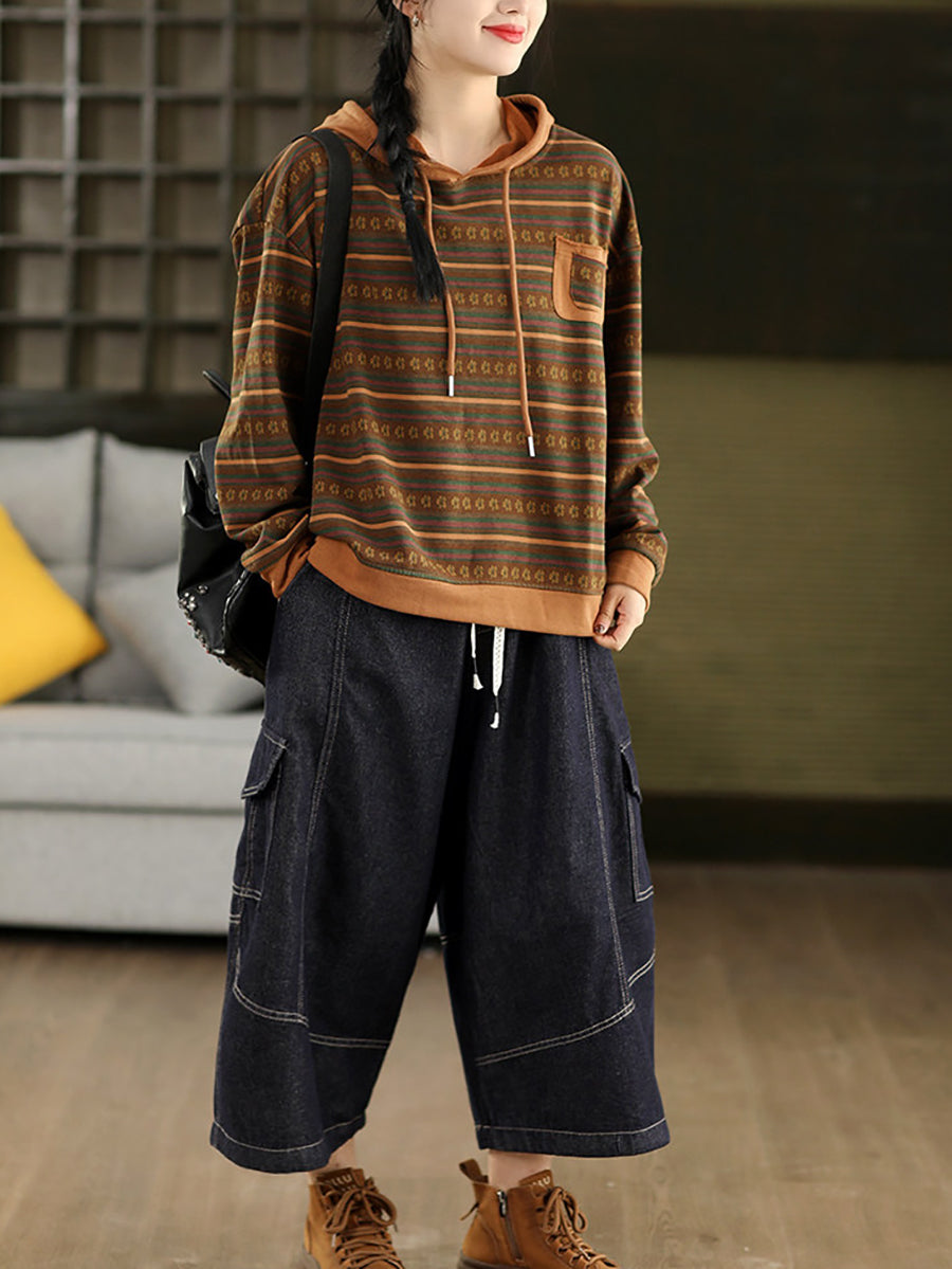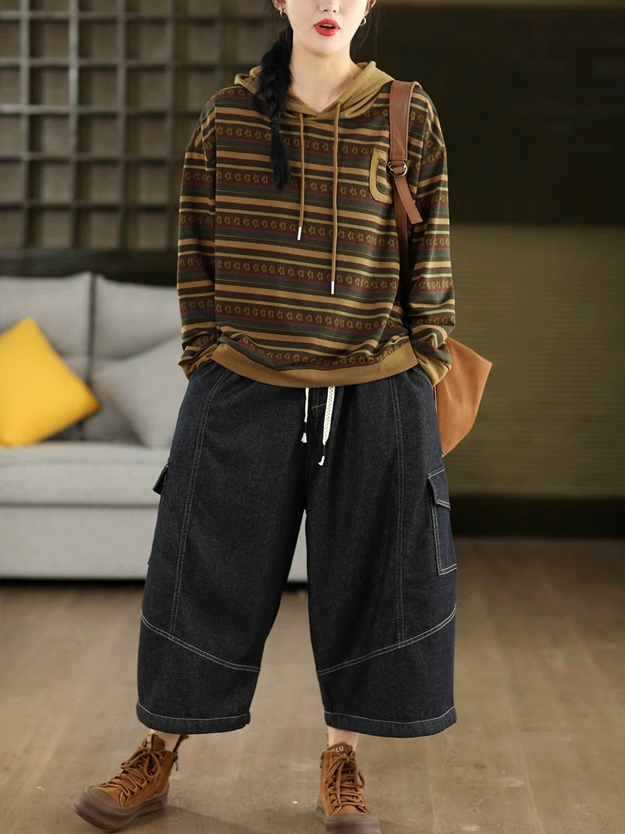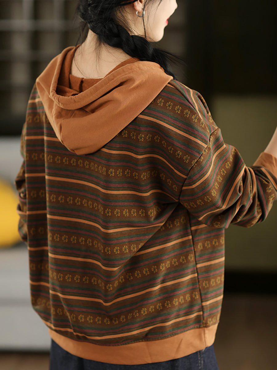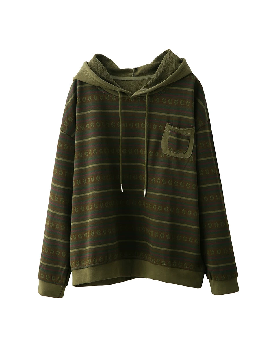 Pull à capuche à rayures printanières artistiques pour femme