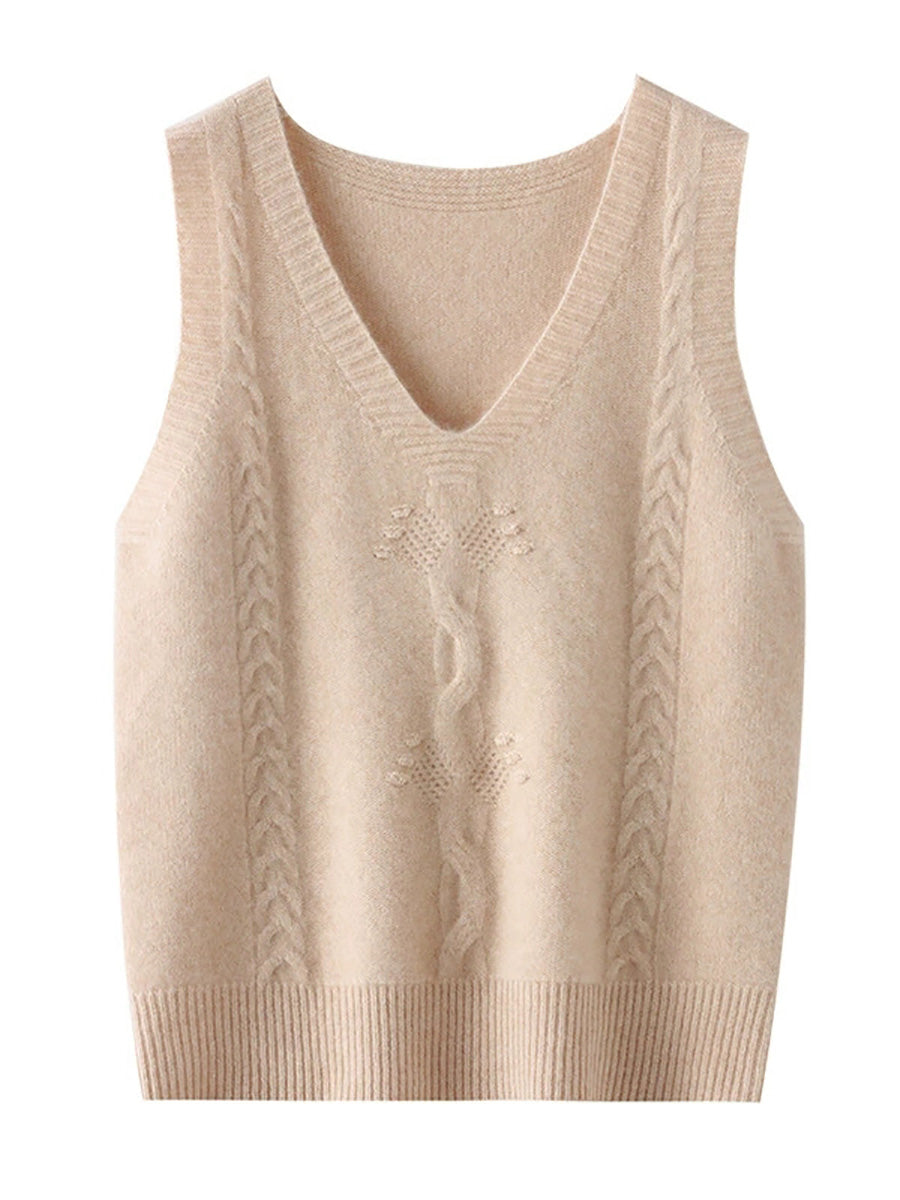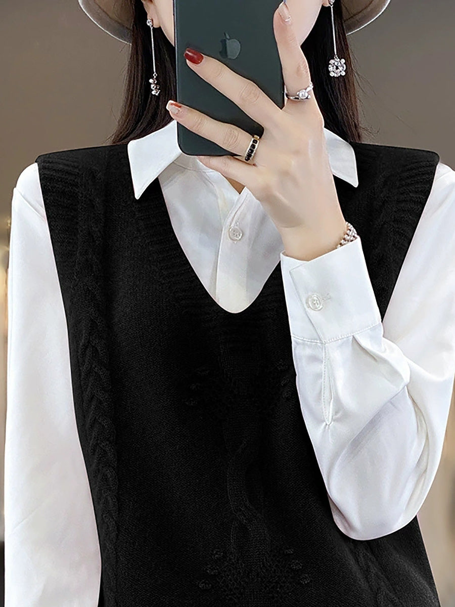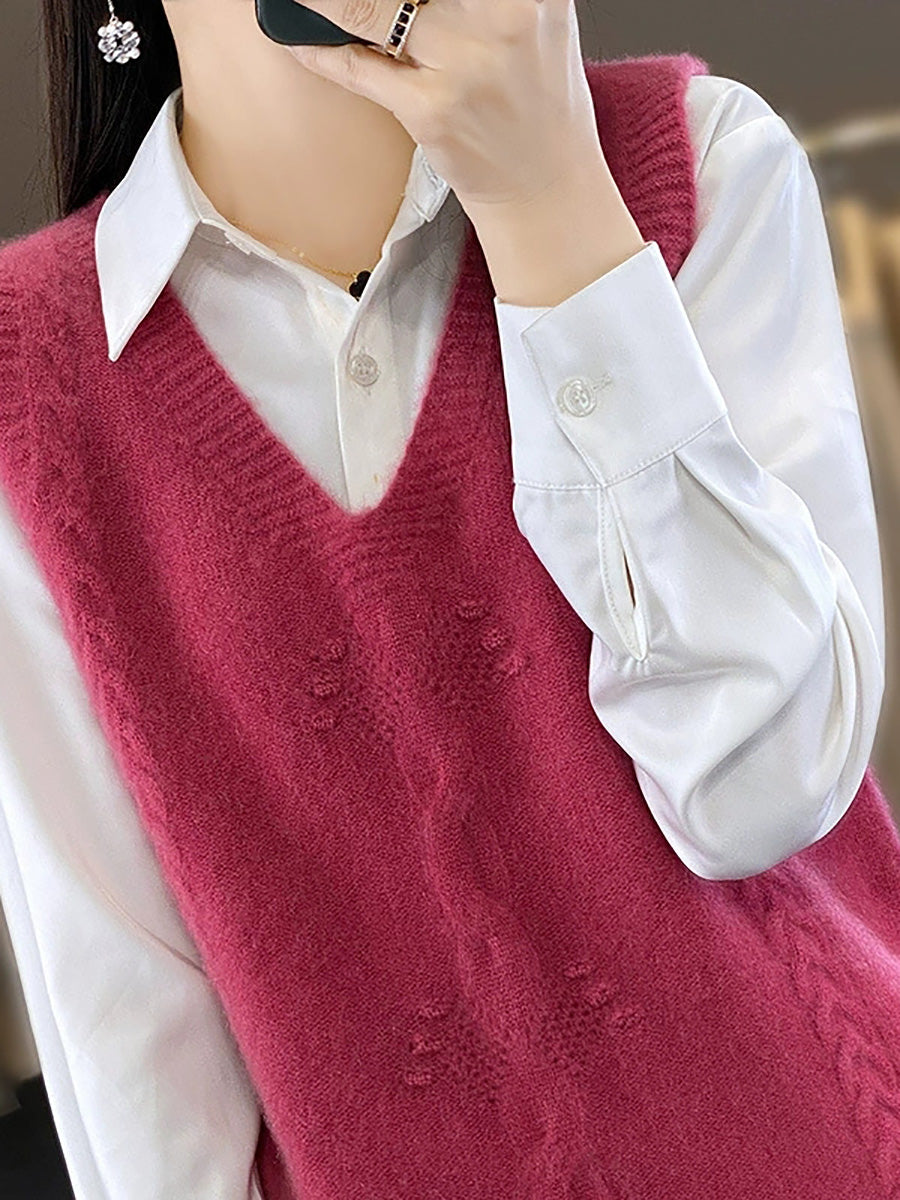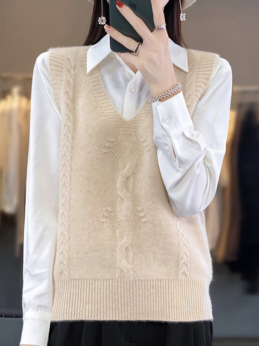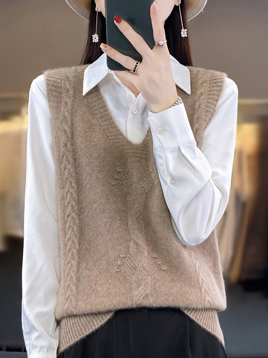 Gilet tricoté à col en V en jacquard artistique pour femme, automne