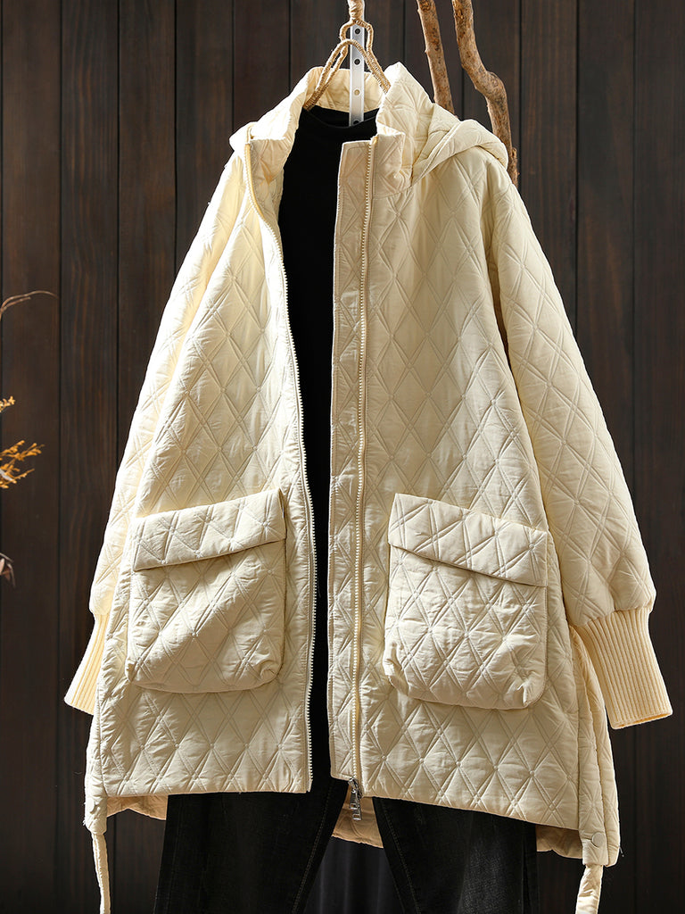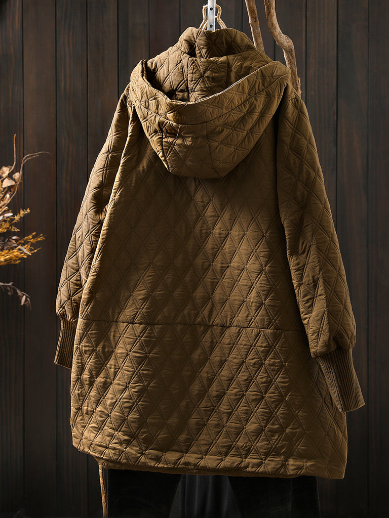 Manteau à capuche décontracté en coton à motif losanges pour femme, automne