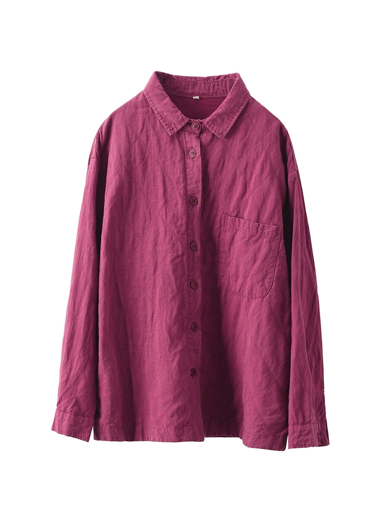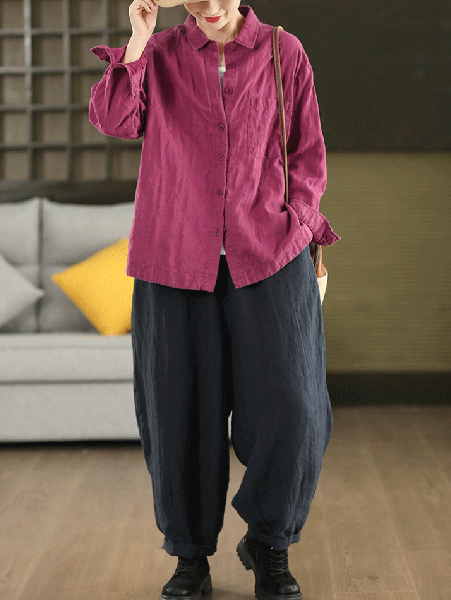 Chemise à col rabattu pour femme, couleur unie, 100 % lin, automne