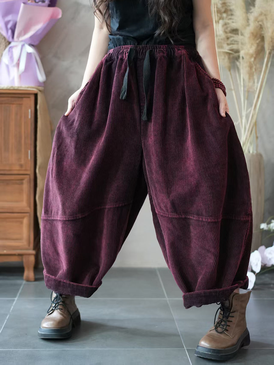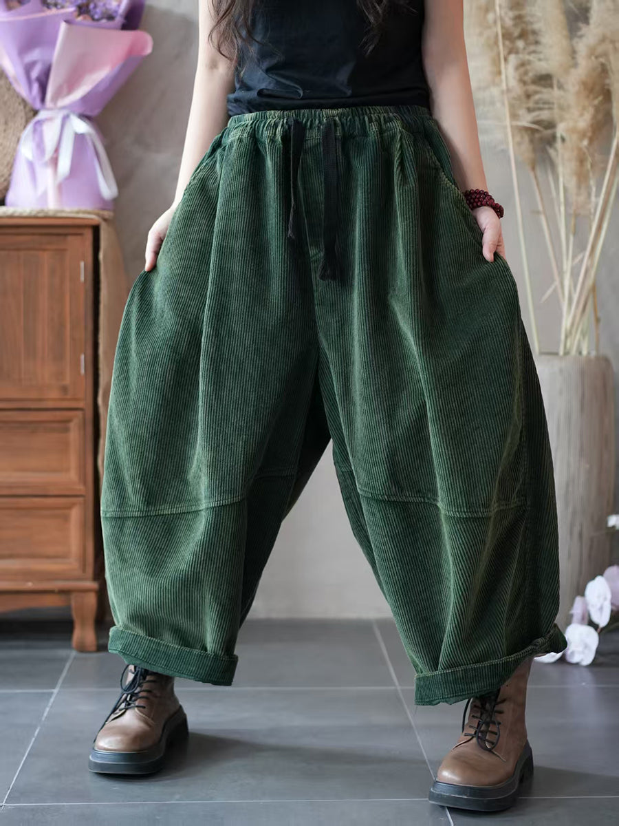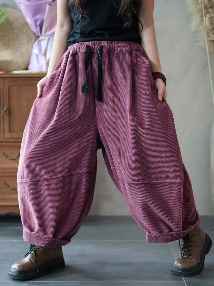 Pantalon sarouel en velours côtelé épissé de couleur pure pour femme