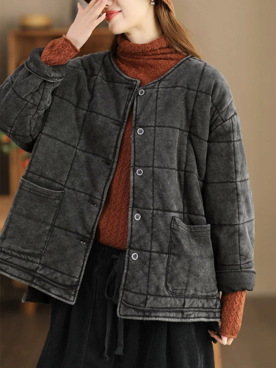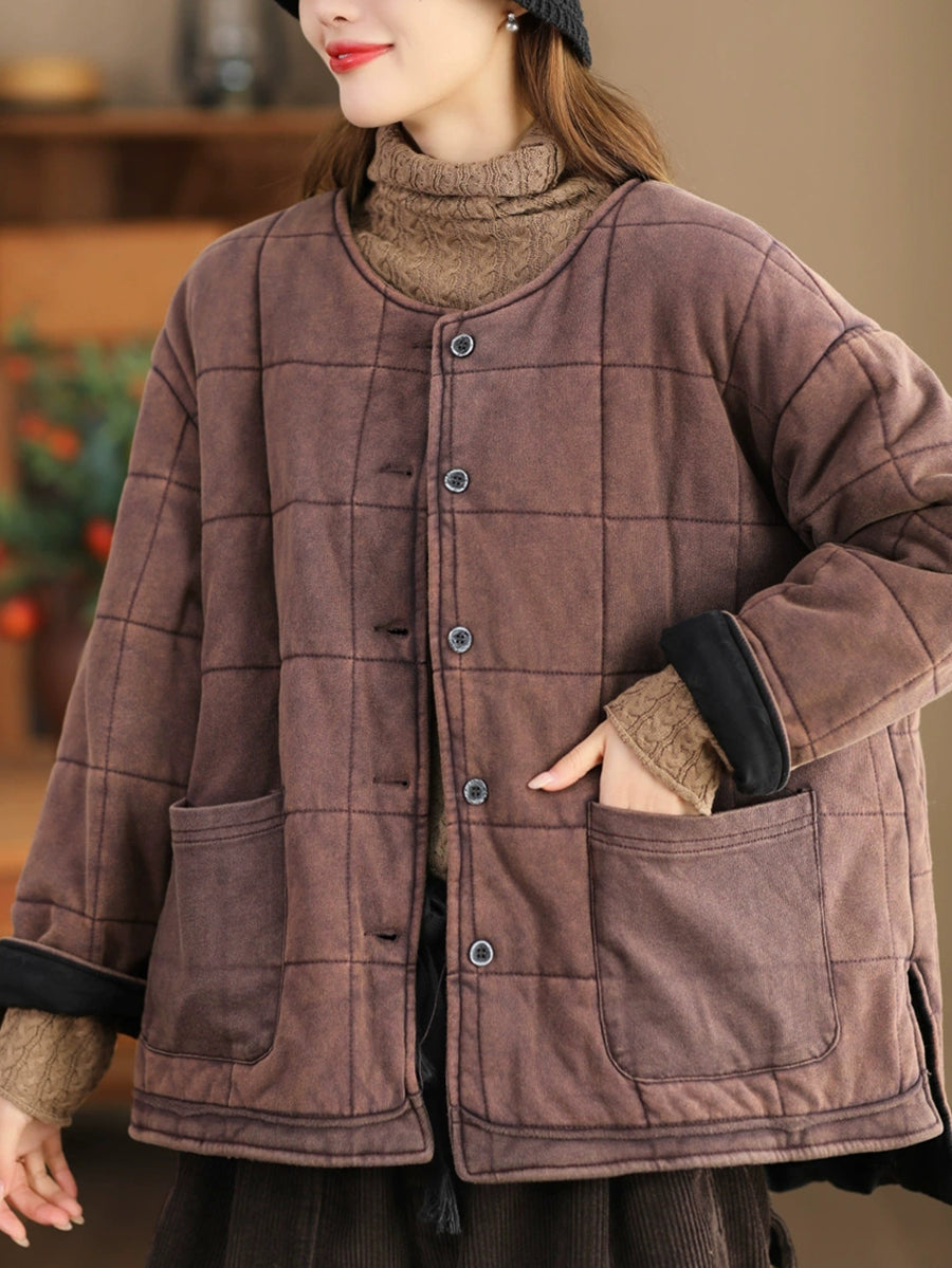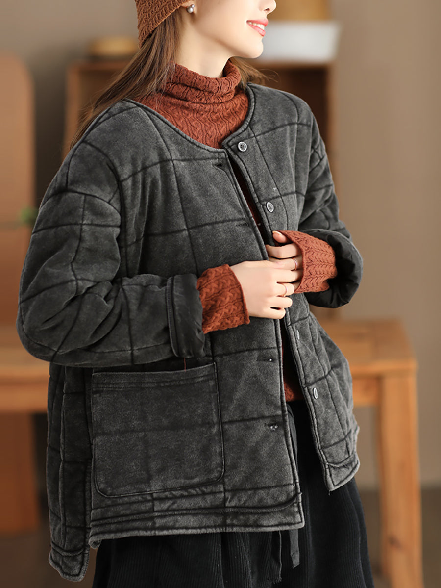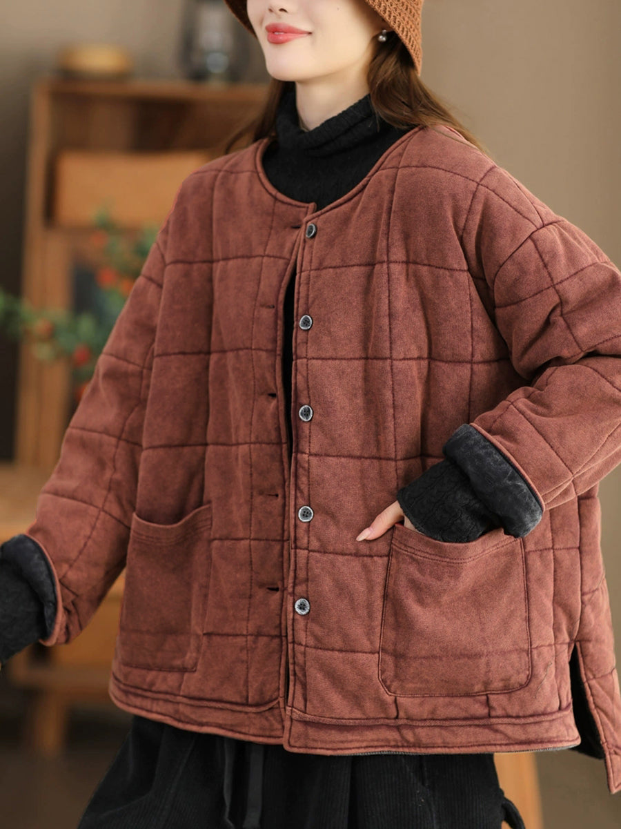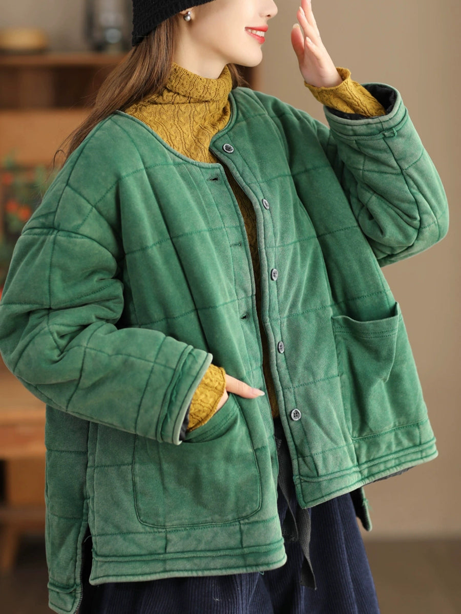 Veste matelassée à col rond pour femme, couleur unie, style rétro, automne