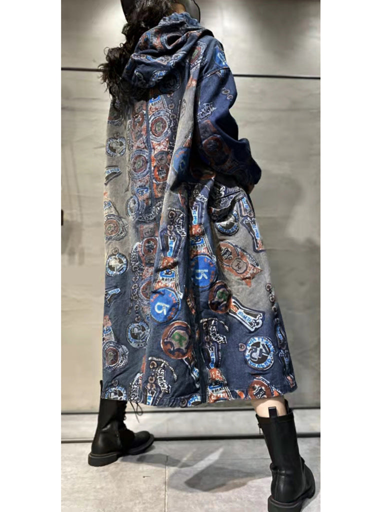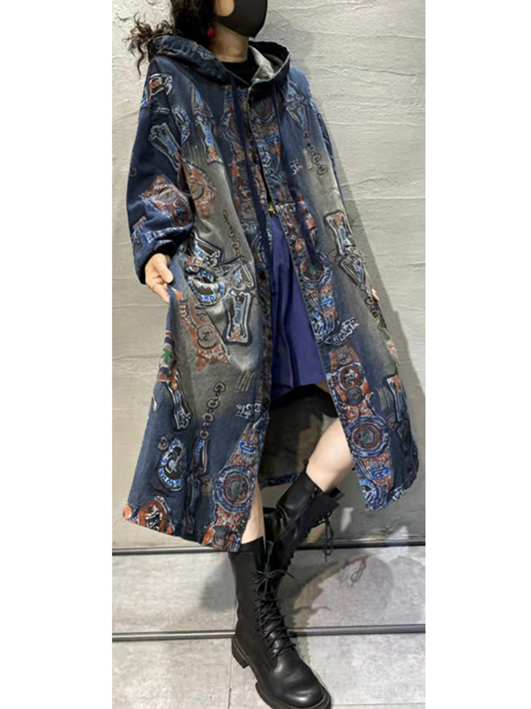Ce produit est en coton et présente un motif fleuri, un col à capuche et des manches raglan sur toute la longueur. Il s'agit d'un style vintage qui convient aux saisons d'automne et d'hiver.