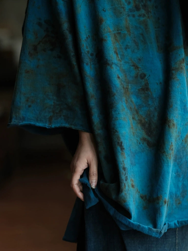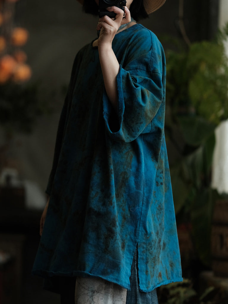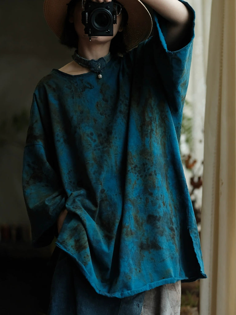 Chemise vintage en coton tie-dye à col rond pour femme, collection automne