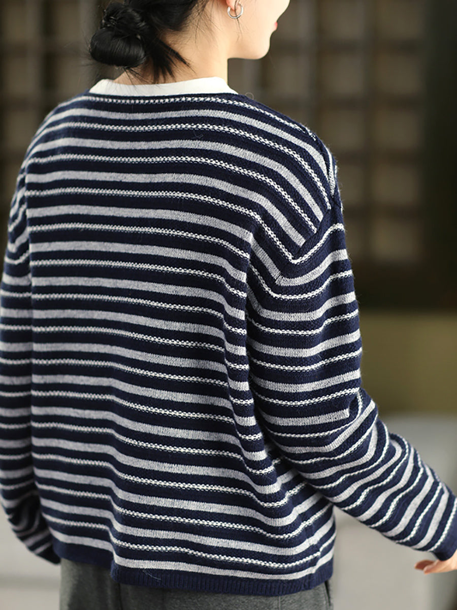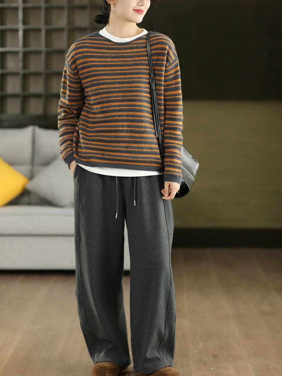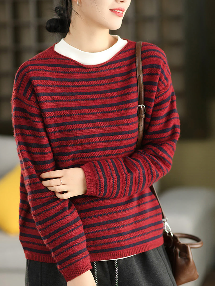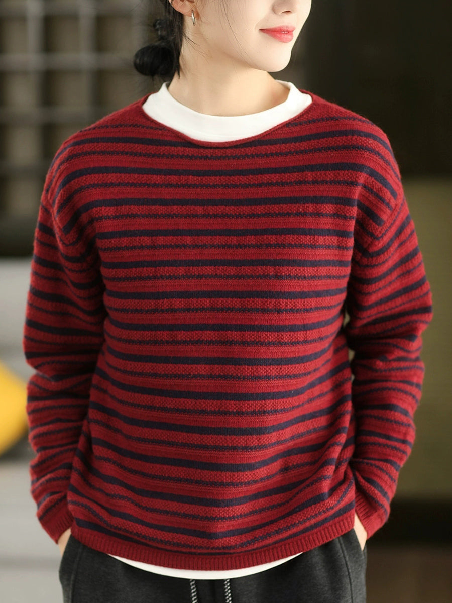 Pull en maille à rayures vintage automne pour femme