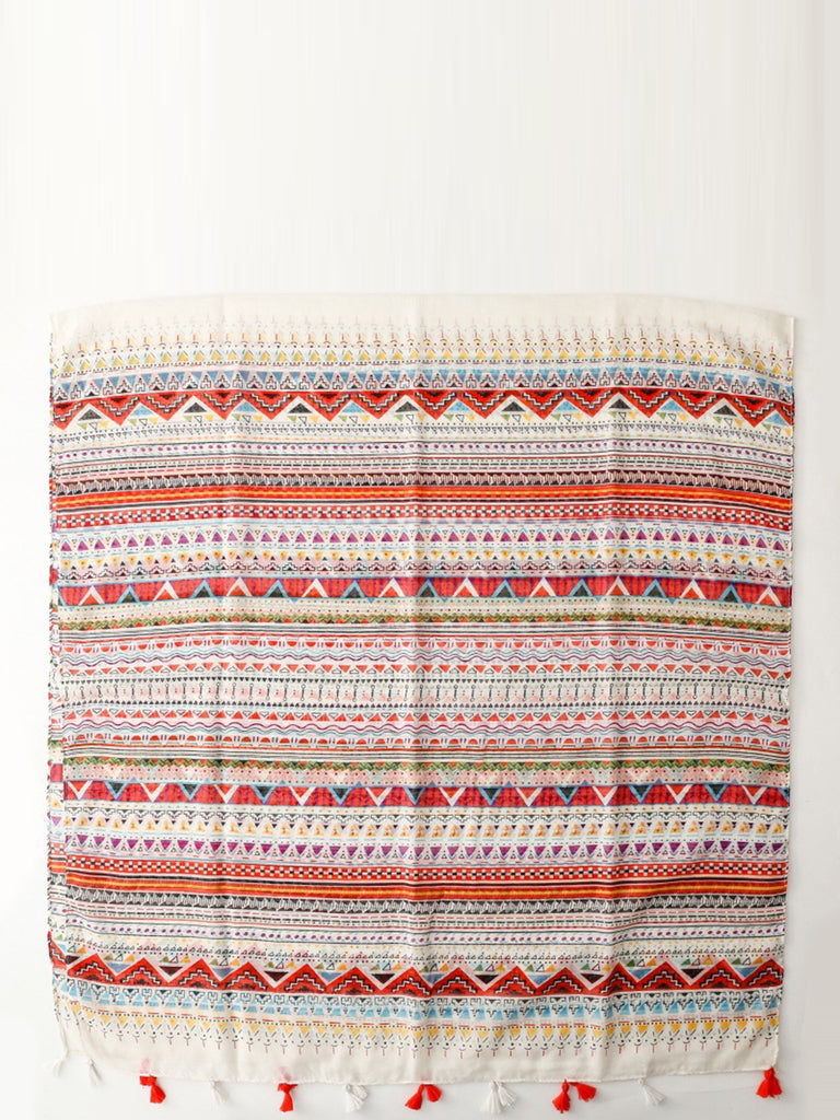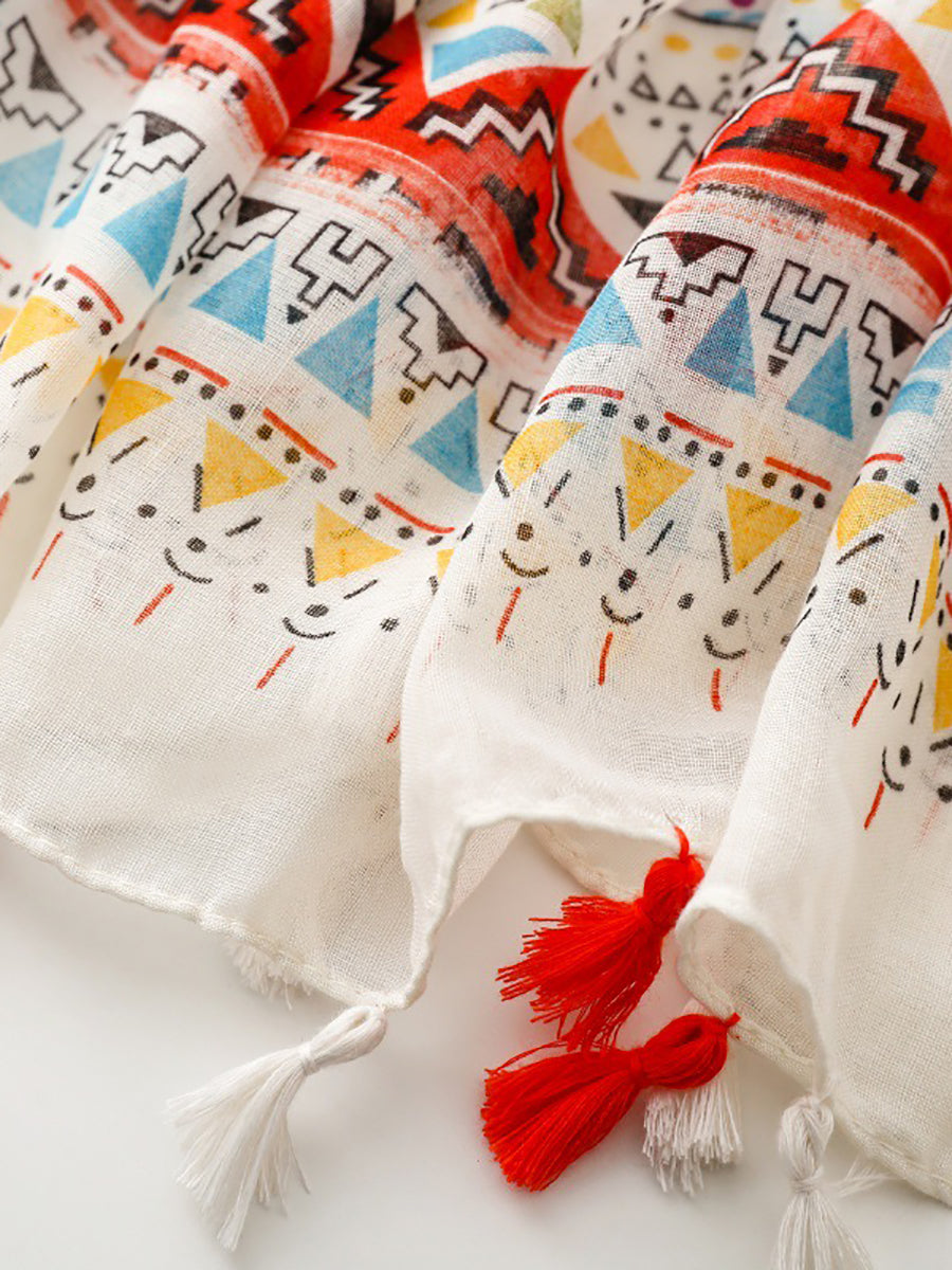 Écharpe châle à pompons à imprimé géométrique bohème pour femme