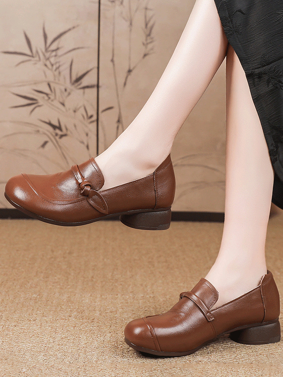 Chaussures décontractées pour femmes en cuir véritable à petits talons