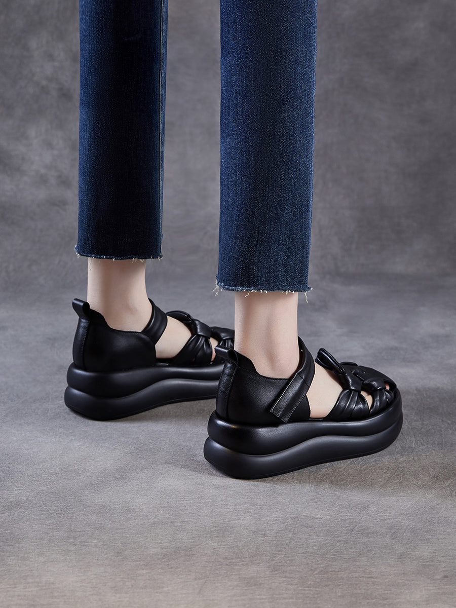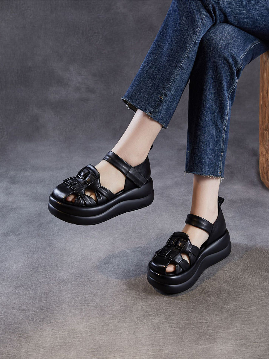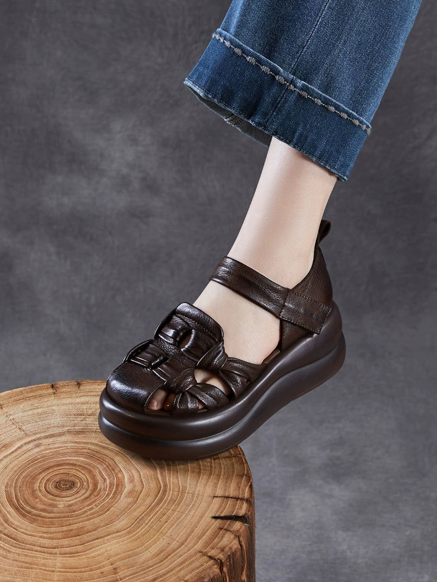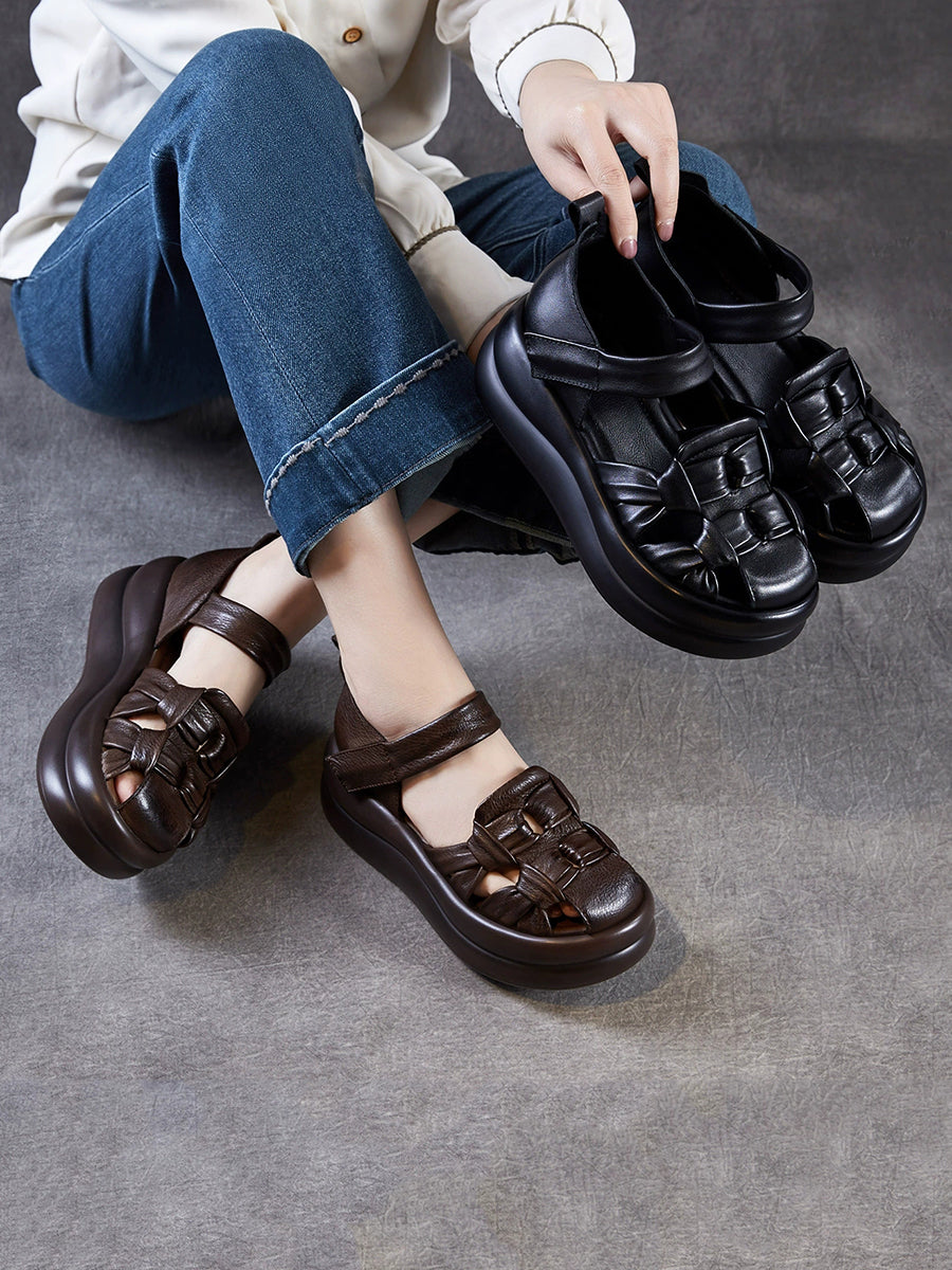 Sandales à plateforme décontractées pour femmes en cuir véritable