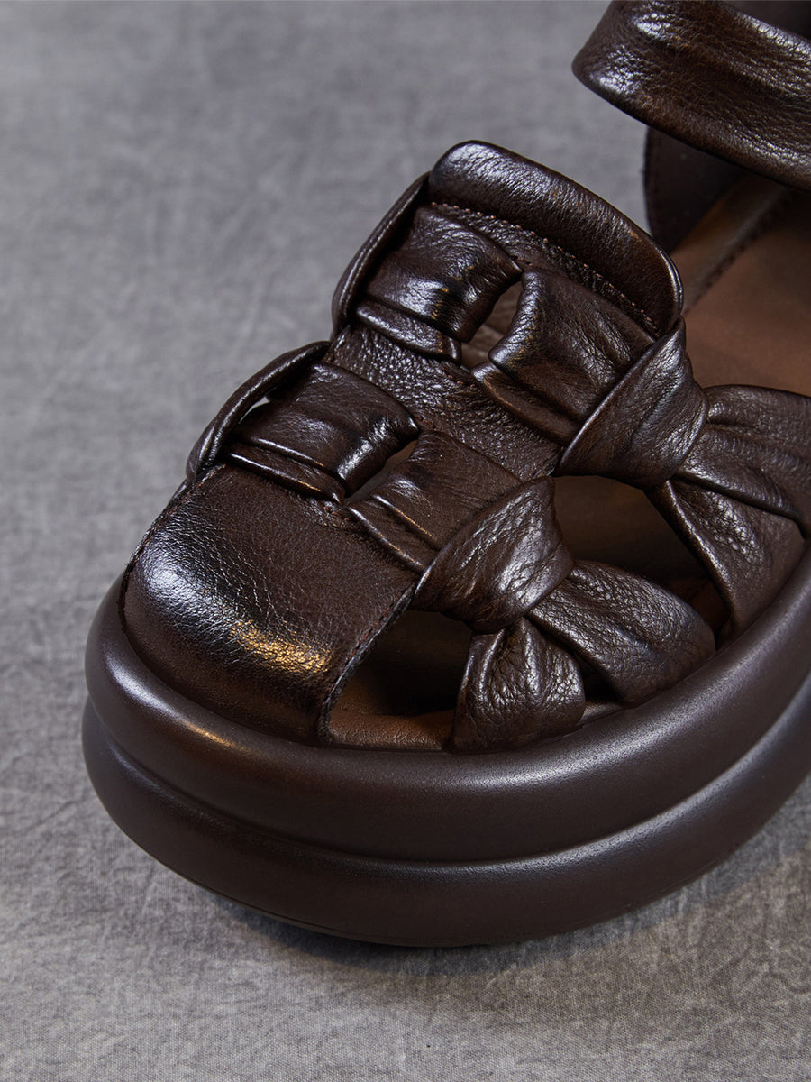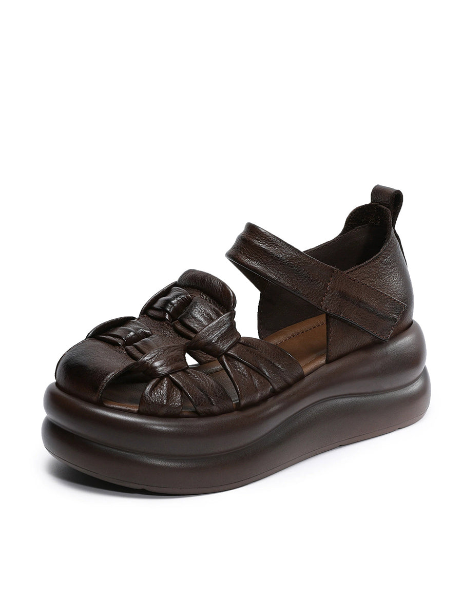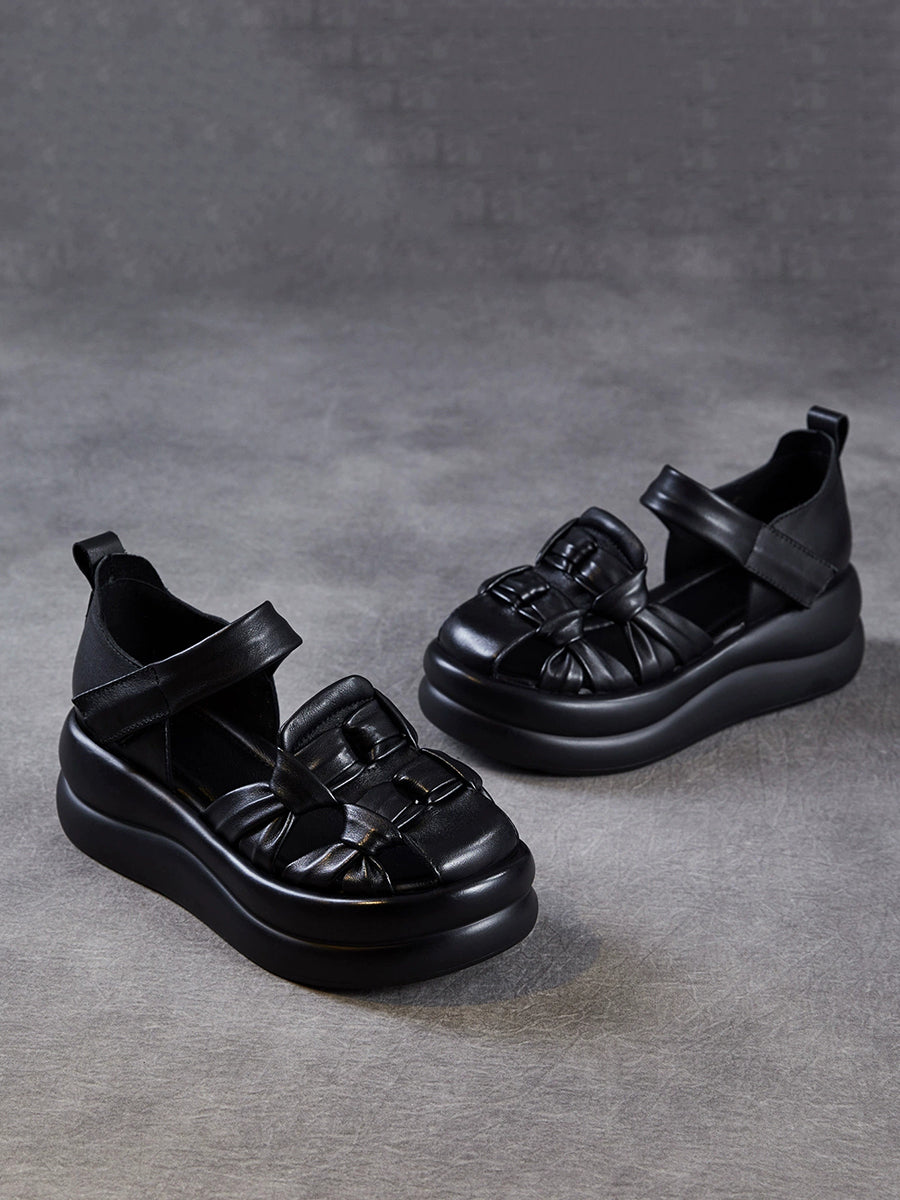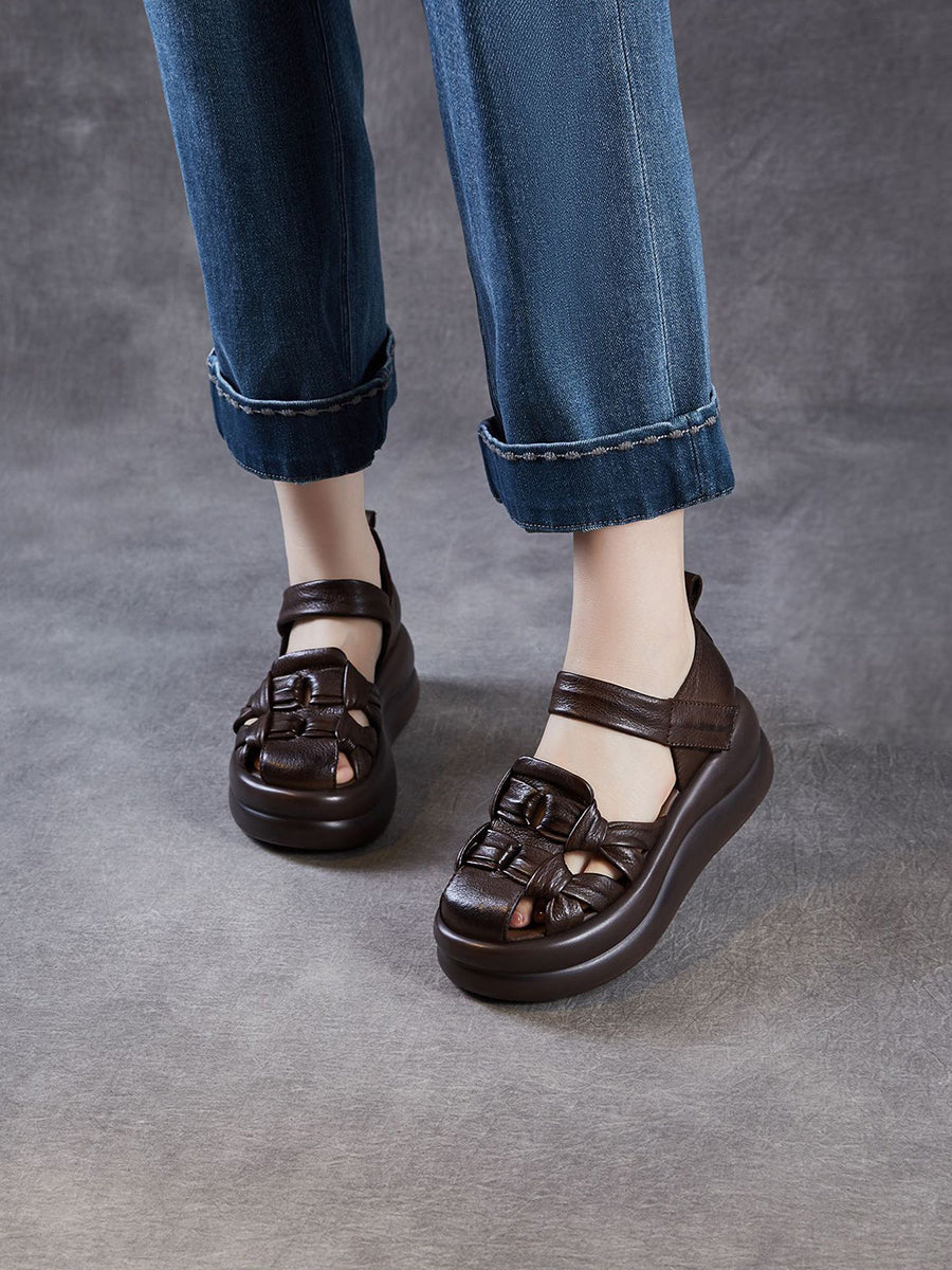Sandales à plateforme décontractées pour femmes en cuir véritable