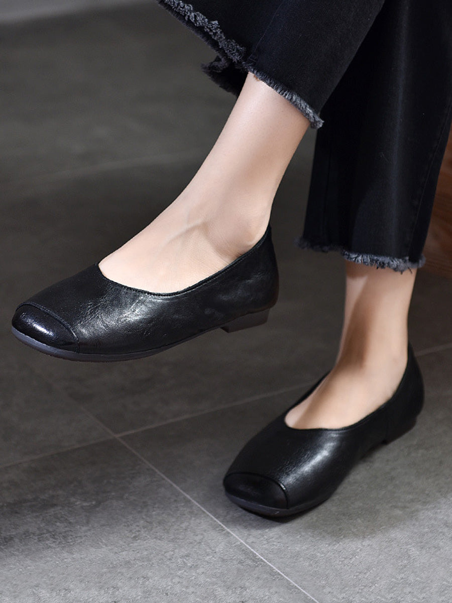 Chaussures décontractées en cuir véritable à bout carré souple pour femmes