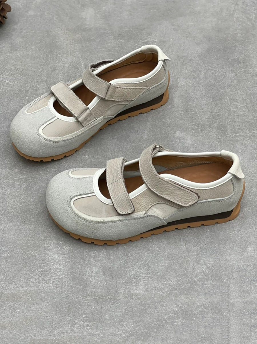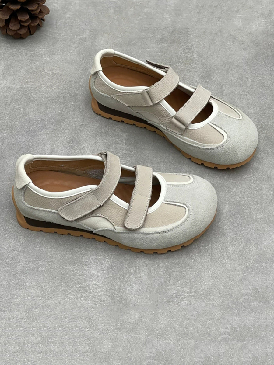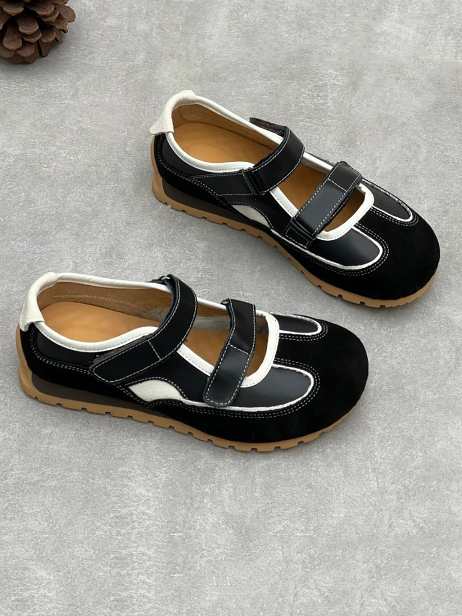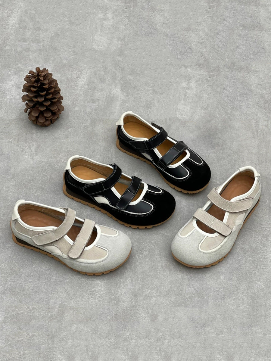 Chaussures décontractées pour femmes en cuir véritable à petits talons, style talon bas.