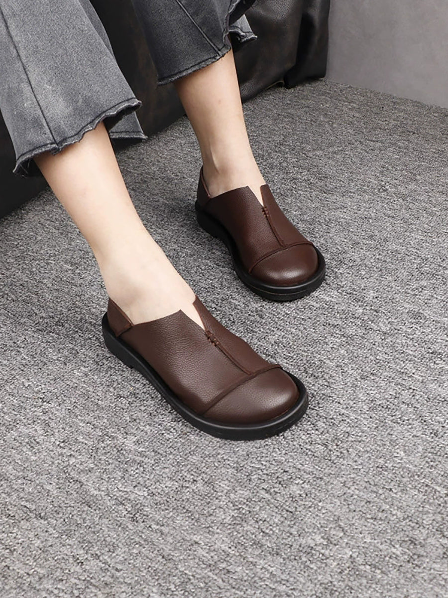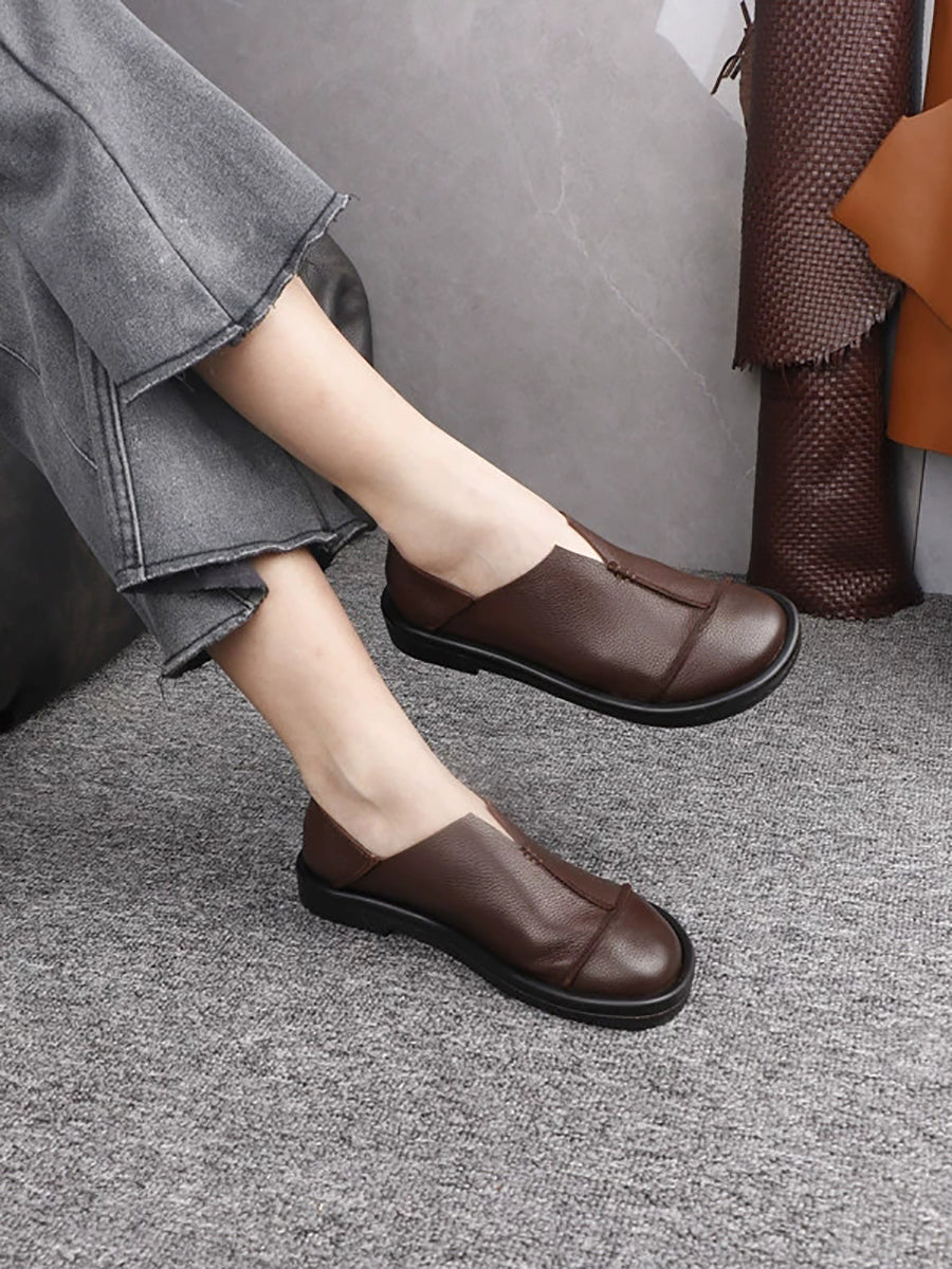 Chaussures décontractées pour femmes en cuir véritable à petits talons, style talon bas.