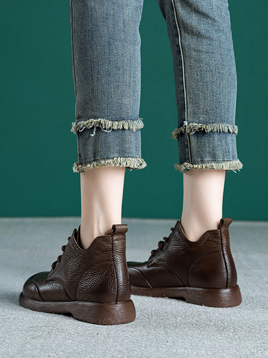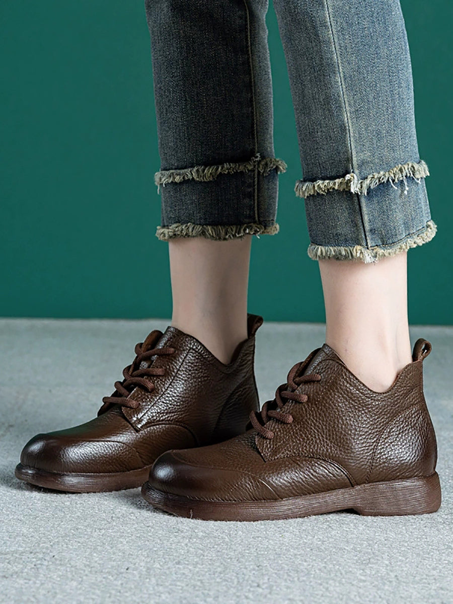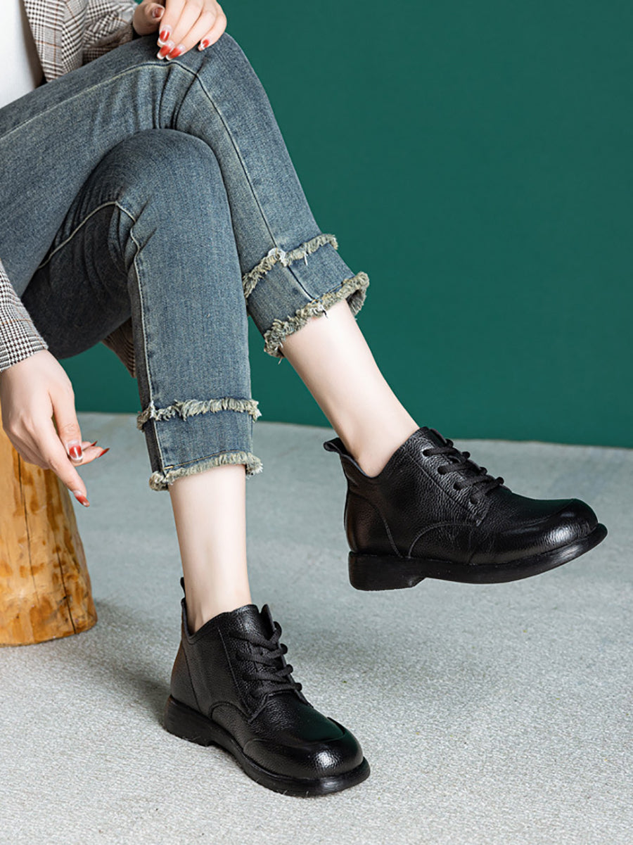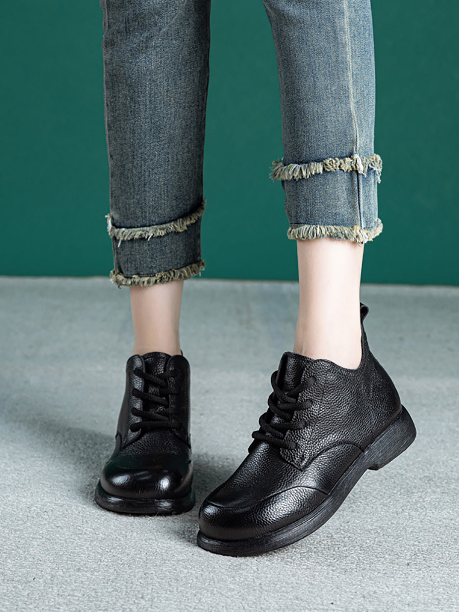 Bottines décontractées pour femmes en cuir véritable uni couleur