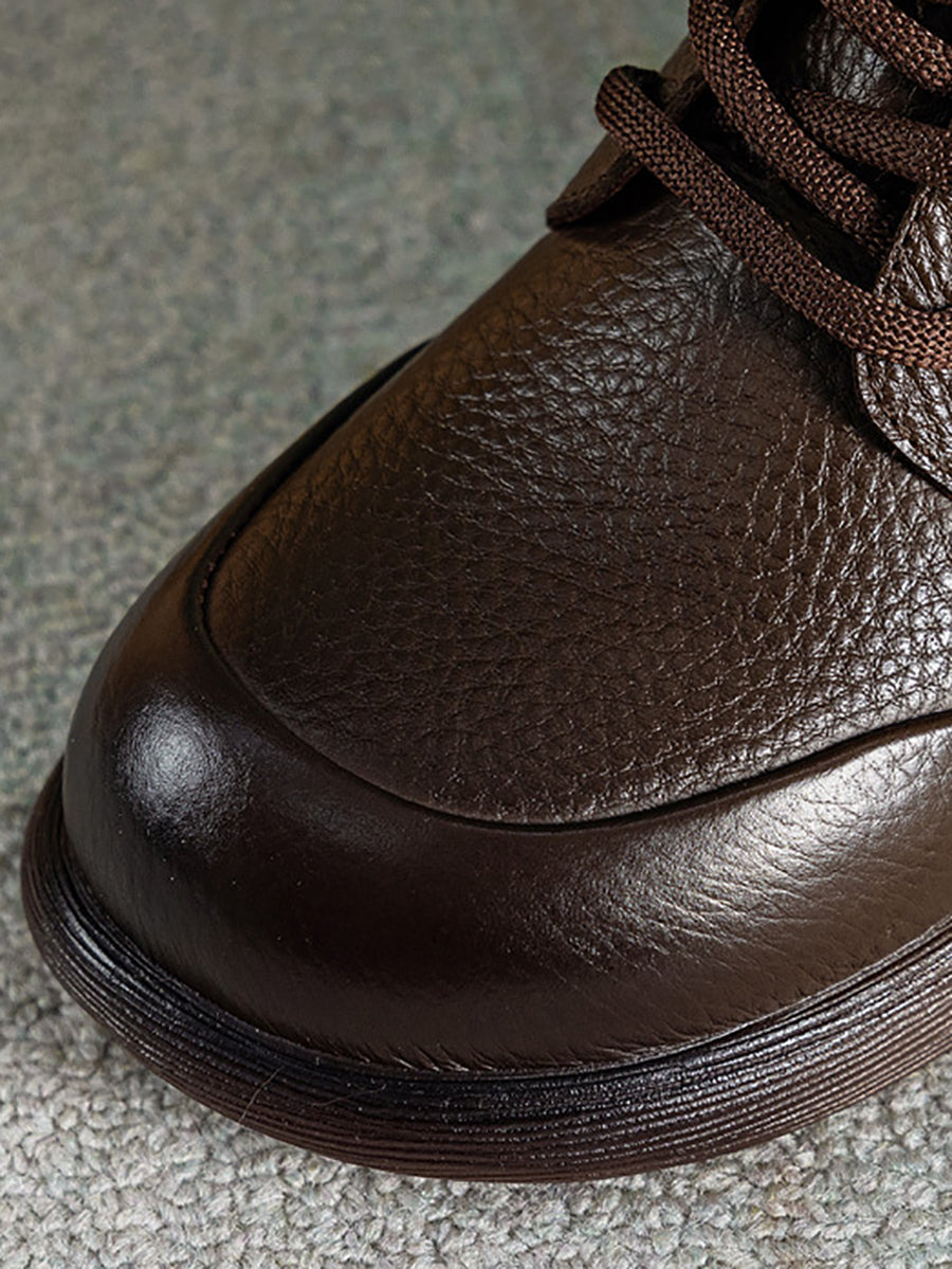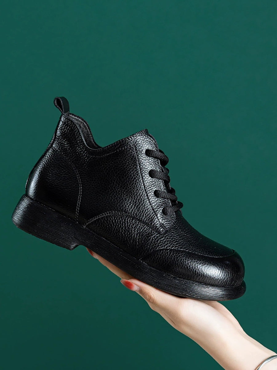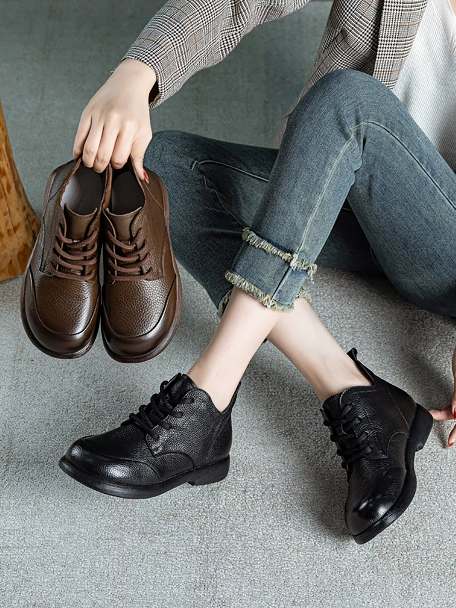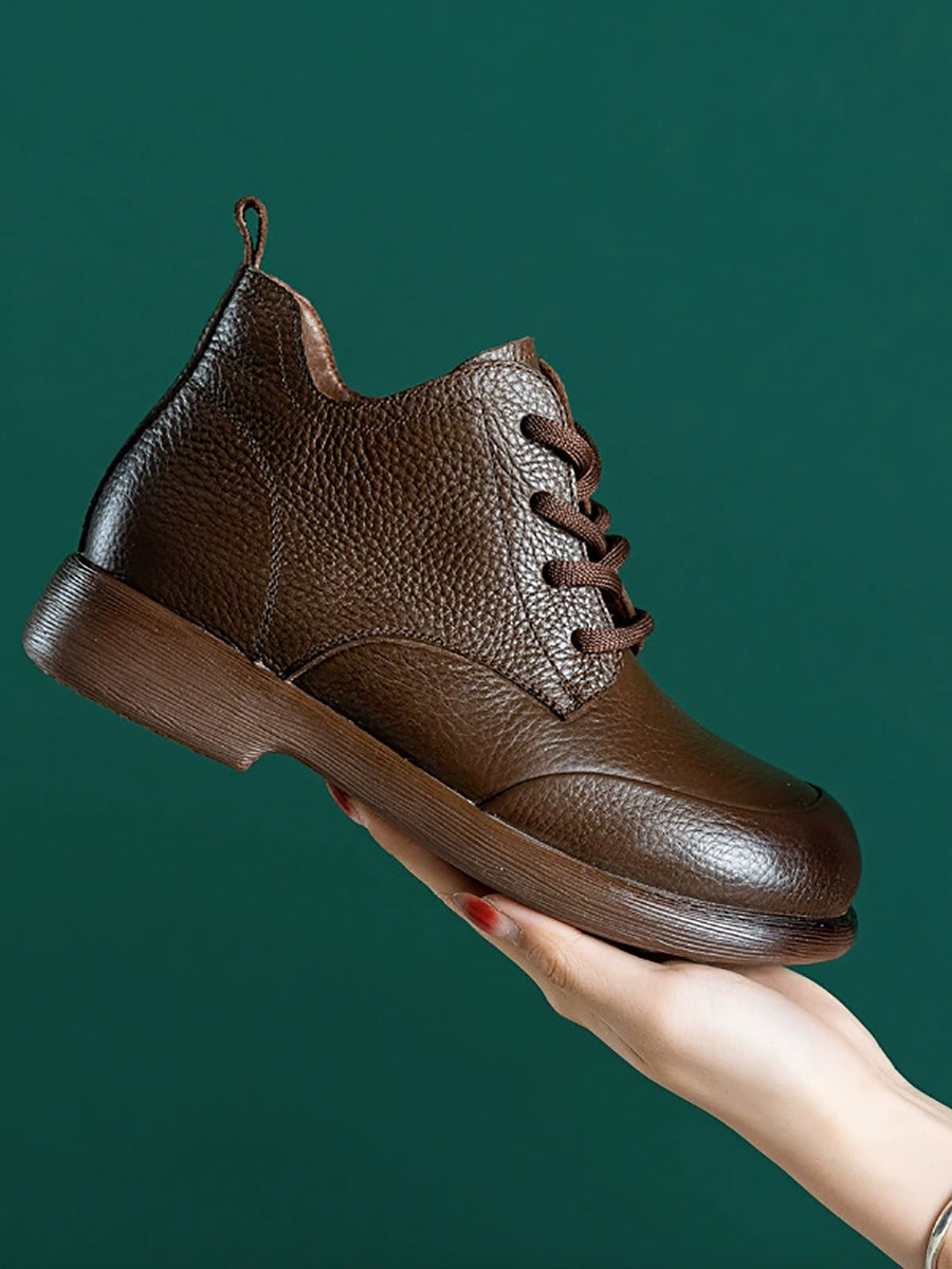 Bottines décontractées pour femmes en cuir véritable uni couleur