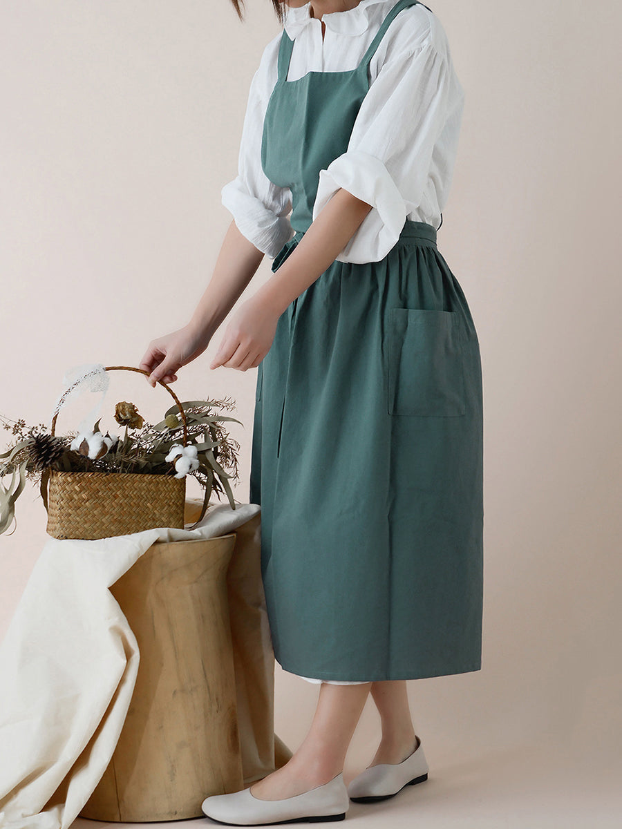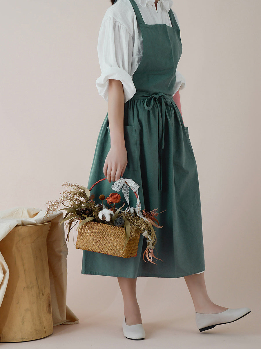 Robe tablier décontractée en coton uni pour femme