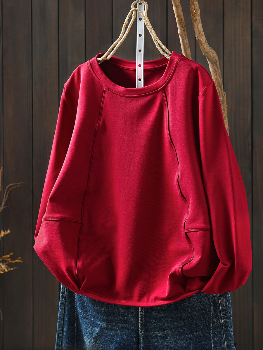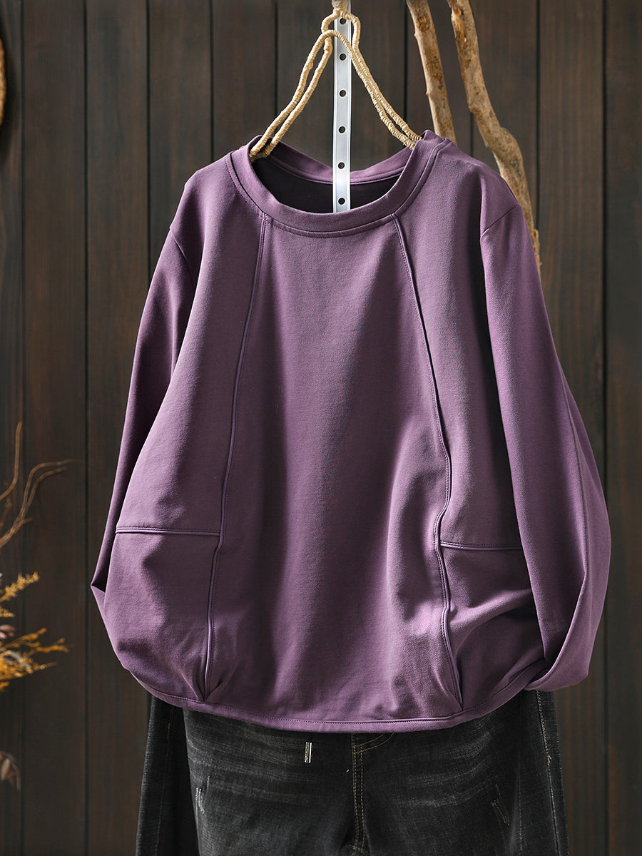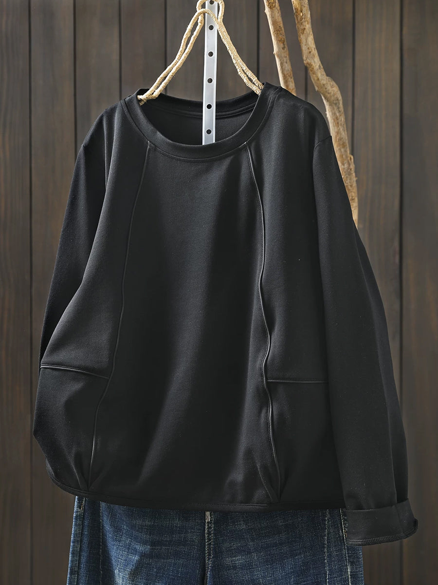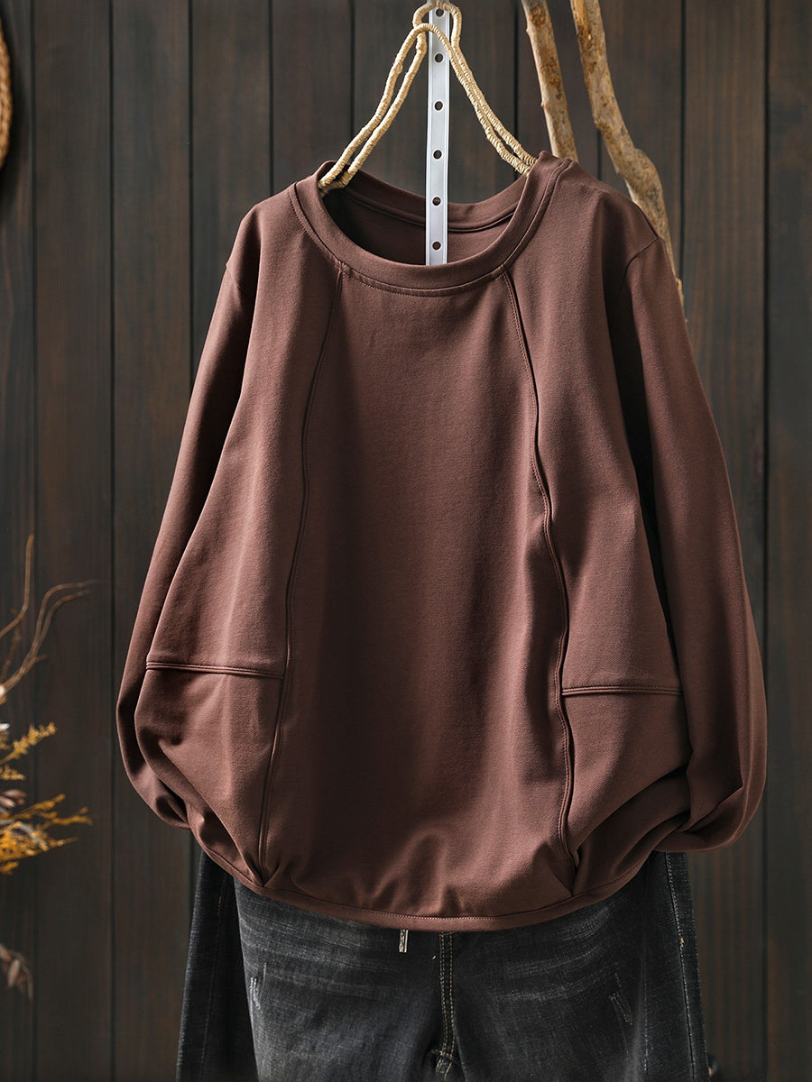 Blouse décontractée printanière pour femme, couleur unie, col rond, style bohème chic