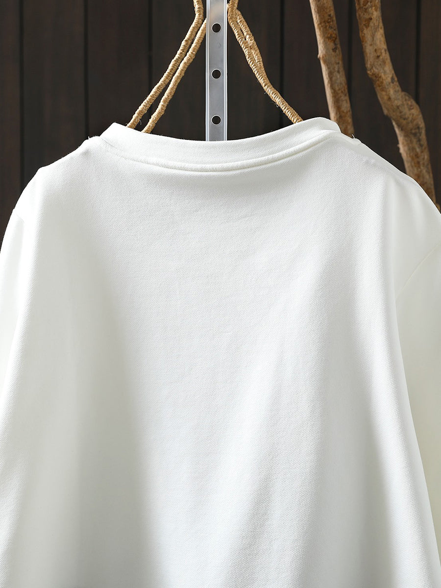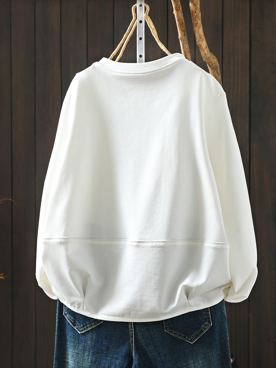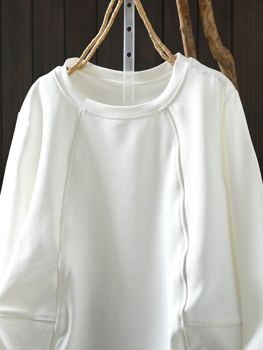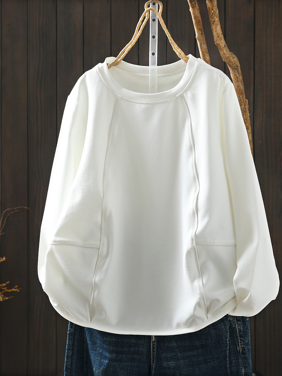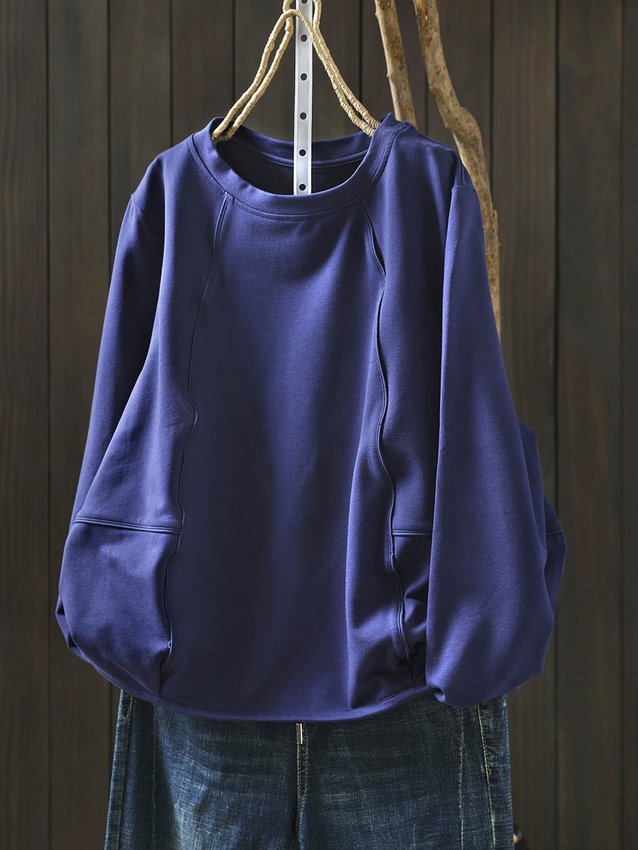 Blouse décontractée printanière pour femme, couleur unie, col rond, style bohème chic